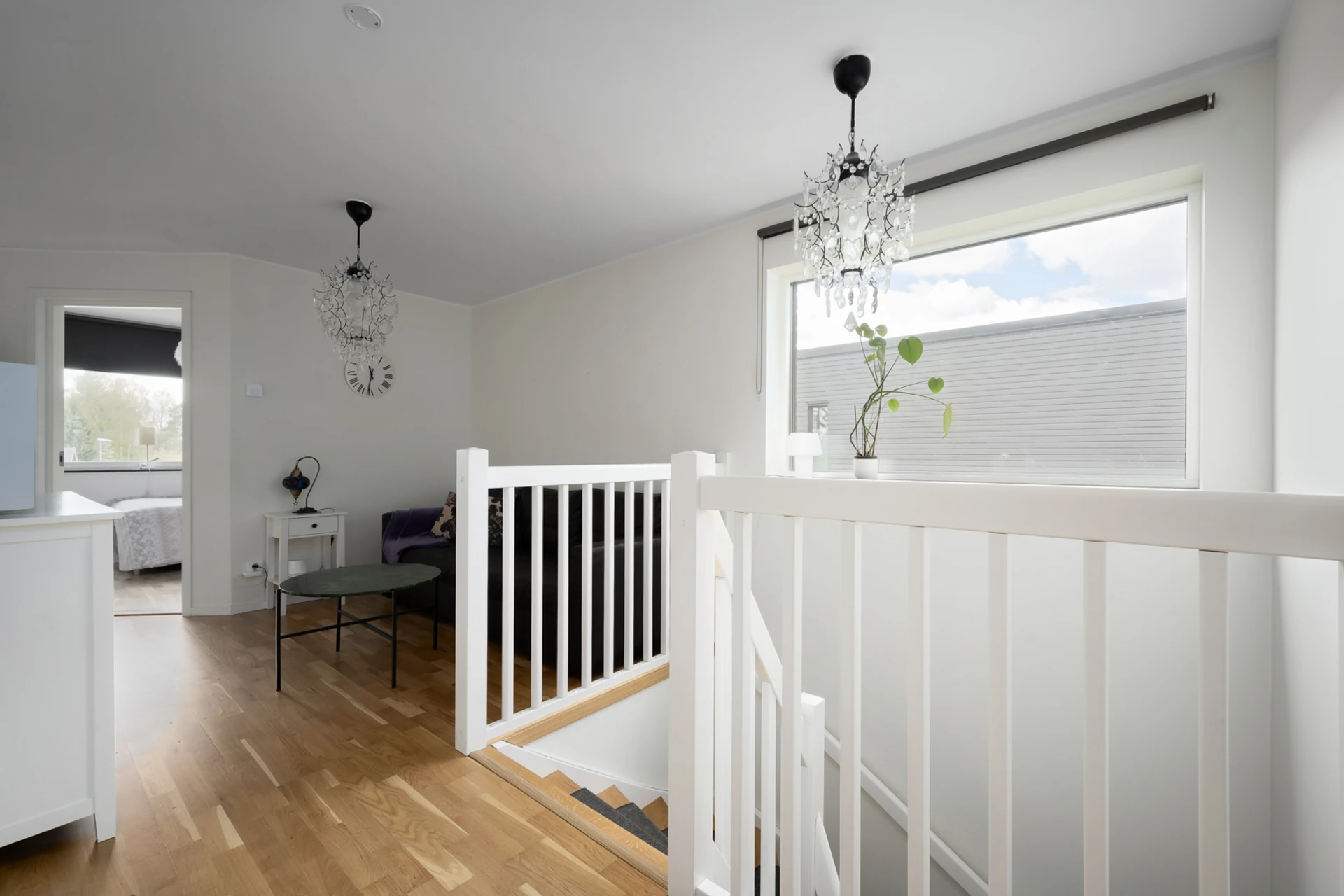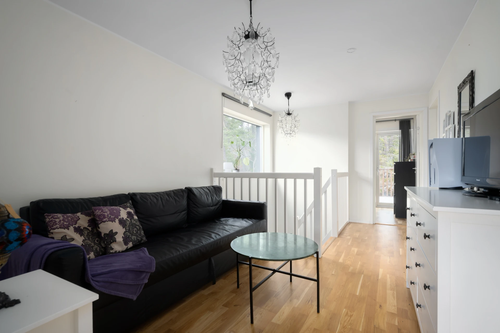 Här uppe finns ett fint mittplacerat allrum, perfekt samlingsplats för barnen.