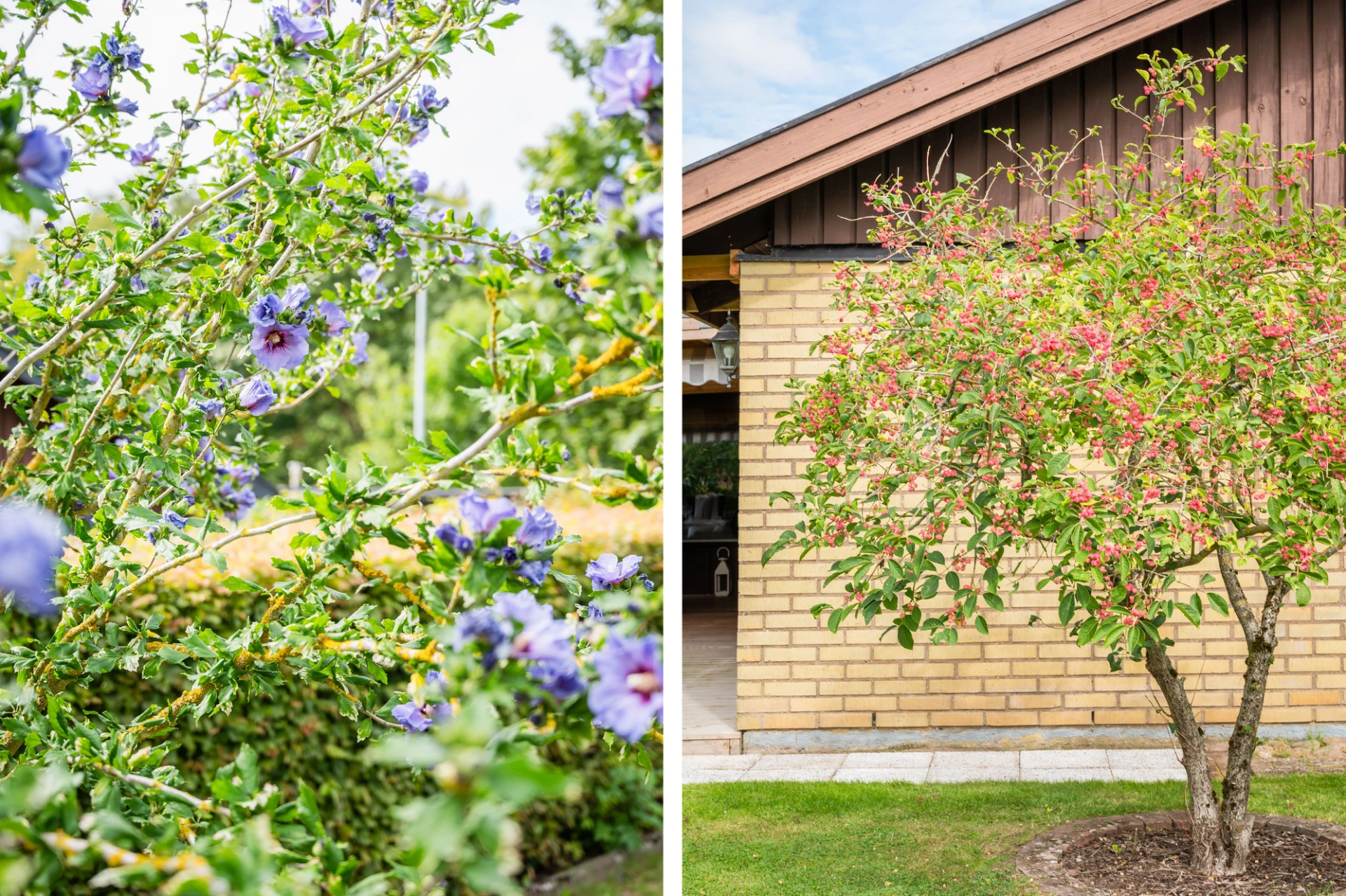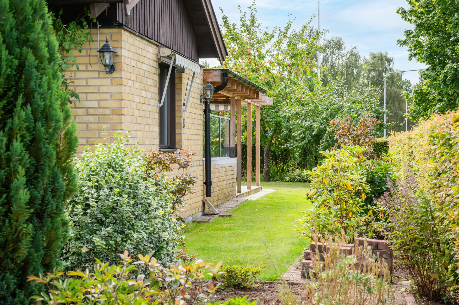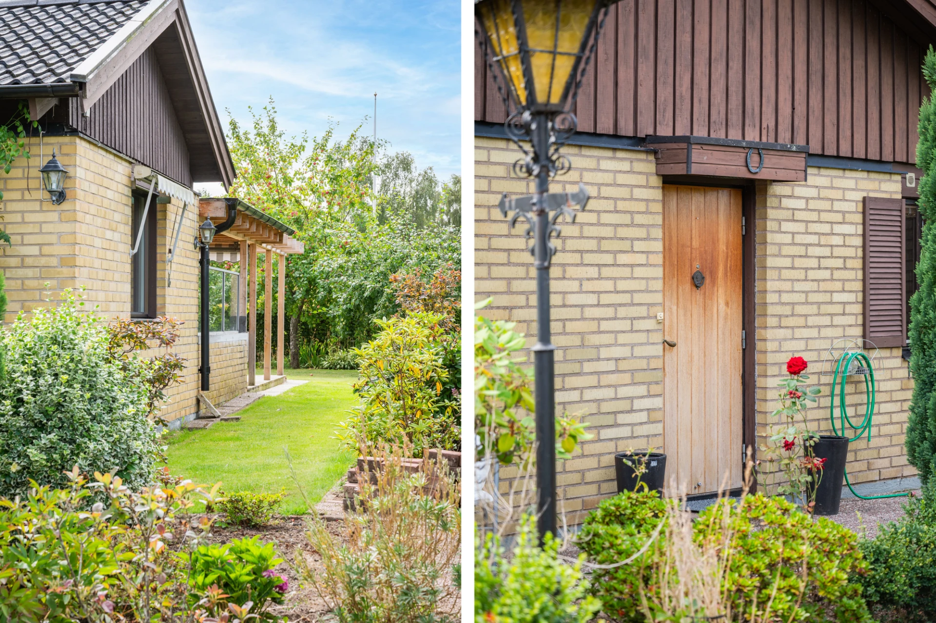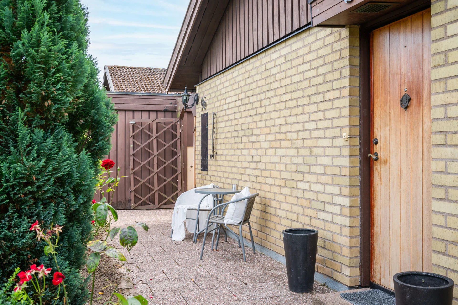 Bostaden rymmer tre sovrum av olika storlek. Ett av sovrummen har garderobsvägg med gott om förvaring, ett annat har utgång mot uteplats och det största sovrummet erbjuder både garderob och charmigt trätak som skapar en varm atmosfär.
