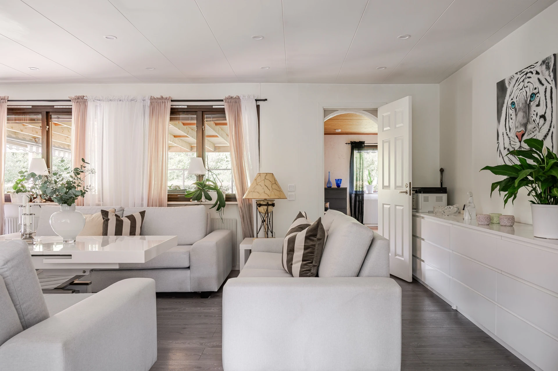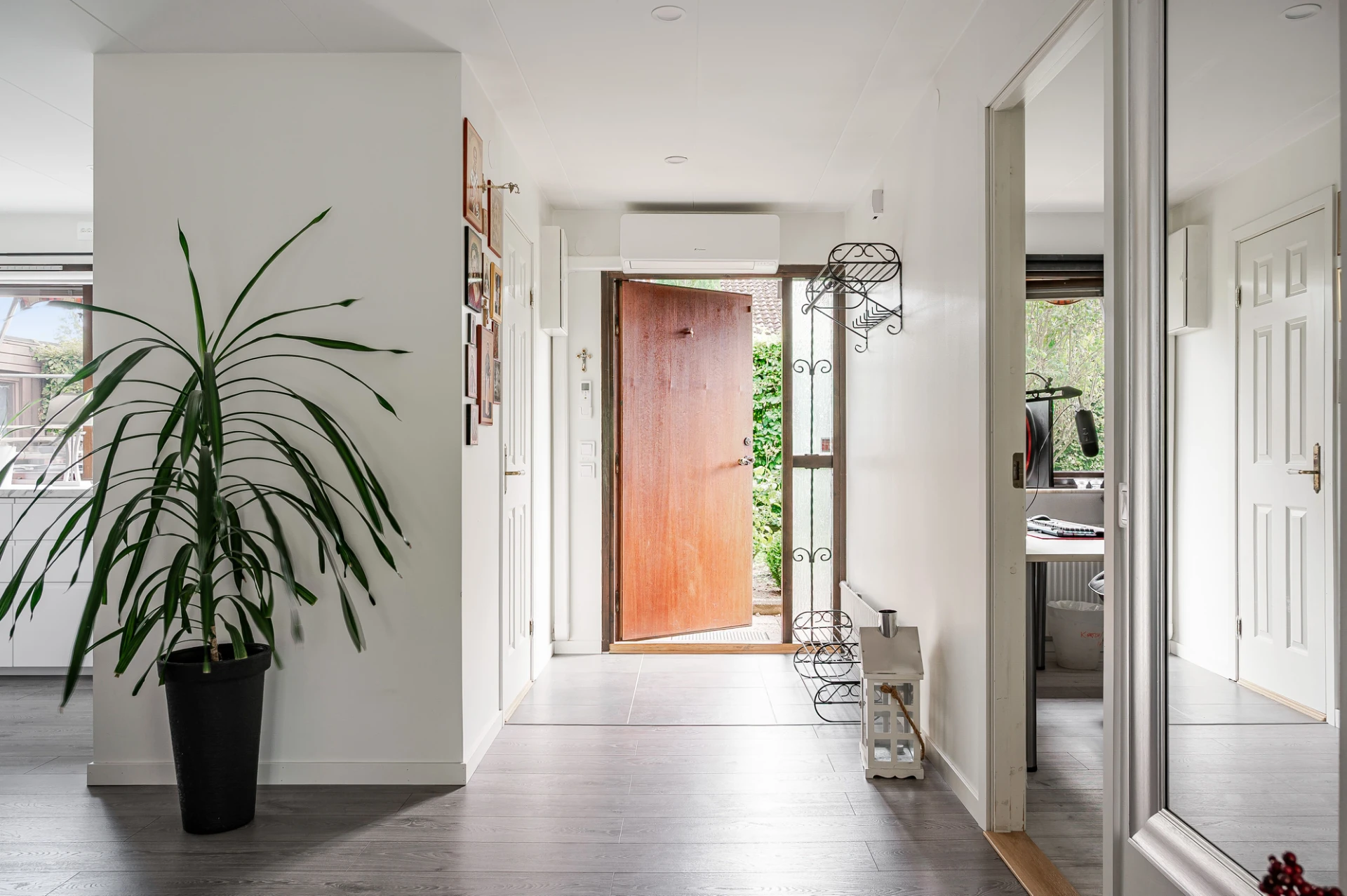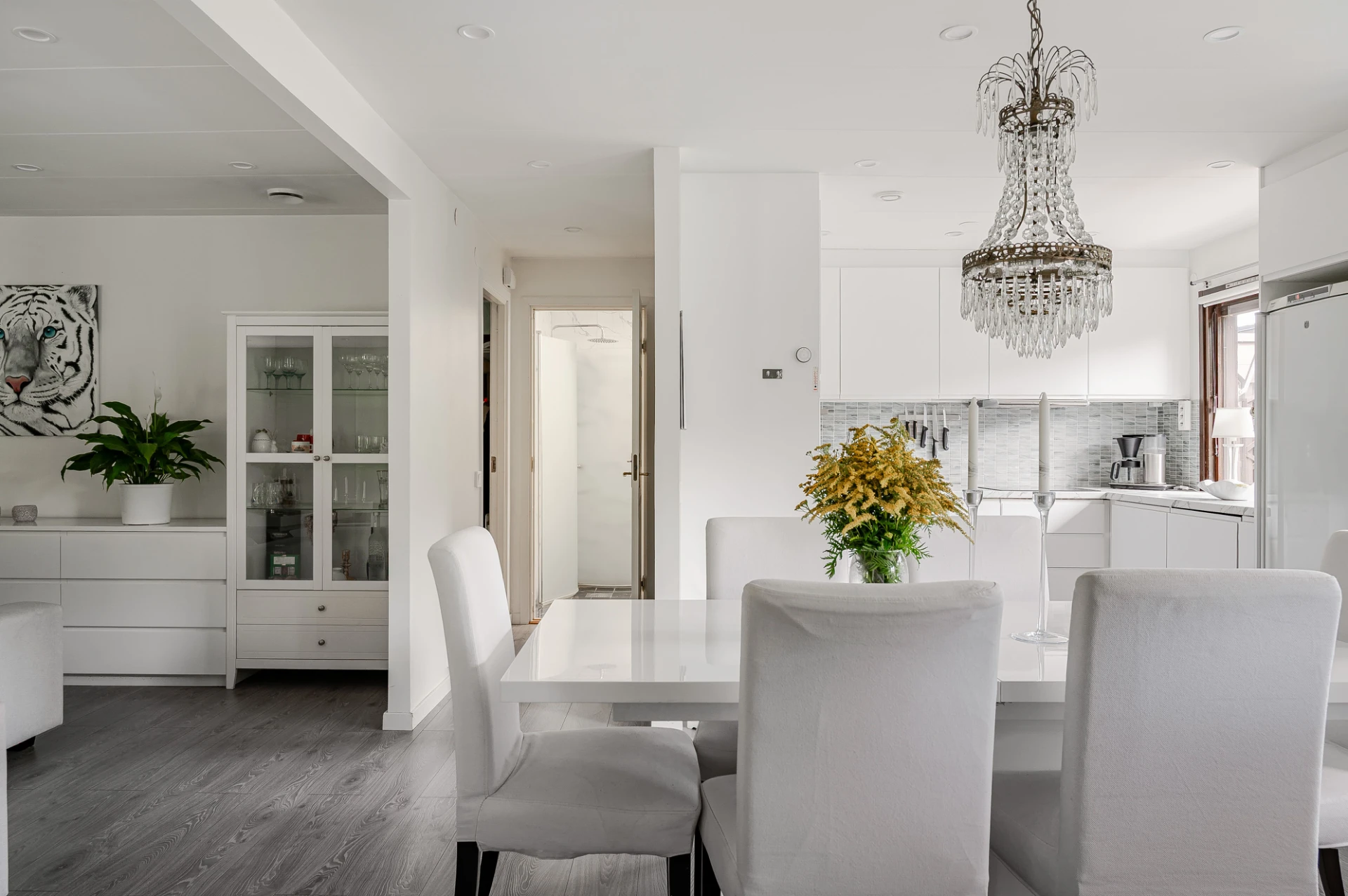 Välkommen till ett smakfullt boende med genomgående ljusa ytskikt och välplanerad planlösning. Här bor du i ett hem som kombinerar stilren design med funktionella lösningar och gott om förvaring.
