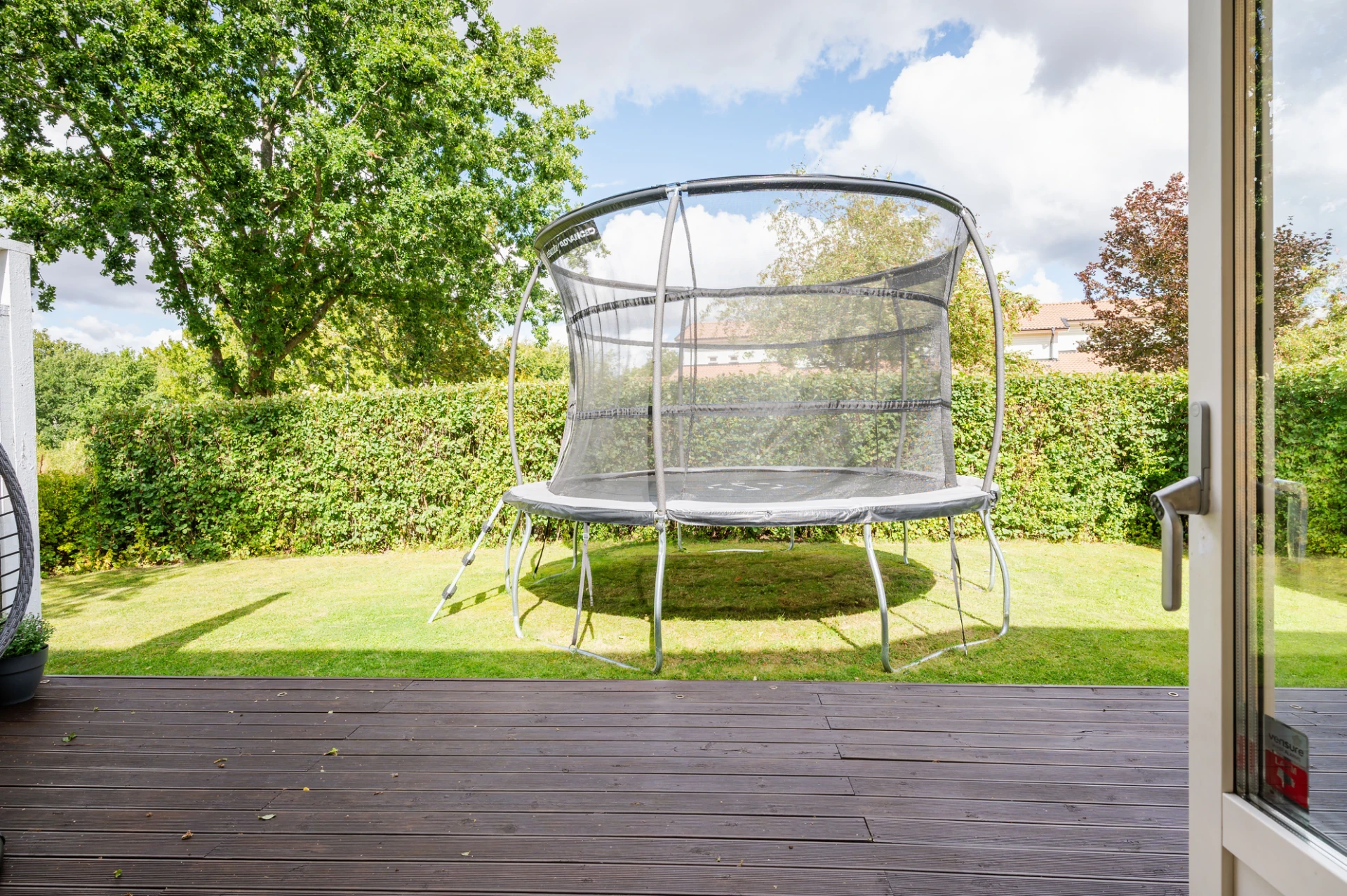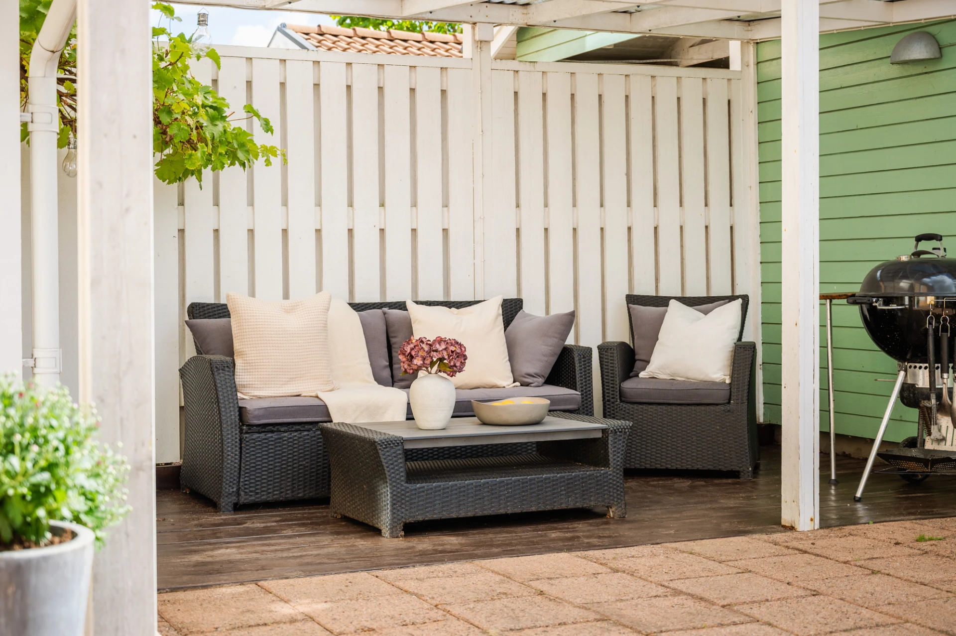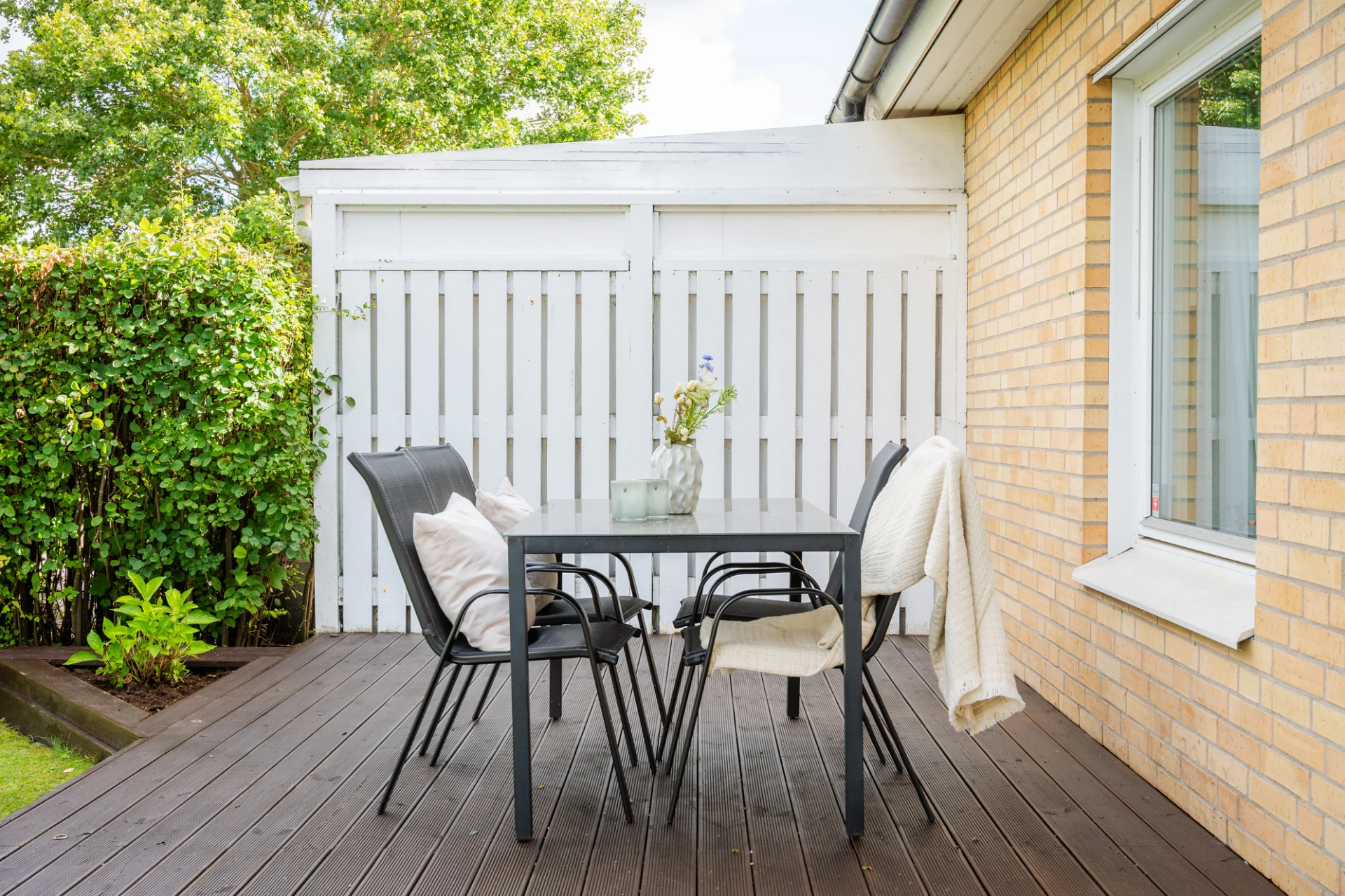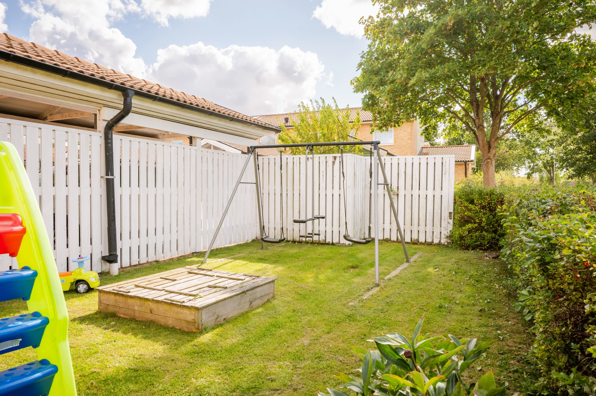 Vita slätmålade väggar. Parkettolv. Dimmer.