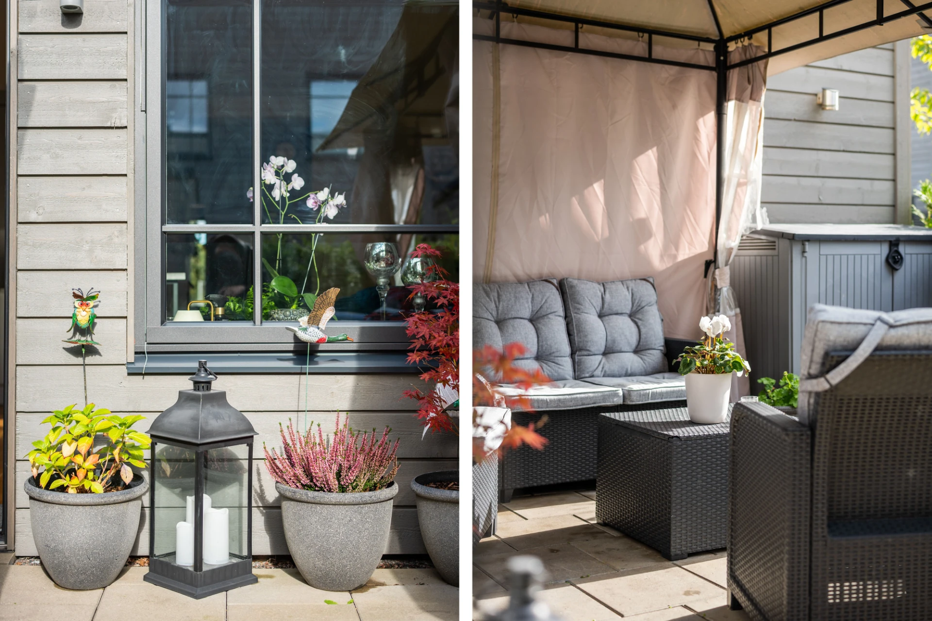 Vitmålade släta väggar. Grått klinkergolv. Garderob.