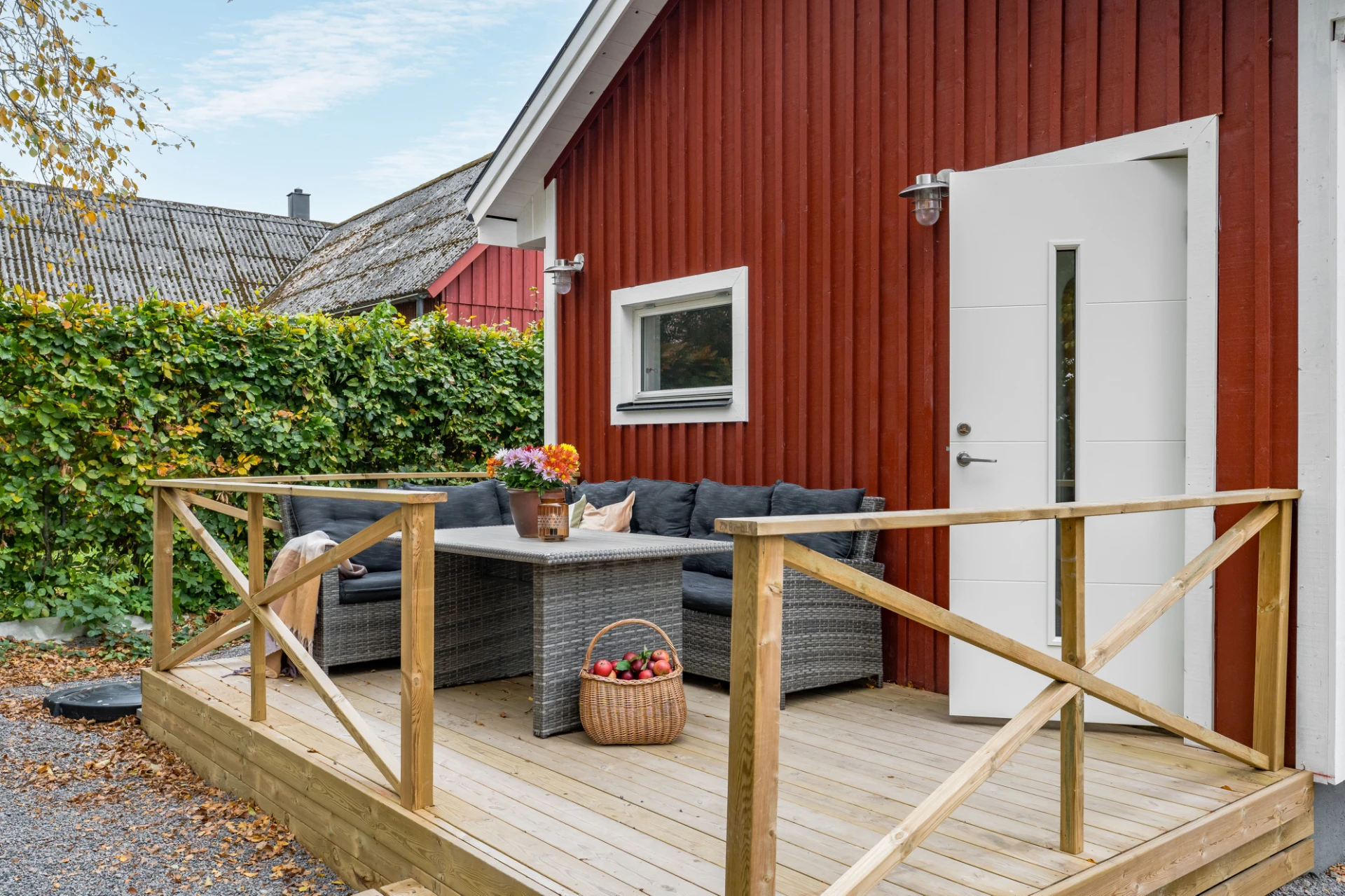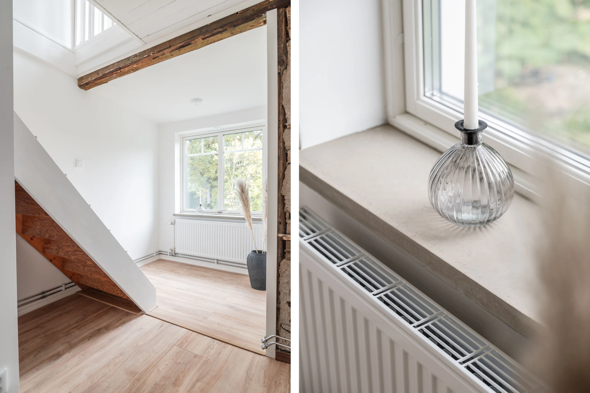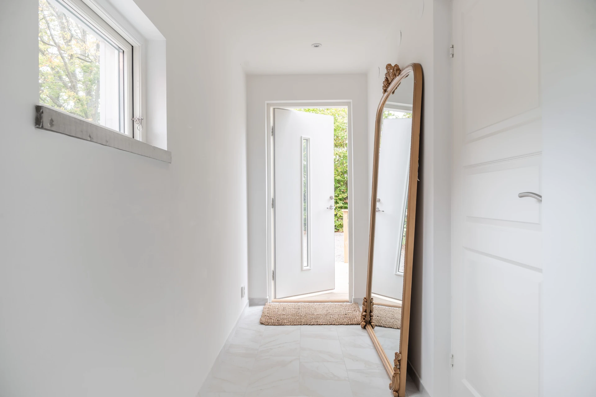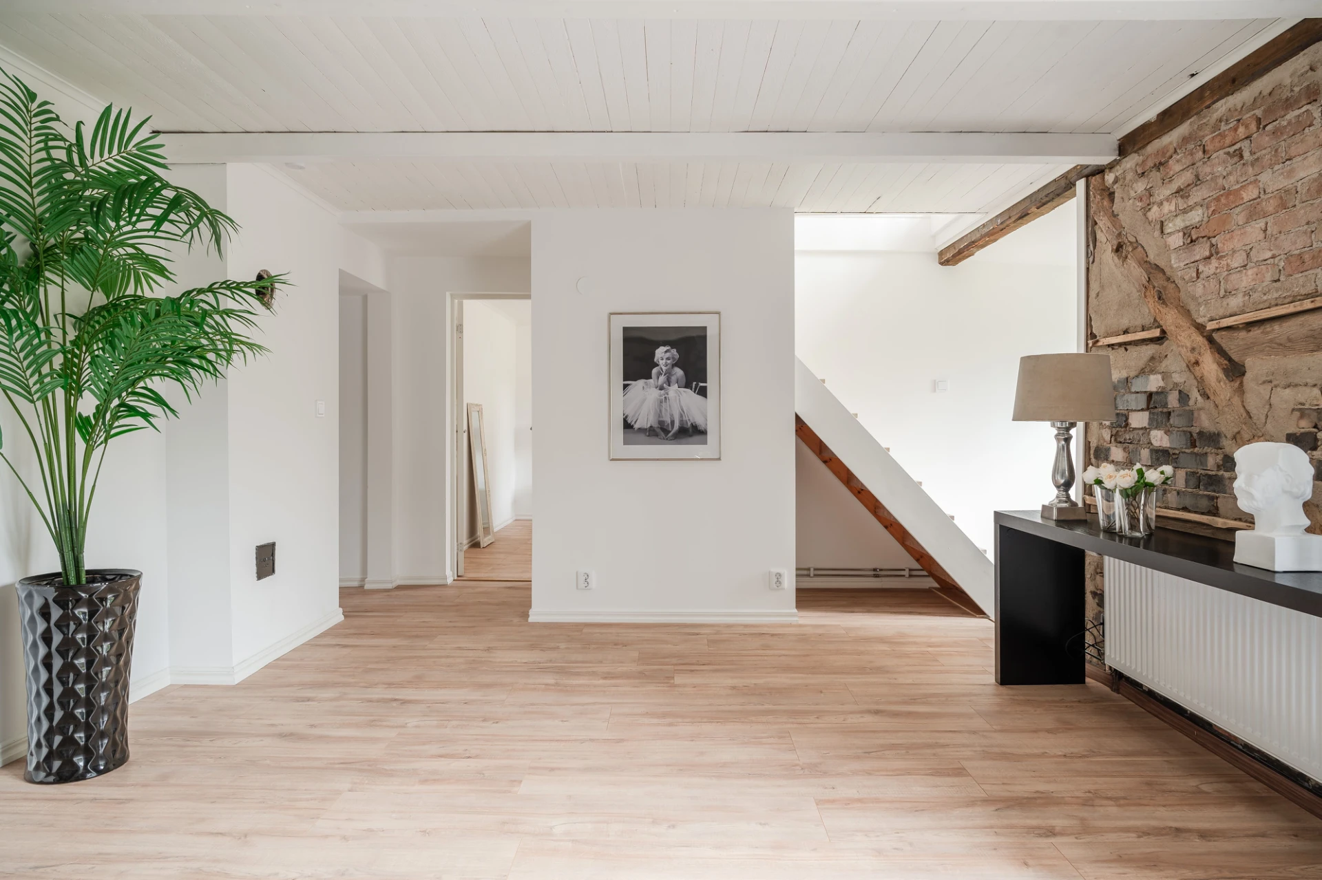 En rymlig och ljus entré med plats för avhängning och förvaring, vilket ger ett inbjudande första intryck.