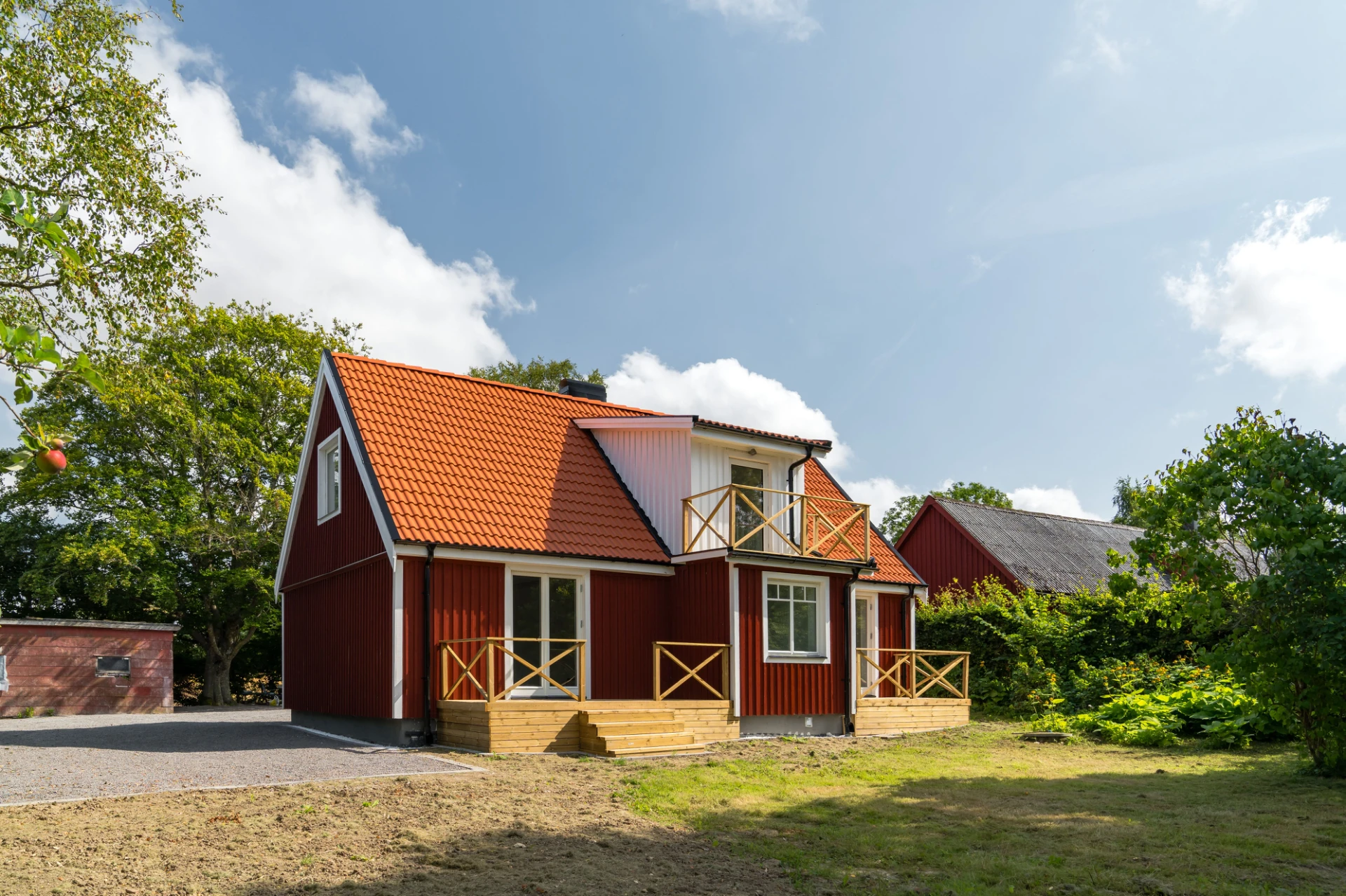 Ett rofyllt sovrum med plats för dubbelsäng och förvaringsmöbel. Fönster mot trädgården ger ett lugnt och privat läge.