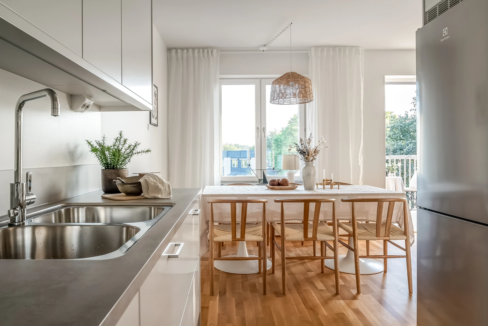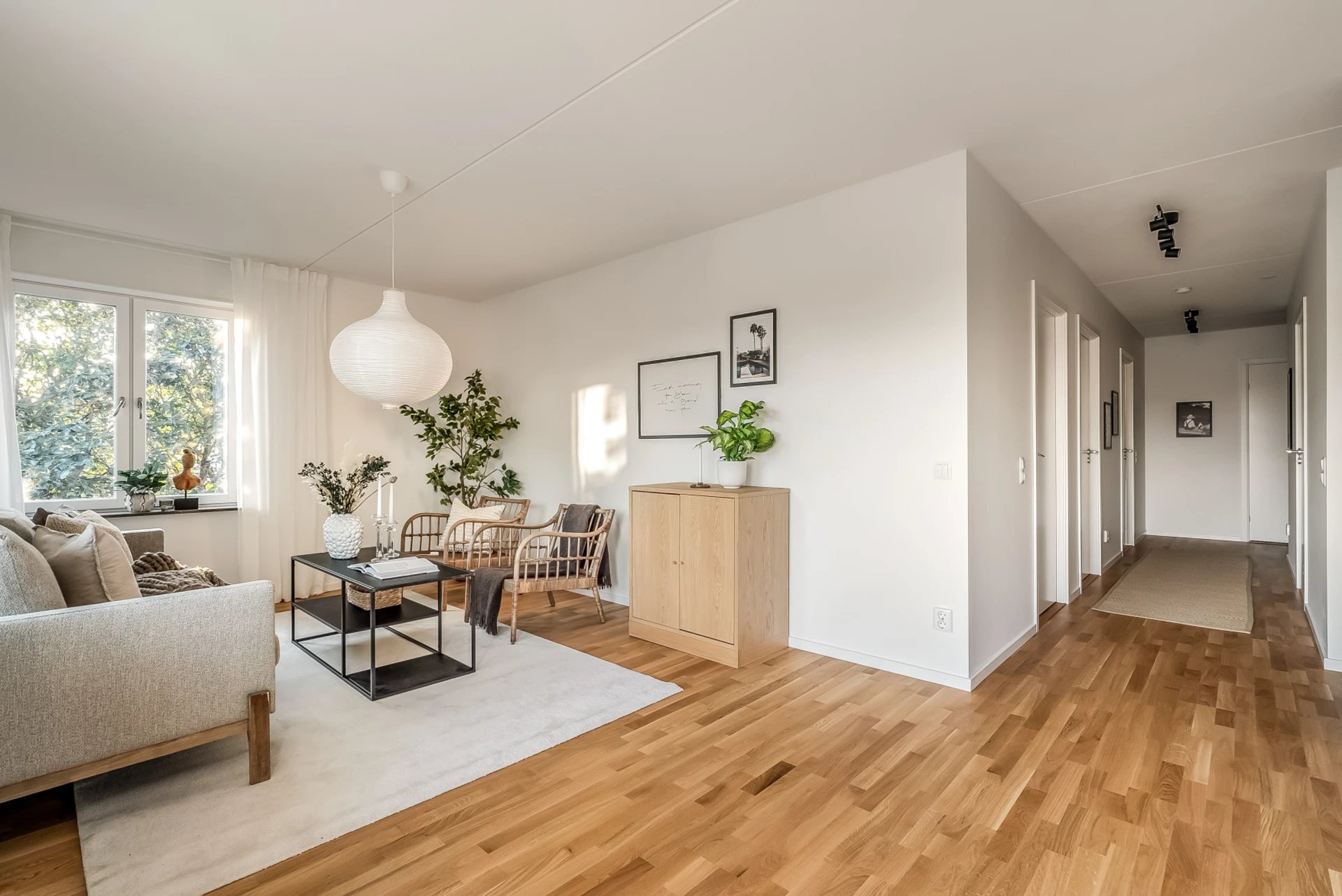 Lägenheten bjuder på ljusa ytor med genomgående parkettgolv, öppna sällskapsytor och ett smakfullt kök. Tre sovrum ger plats för hela familjen – eller för dig som vill ha både arbetsrum och gästrum.