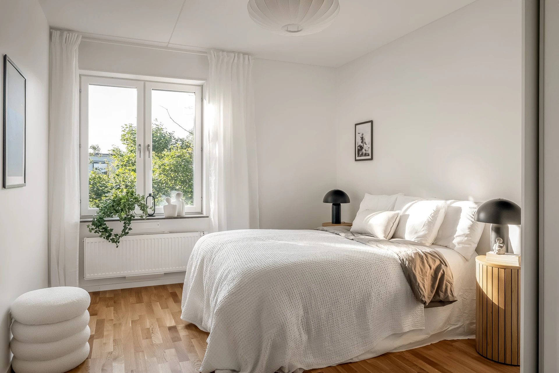 Modern och stilren fyra med balkong i naturnära Hässelby Villastad