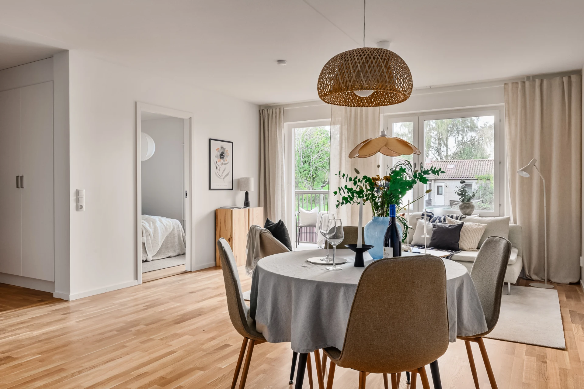 Välkommen till ett hem där trivsel, funktion och lugn omgivning möts i perfekt harmoni. Denna välplanerade tvåa erbjuder allt du behöver för ett bekvämt och stilrent boende – med genomtänkt planlösning, fina förvaringsmöjligheter och en generös balkong som vetter mot en grön och stillsam innergård.