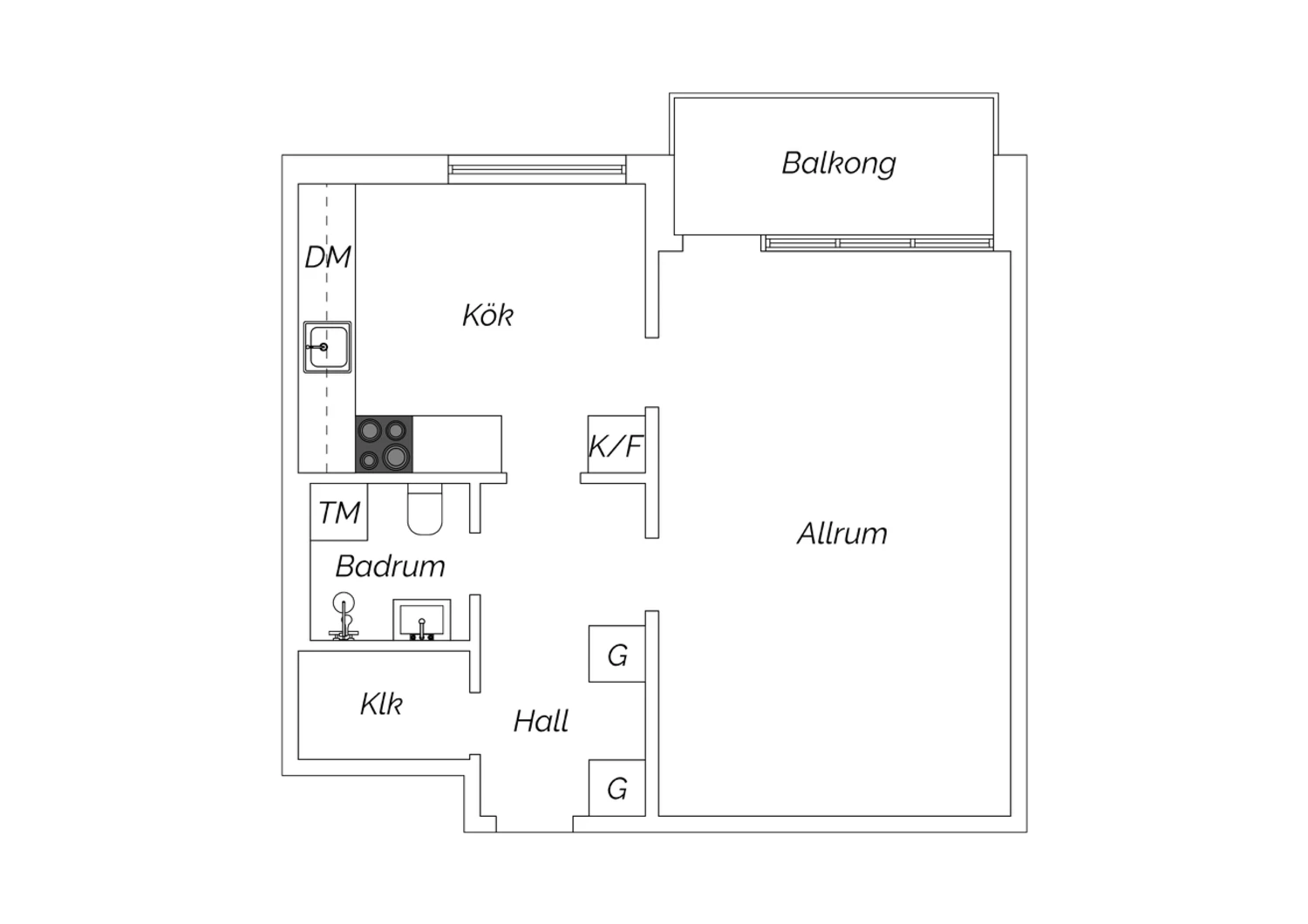 Rymlig etta med inglasad balkong i förening med stabil ekonomi
