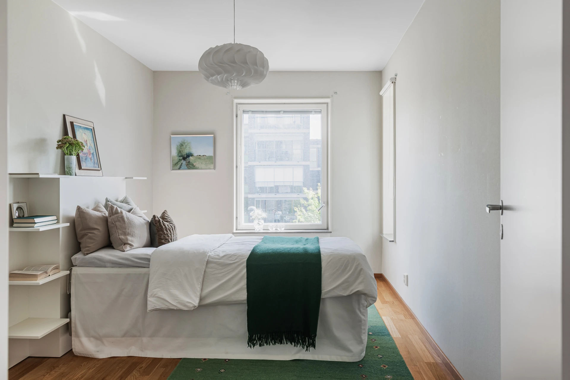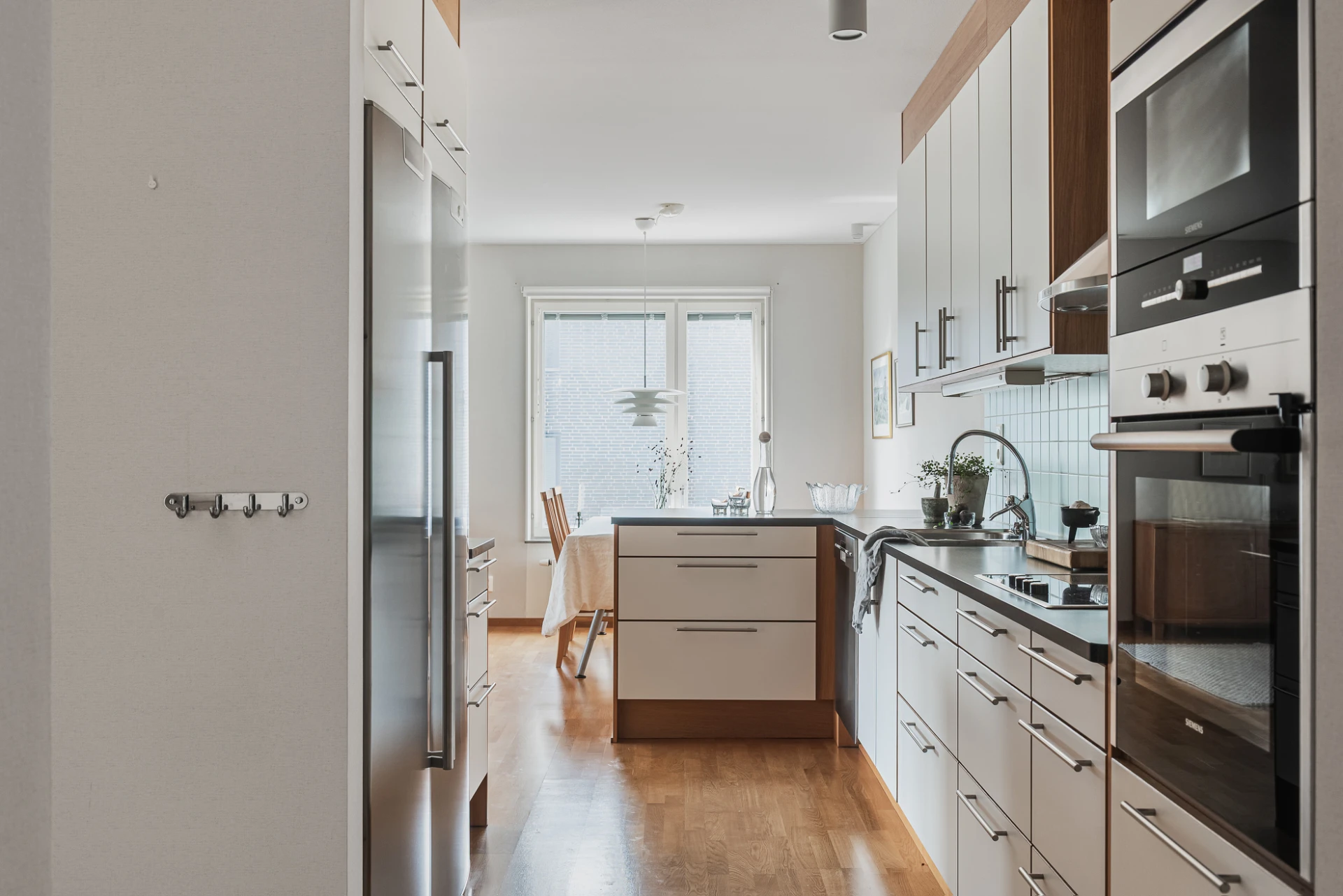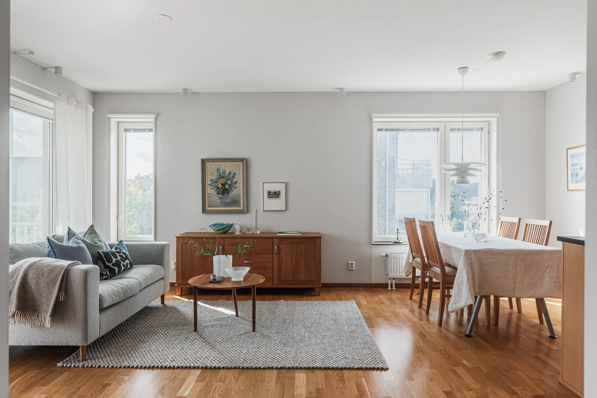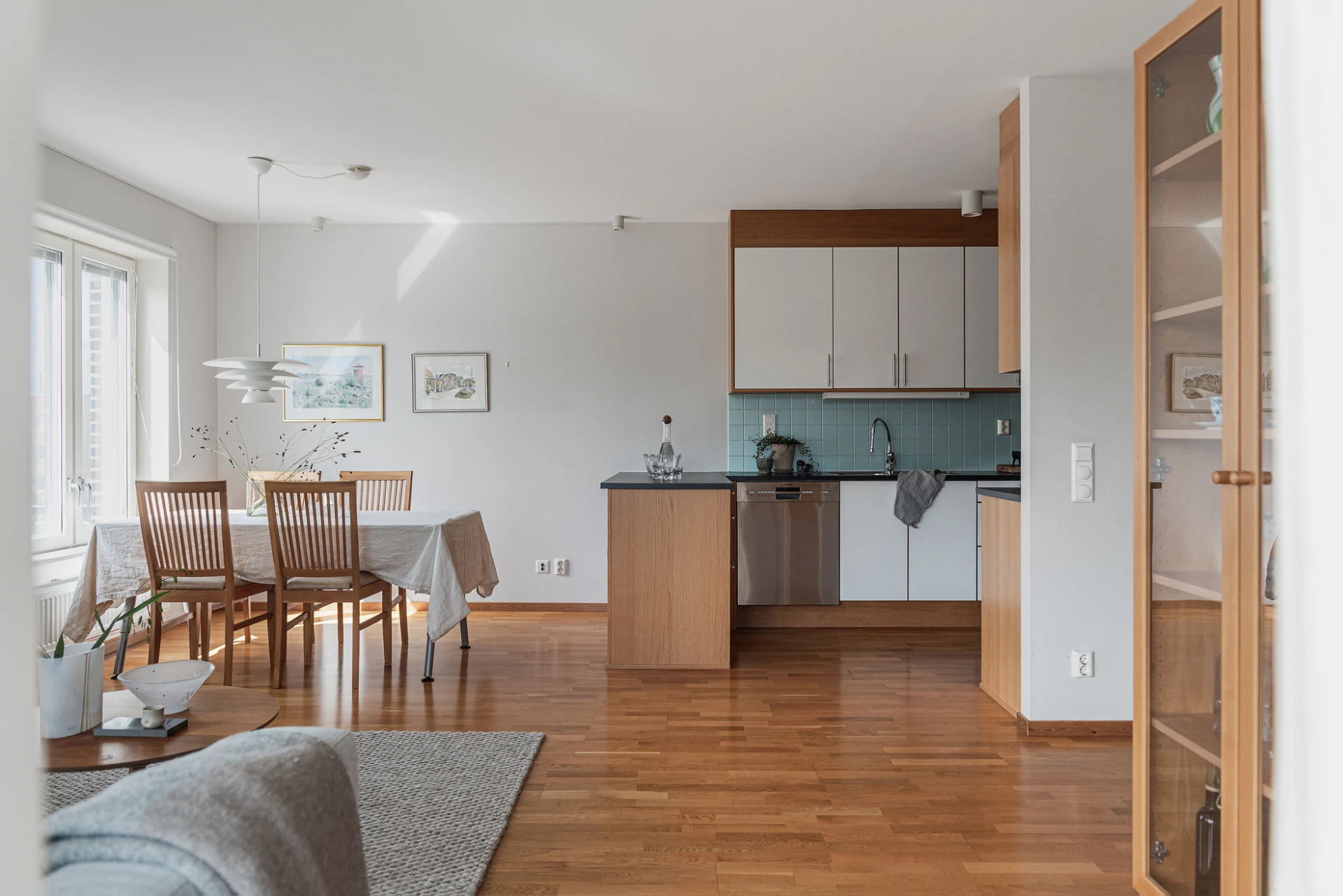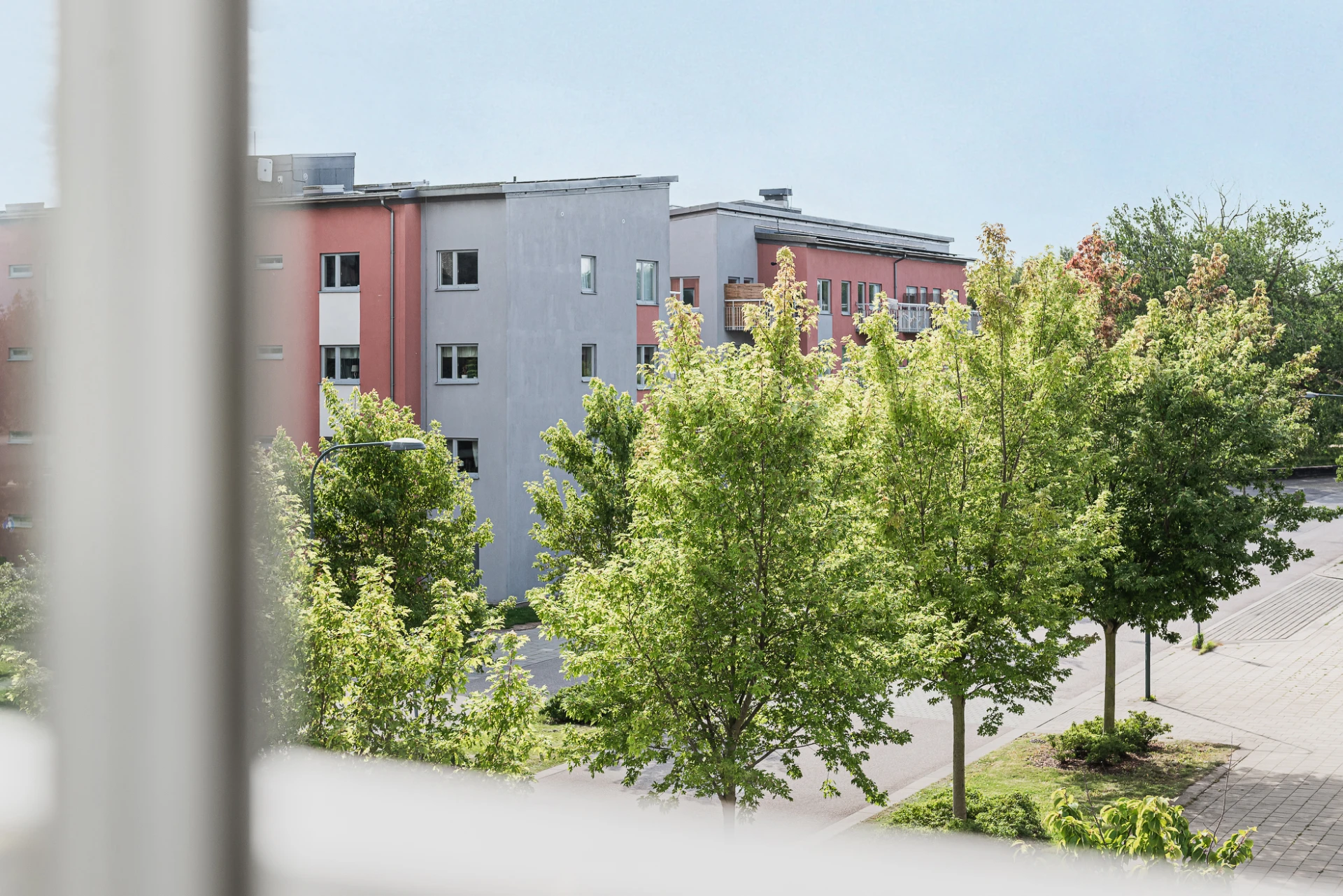 I omtyckta och natursköna Gyllins Trädgård väntar denna ljusa bostad på tredje våningen, bekvämt nåbar med hiss från markplan. Här bor du på hörna med fönster i två väderstreck vilket skapar en luftig och trivsam atmosfär redan från första steget in. Hemmets sällskapsytor är välplanerade där vardagsrum och kök möts i en semiöppen planlösning. Här finns plats för både soffgrupp och matplats och köket ligger perfekt placerat för att låta måltider och samtal flätas samman. Den generösa balkongen med glaspartier från golv till tak blir snabbt hemmets favoritrum. Sommartid öppnas glasen upp och släpper in sol och frisk luft medan vi drar för under de kalla månaderna och njuter av en skyddad uterumskänsla. Vidare erbjuds två välplanerade sovrum, där det större har gott om förvaring i en rymlig skjutdörrsgarderob och det finns även ett badrum med egna tvättmöjligheter.