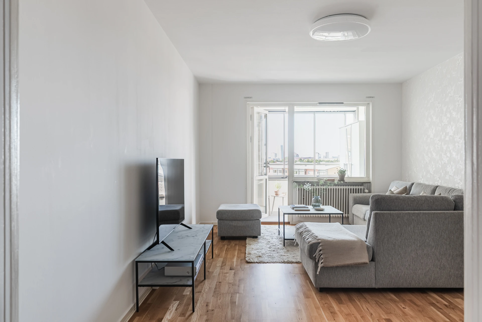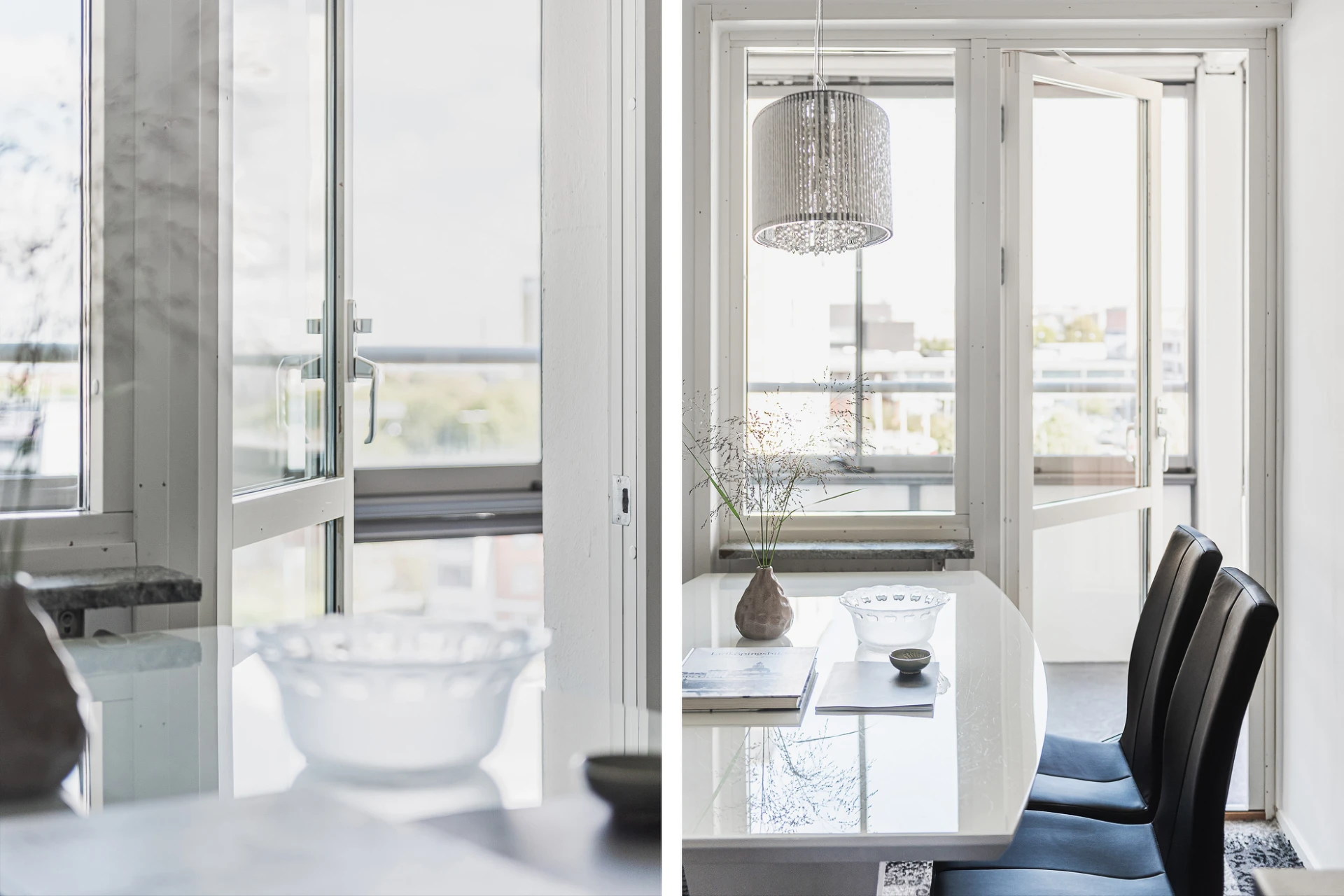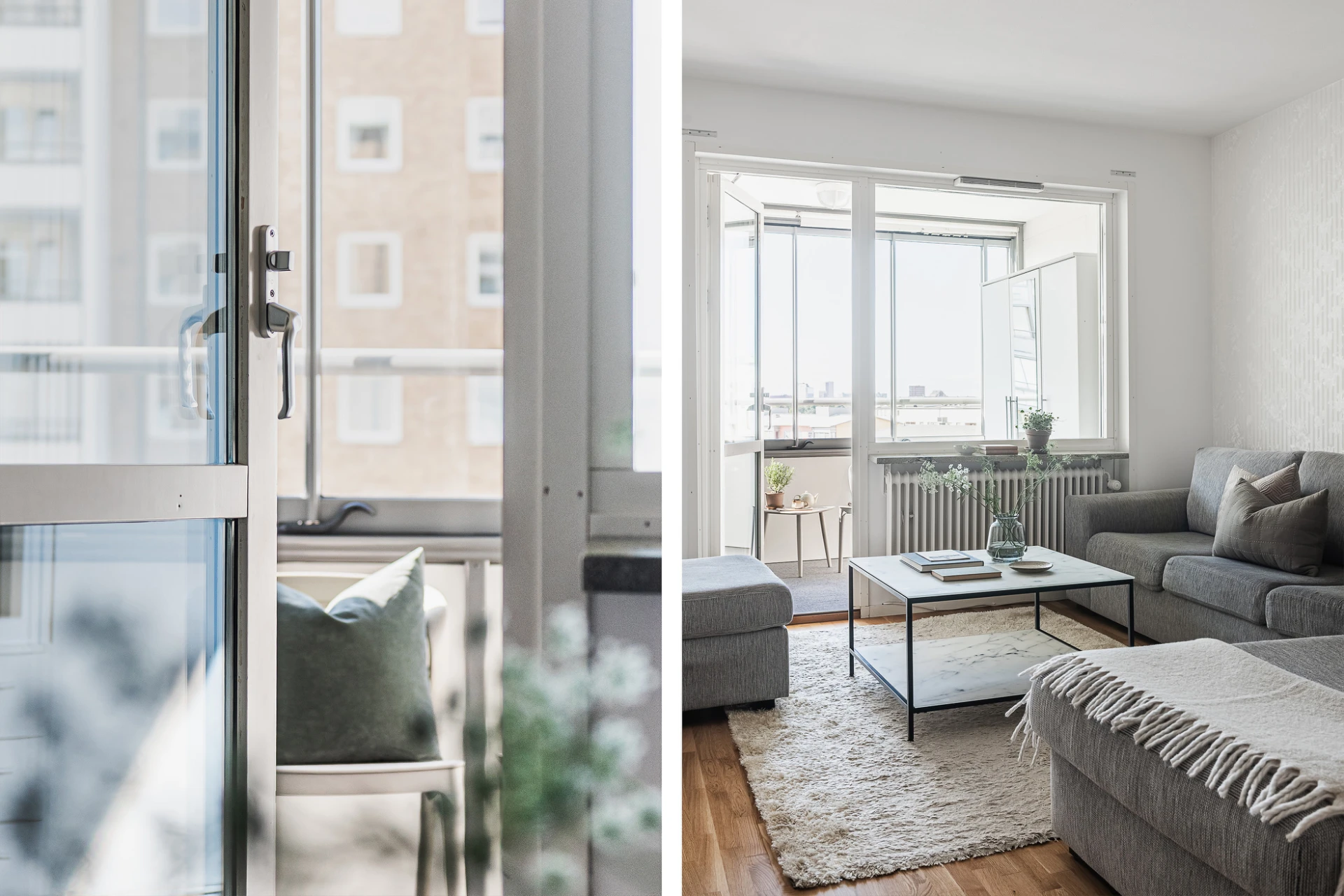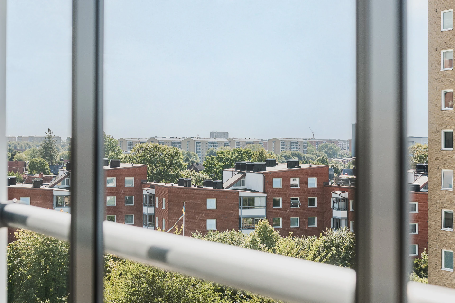 Högt upp i huset, på sjunde våningen, väntar en bostad som bjuder på en underbar utsikt! Här breder staden ut sig och vyerna sträcker sig så långt ögat kan nå. Bostadens två inglasade balkonger i olika väderstreck är otroligt uppskattade och gör att solen kan avnjutas från tidig morgon till sen kväll. Här inleds dagen med soluppgången och avslutas med stadens glittrande ljus och solnedgångens färgspel. De generösa glaspartierna gör balkongerna till förlängda rum året om - öppna upp på sommaren och stäng in värmen under årets svalare dagar. Invändigt möts du av en yteffektiv planlösning med trivsam komfort. Köket är tidlöst renoverat och badrummet är helkaklat. Samtliga rum ramas in av ett härligt ljusinsläpp och rymd tack vare bostadens höga läge och genomtänkta planlösning.