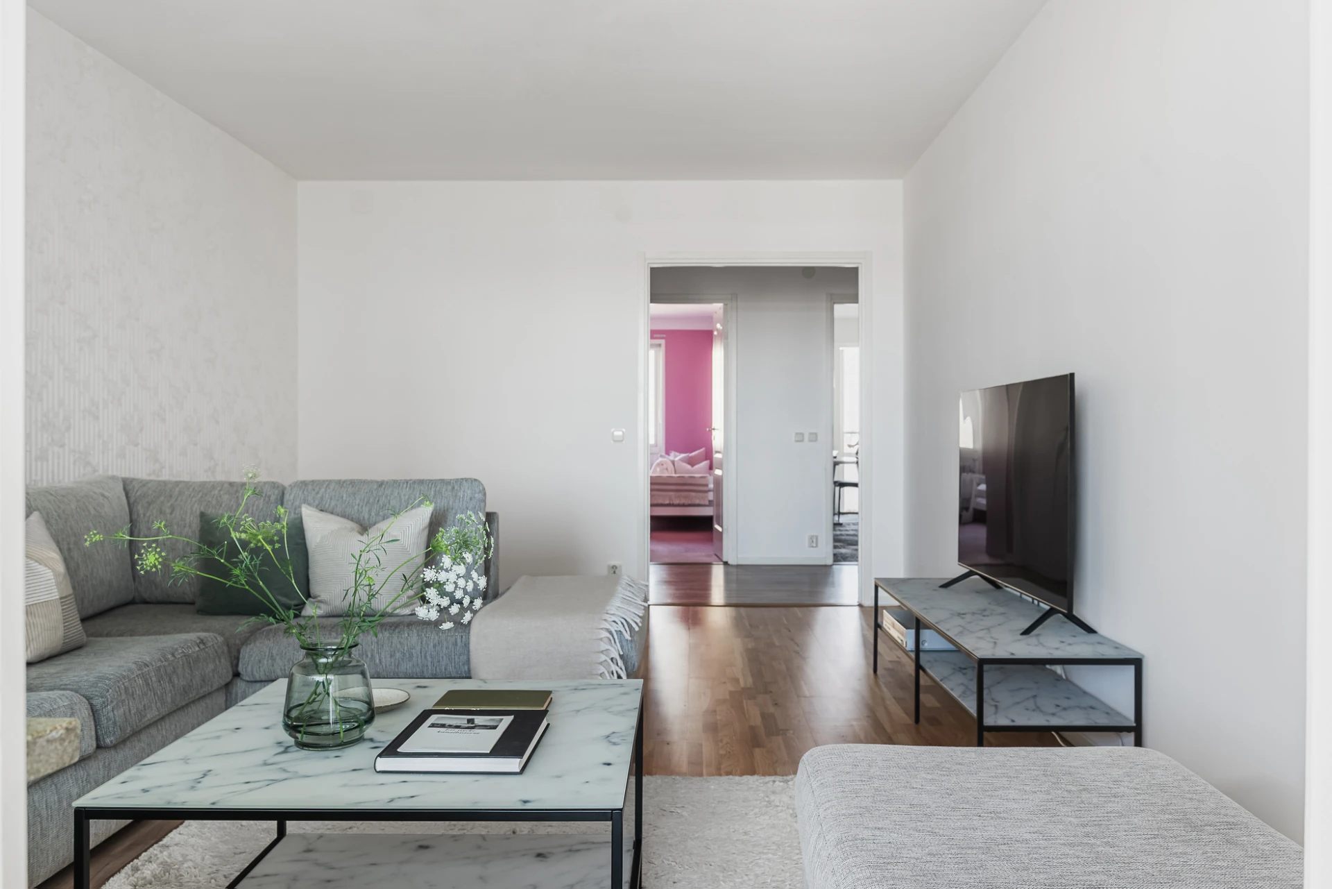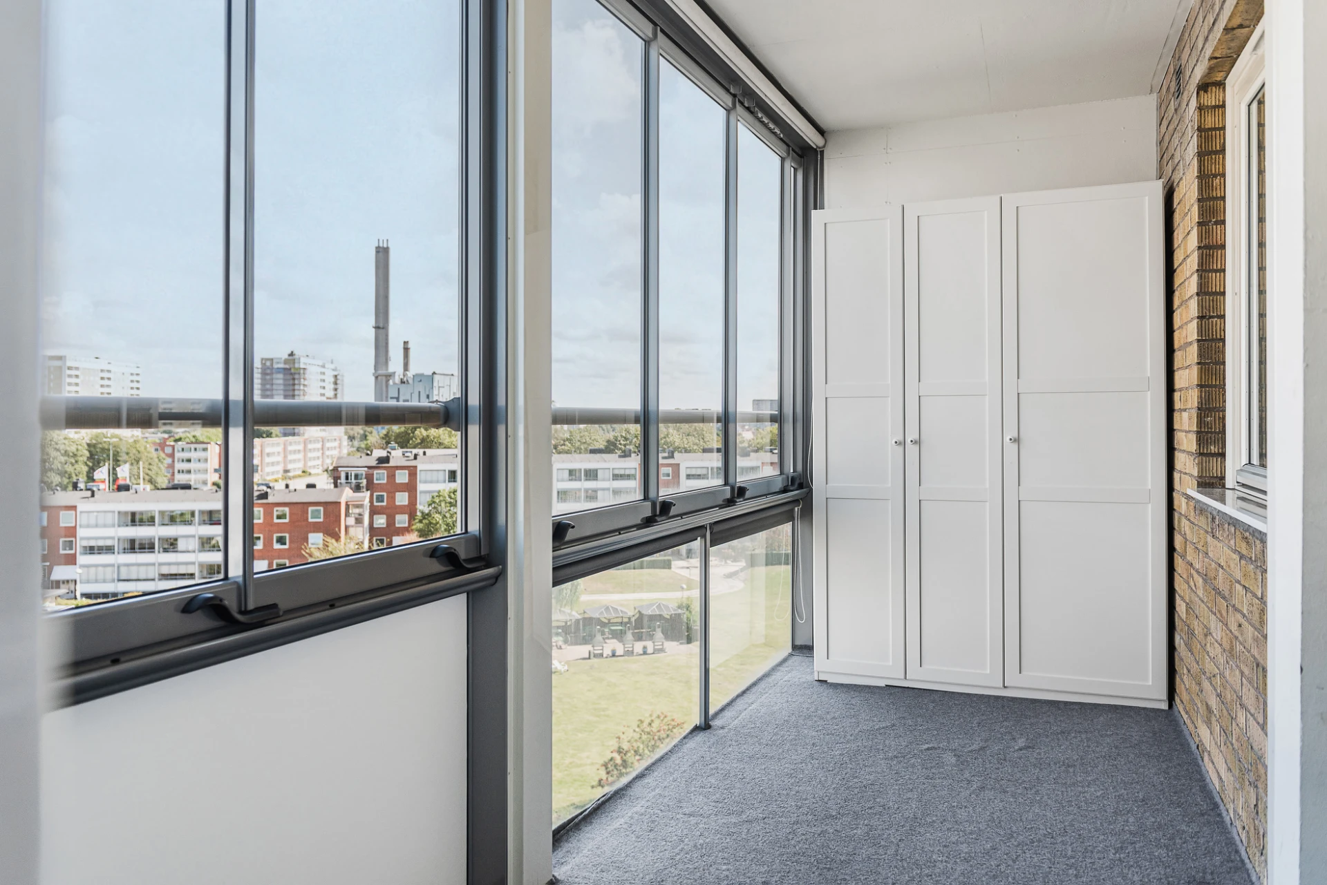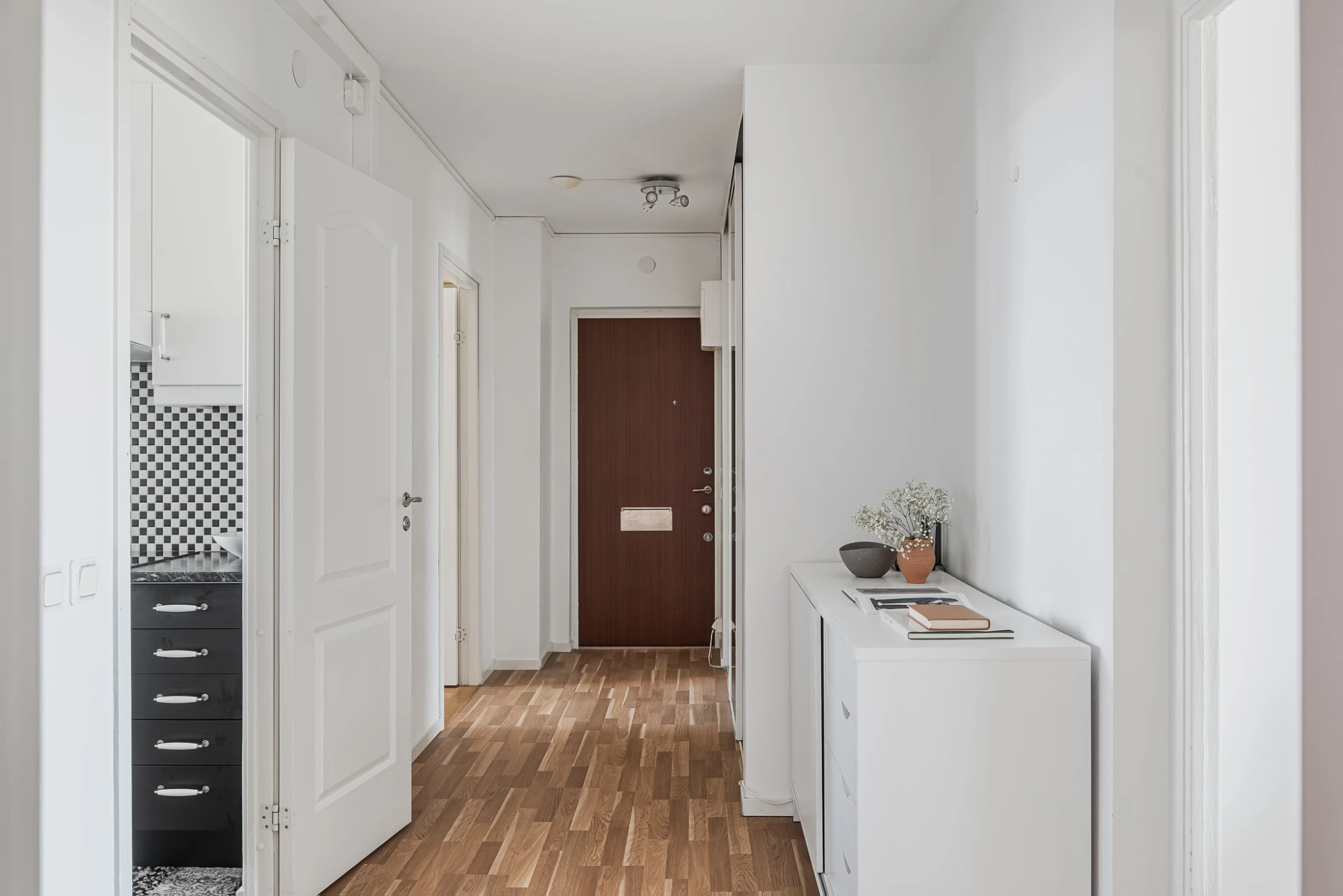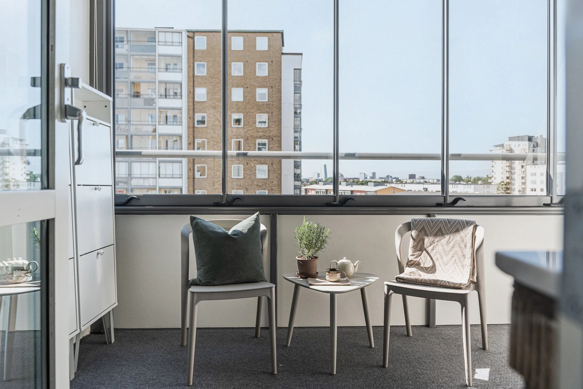 Högt upp i huset, på sjunde våningen, väntar en bostad som bjuder på en underbar utsikt! Här breder staden ut sig och vyerna sträcker sig så långt ögat kan nå. Bostadens två inglasade balkonger i olika väderstreck är otroligt uppskattade och gör att solen kan avnjutas från tidig morgon till sen kväll. Här inleds dagen med soluppgången och avslutas med stadens glittrande ljus och solnedgångens färgspel. De generösa glaspartierna gör balkongerna till förlängda rum året om - öppna upp på sommaren och stäng in värmen under årets svalare dagar. Invändigt möts du av en yteffektiv planlösning med trivsam komfort. Köket är tidlöst renoverat och badrummet är helkaklat. Samtliga rum ramas in av ett härligt ljusinsläpp och rymd tack vare bostadens höga läge och genomtänkta planlösning.