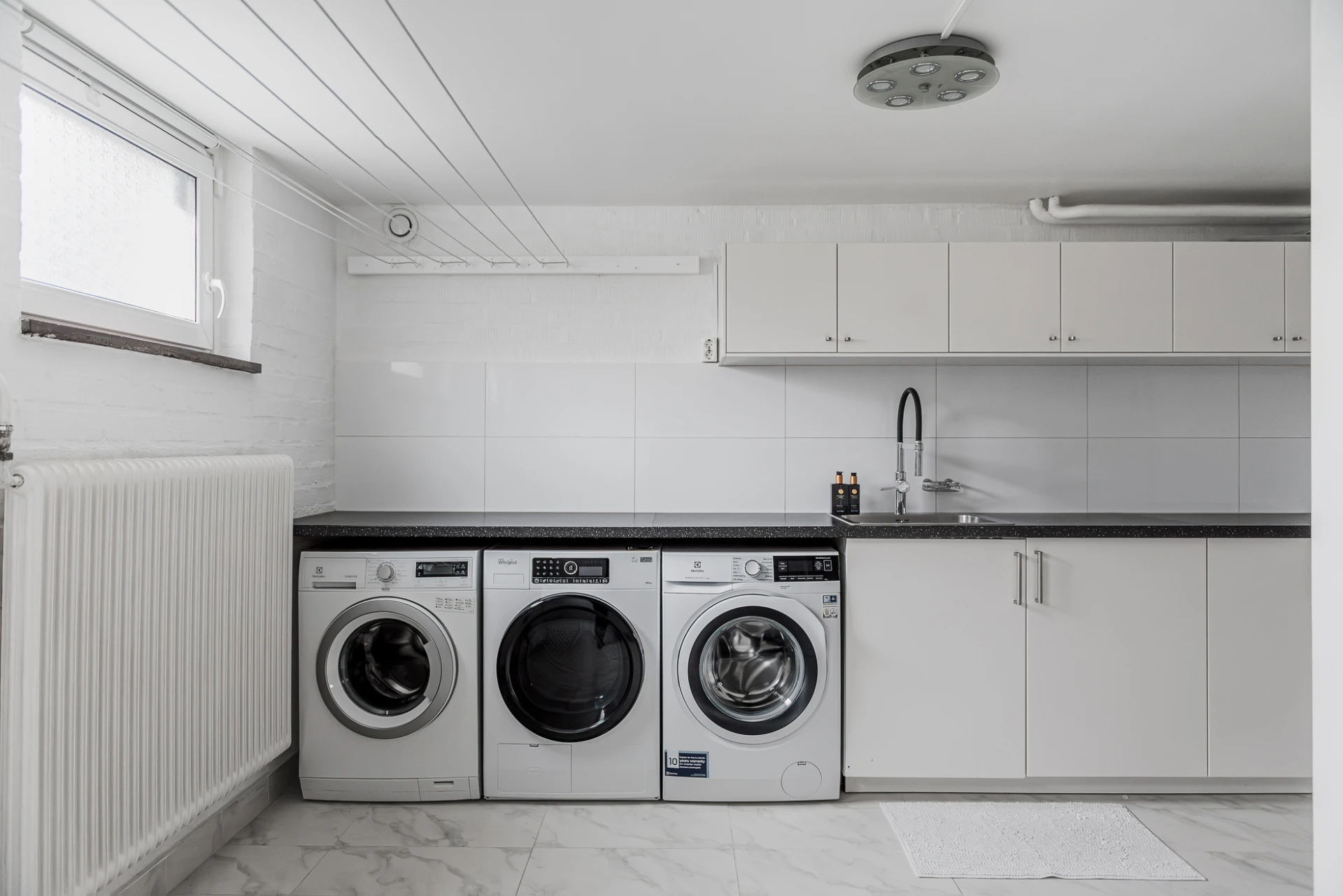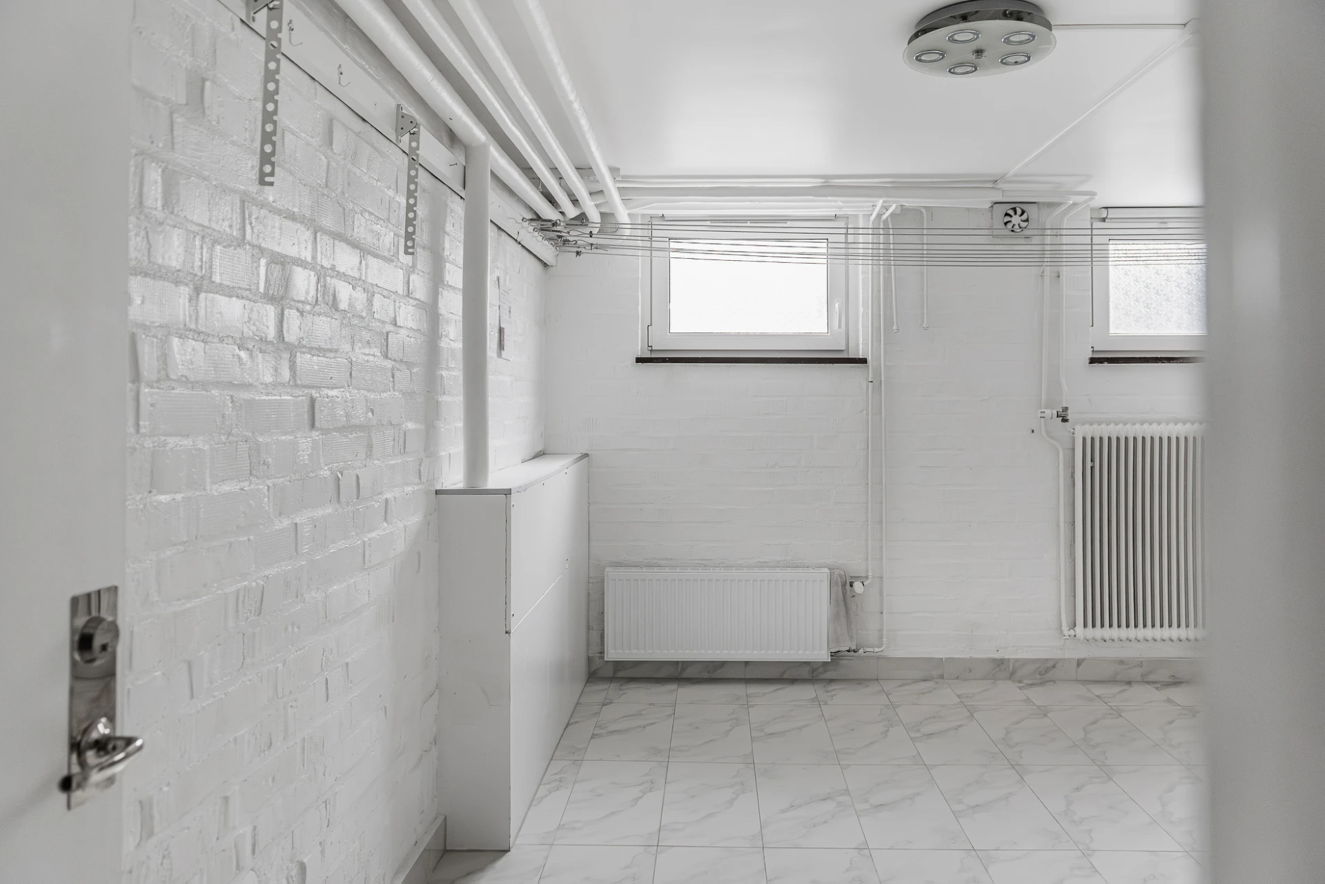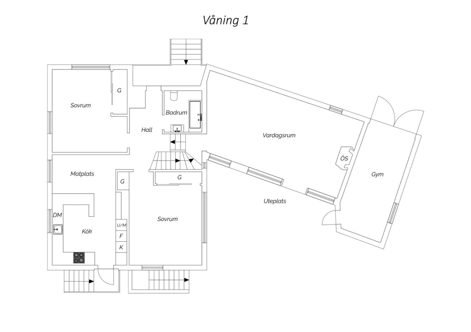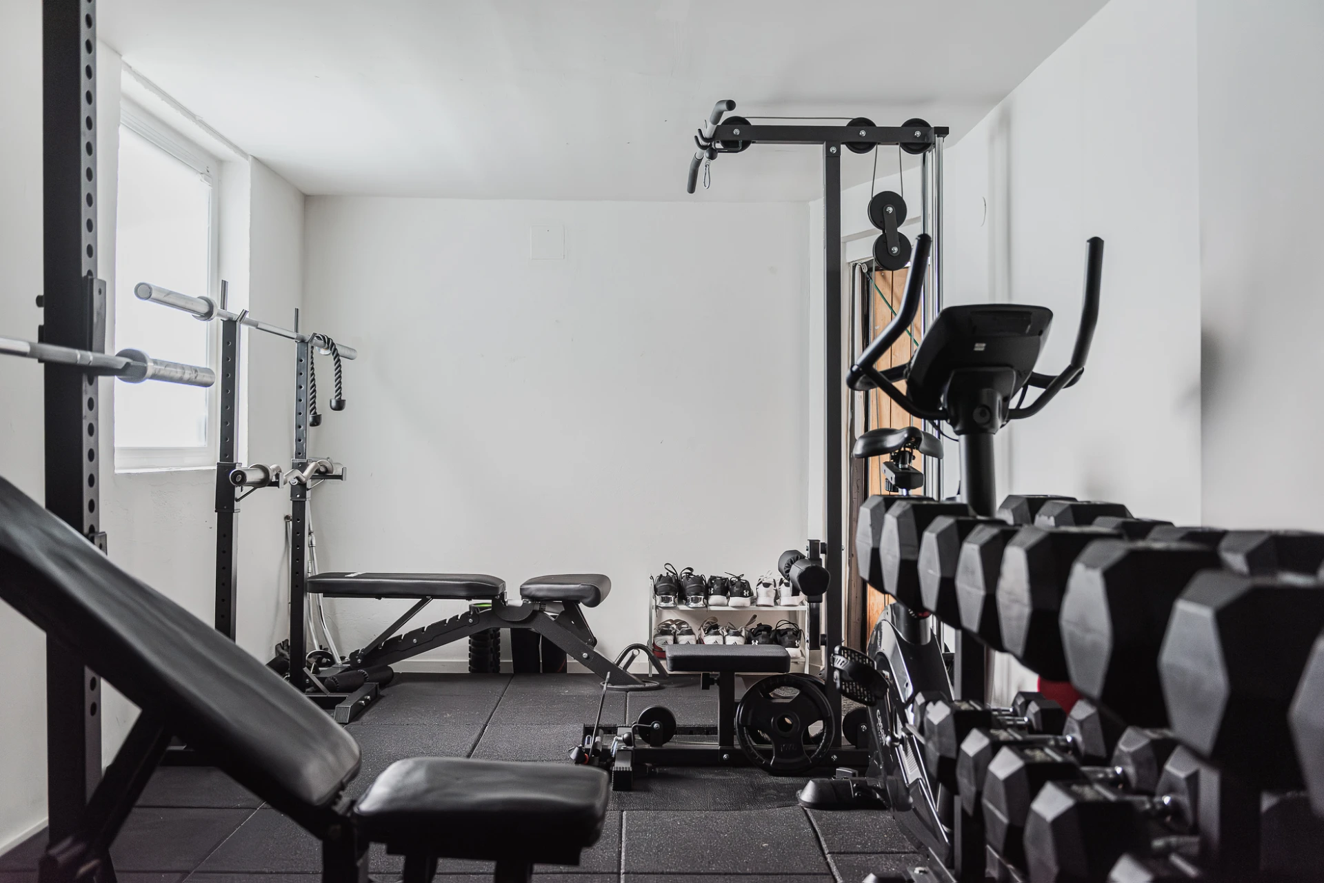 Det mindre garaget renoverades till gym med specialgolv anpassat för träning.