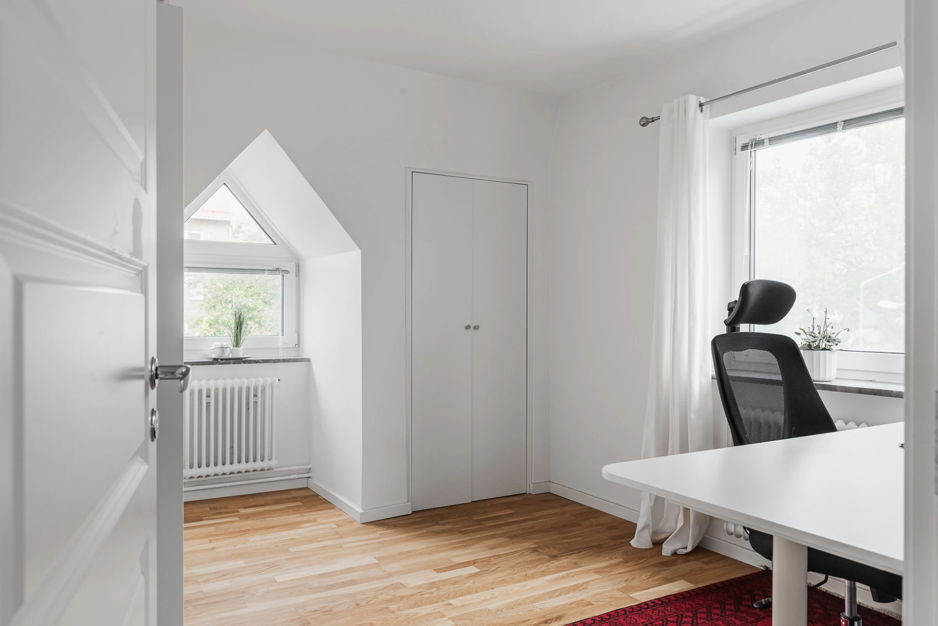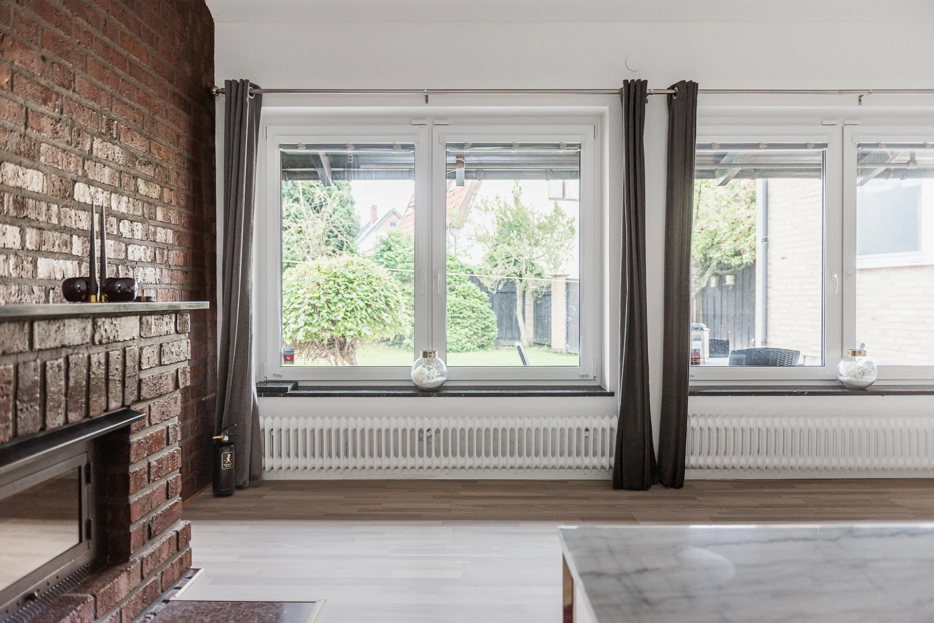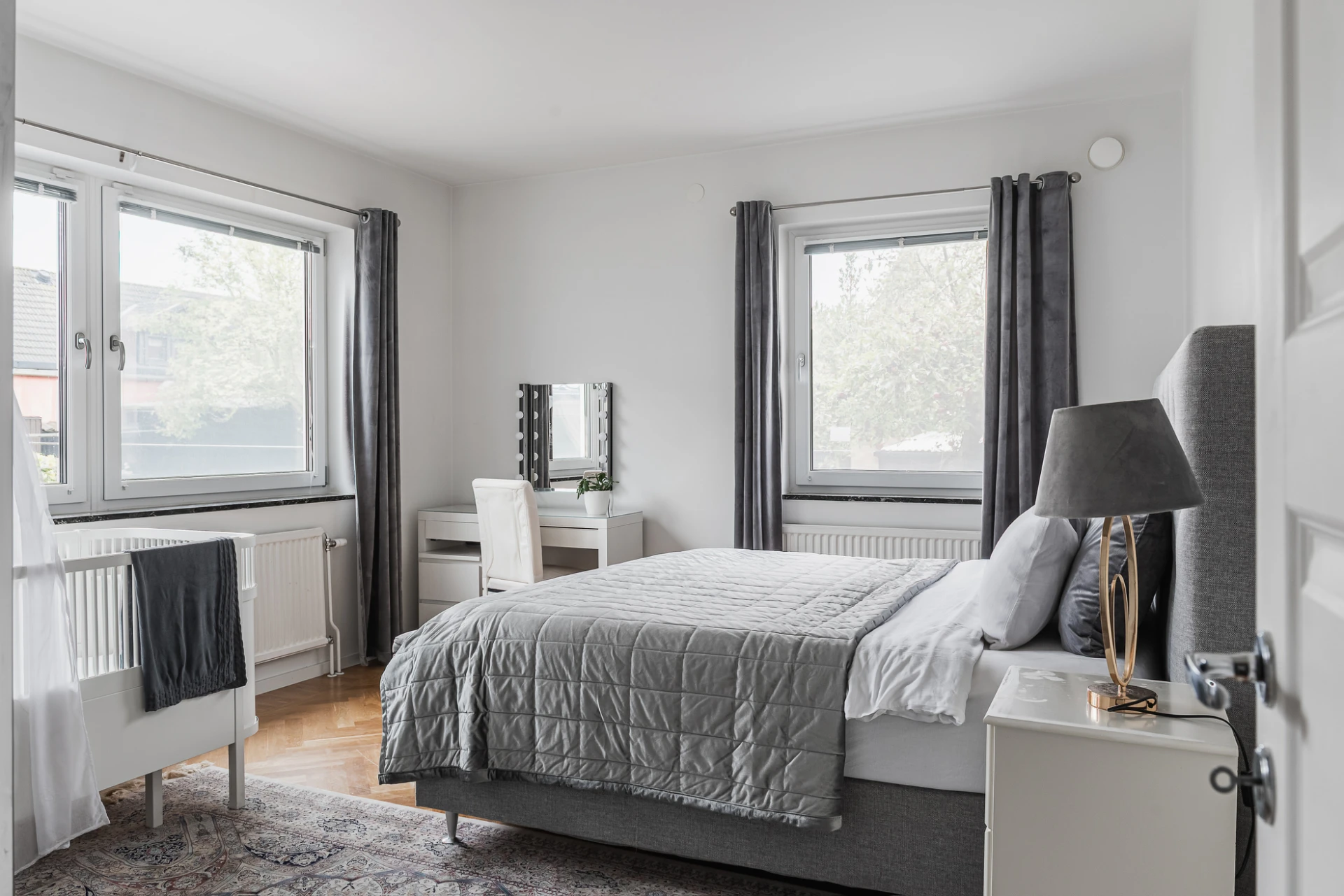 2023 byttes fönster till 3-glas premium med insektsnät som kan öppnas inåt och utåt. Renovering runt fönstren invändigt, uppsättning av persienner och plåt runt fönster utvändigt.