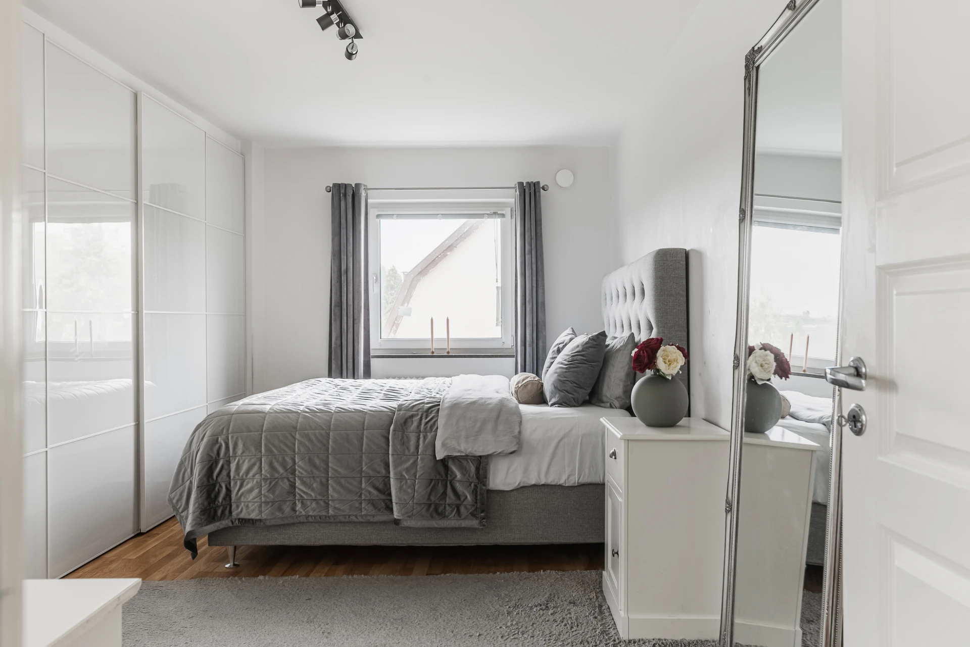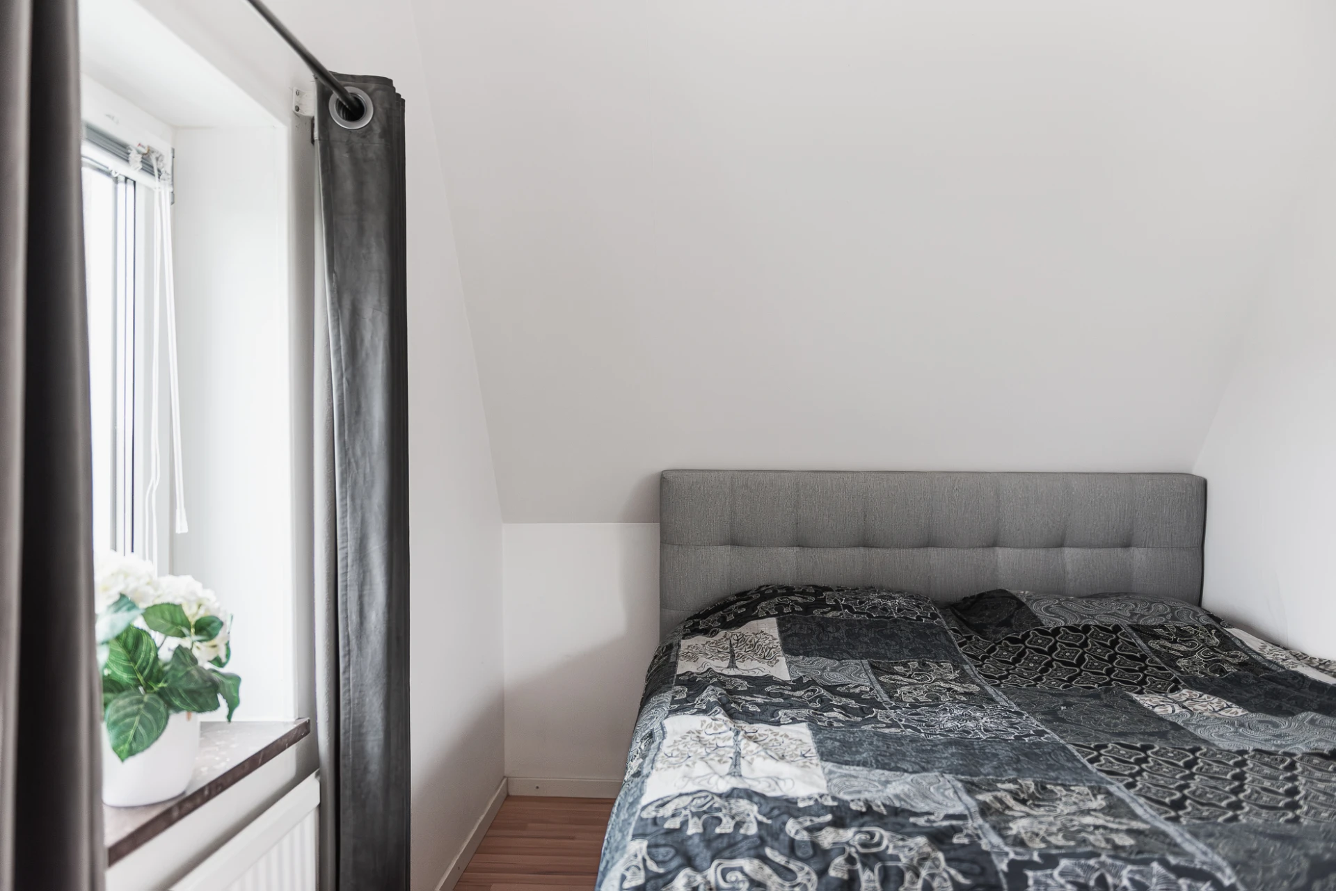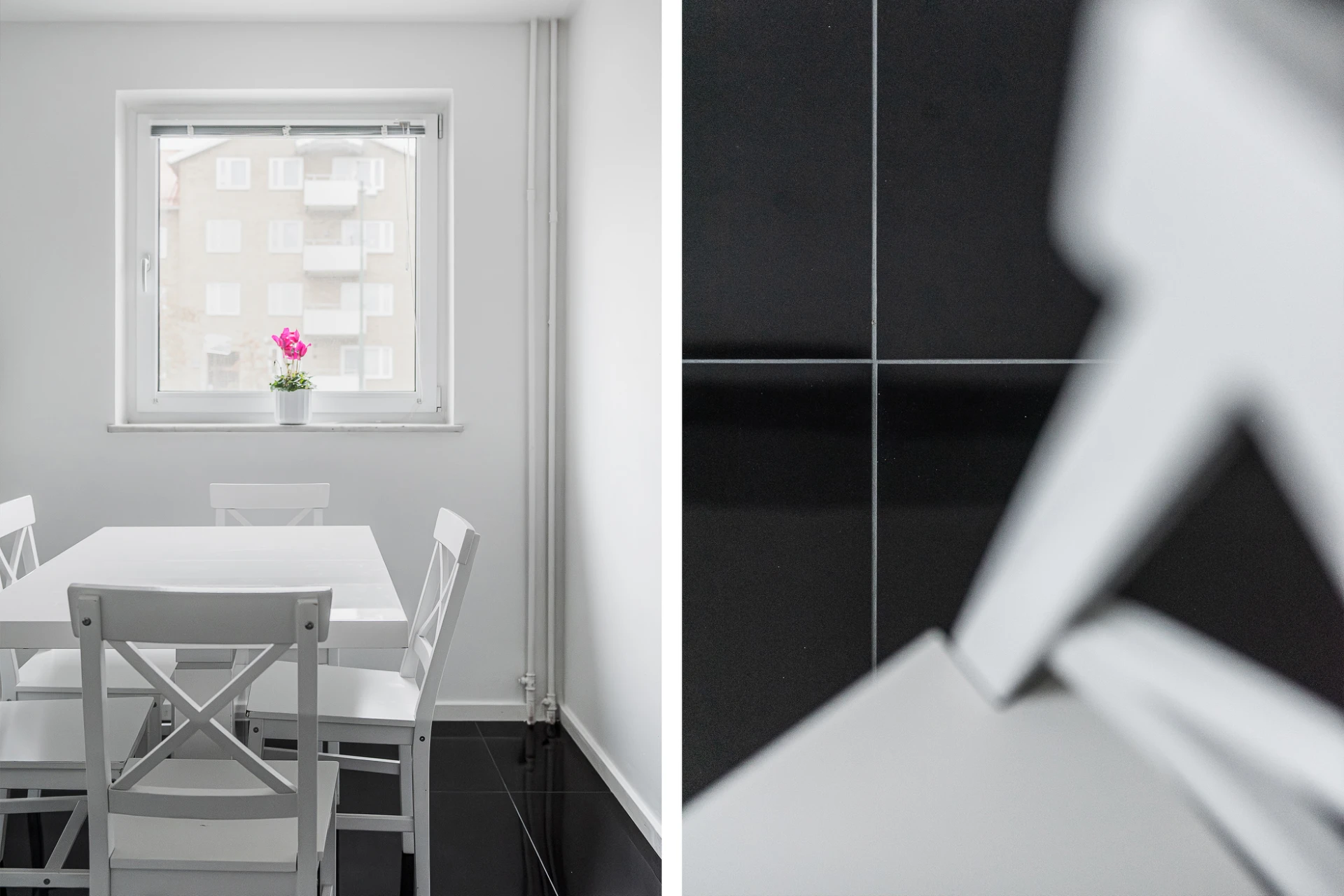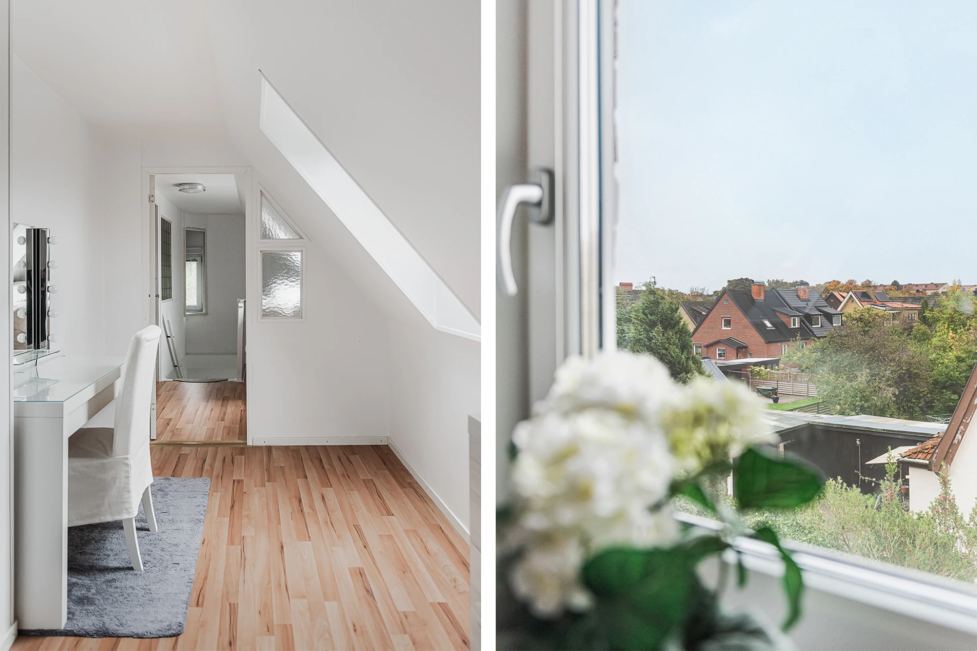 2023 byttes fönster till 3-glas premium med insektsnät som kan öppnas inåt och utåt. Renovering runt fönstren invändigt, uppsättning av persienner och plåt runt fönster utvändigt.