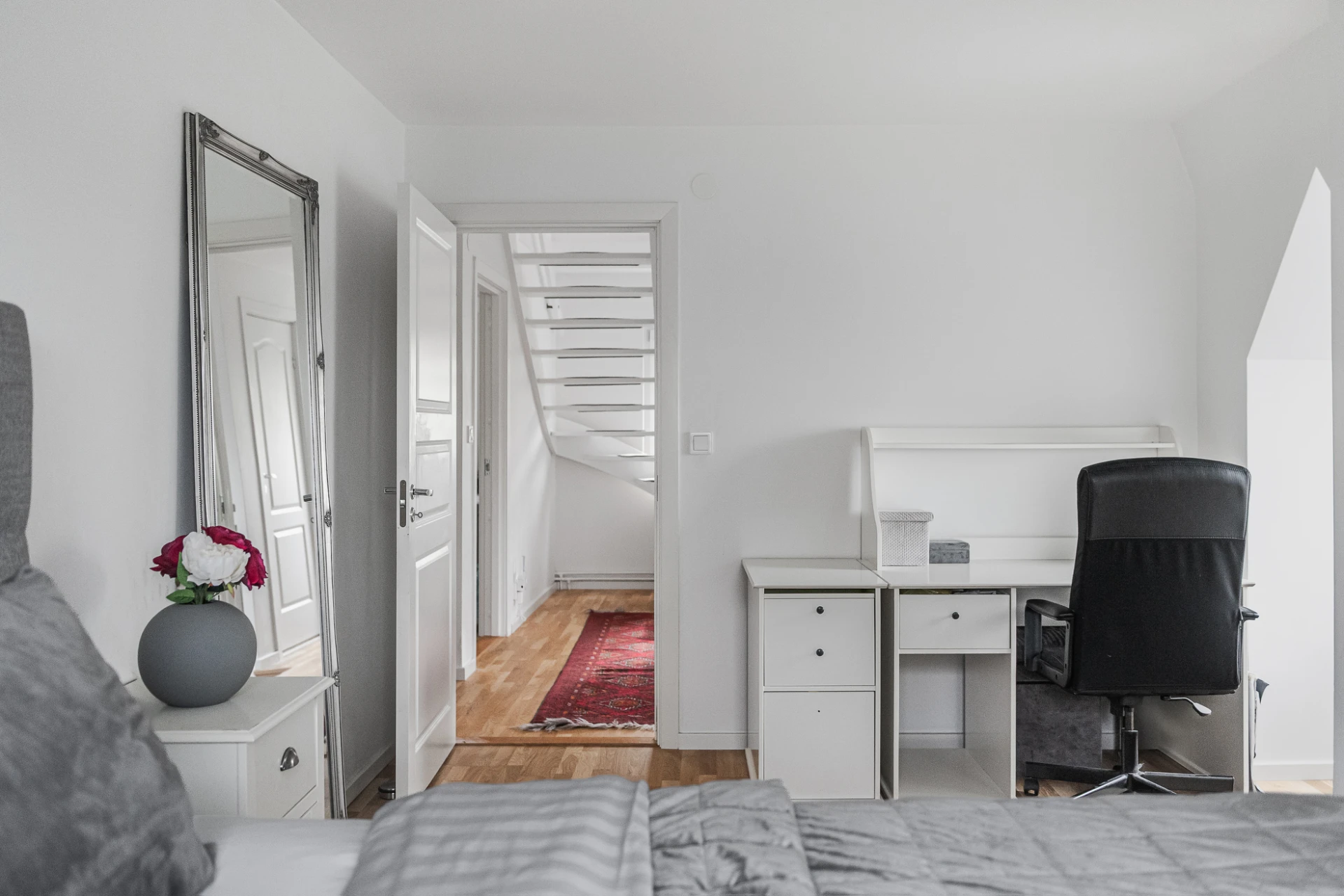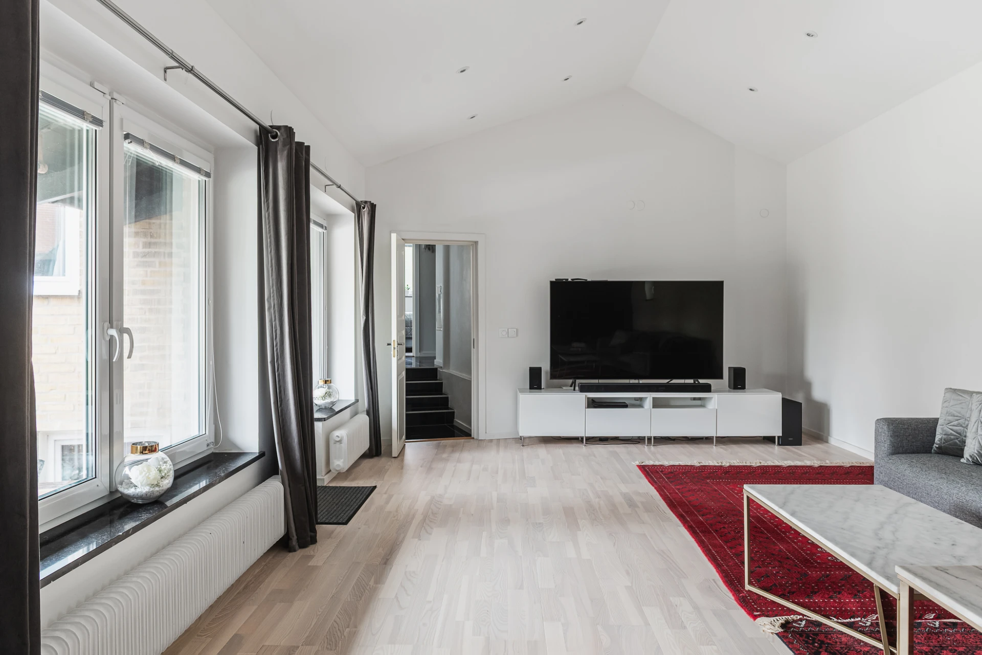 2017-2018 renoverades köket, golvvärme installerades i hall, badrum, kök och vardagsrum på våning 1, nytt elsystem och nya VVS rör installerades, planlösningen gjordes om med rivning av väggar, samtliga väggar spacklades och målades, platsbyggda garderober byggdes, nya ytterdörrar och innerdörrar samt dörrkarmar installerades, trappan renoverades invändigt, tak sänktes och spotlights installerades, ny klinker lades på våning 1, fiskbensparketten slipades på våning 1, nytt parkettgolv lades i vardagsrummet, nytt parkettgolv och betonggjutning genomfördes på våning 2, vind inreddes, två badrum renoverades, taket renoverades med brandsäkra spotlights och renovering av tegel, ny klinker lades i källare, badrum och tvättstuga renoverades i källaren, källaren putsades och målades, ny fjärrvärmecentral installerades, källarfönster byttes, larm installerades och nya 3-glas fönster installerades i vardagsrummet och altandörr byttes.