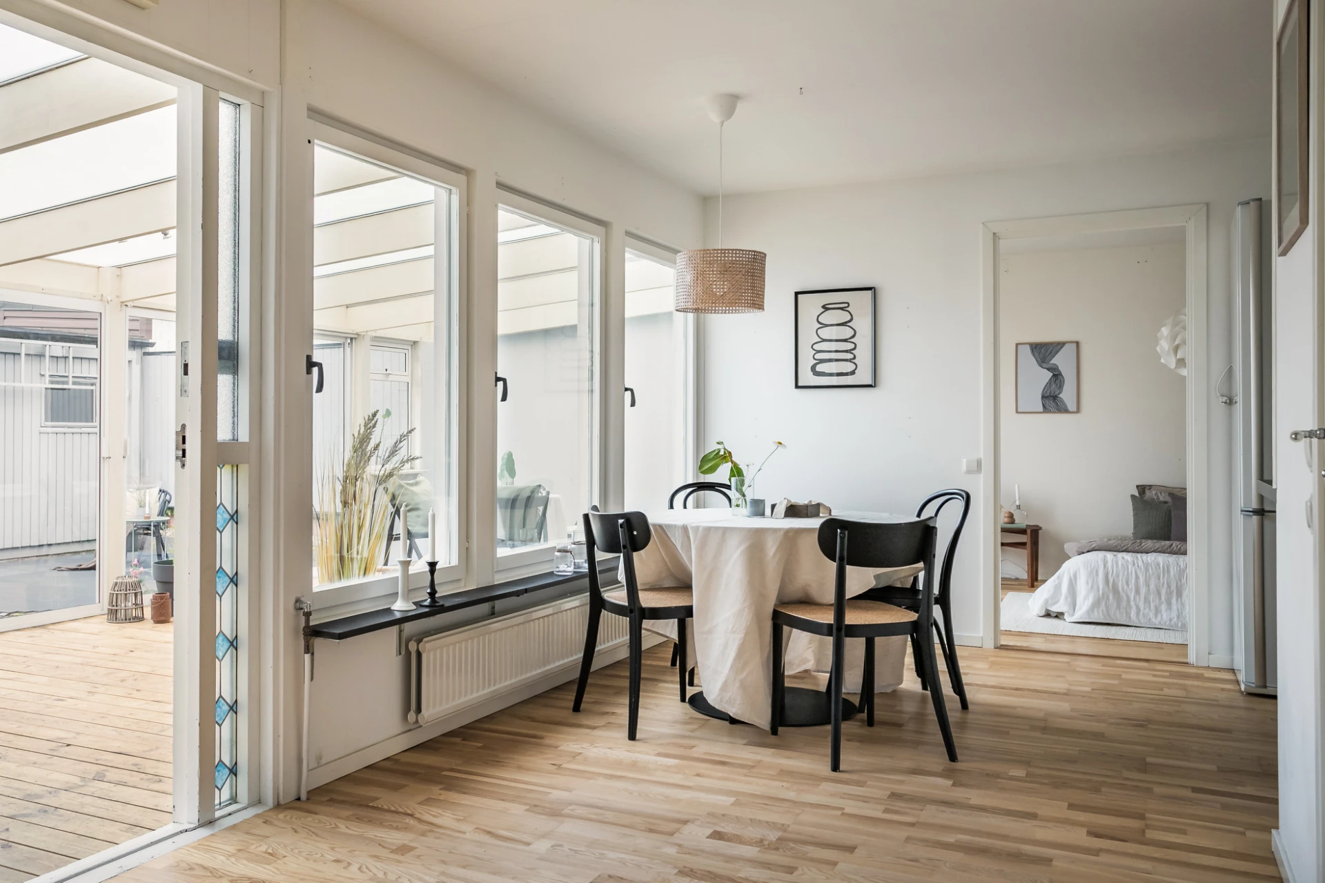 Välkommen till ett hem där varje detalj är genomtänkt och där såväl familjen som paret kommer att trivas från första stund. I ett otroligt barnvänligt område, fritt från biltrafik runt husen och med lekplatser precis runt knuten, hittar du detta stilfullt renoverade parhus med härligt ljusinsläpp och stilfulla materialval. Här erbjuds en ljus och harmonisk atmosfär tack vare de stora fönsterpartierna och den smakfulla interiören i ljusa, tidlösa toner. Husets hjärta är köket med matplats som övergår i ett stort och ljust uterum. Här skapas en naturlig samlingspunkt året runt - med plats för både loungehörna och matgrupp. Skjutdörrarna i glas leder ut till uteplatsen i västerläge, helt inhägnad och med fullständig integritet. Lägg därtill tre sovrum, ett luftigt vardagsrum, ett praktiskt separat tvättrum och badrum samt gäst-WC. Till huset hör garageplats och du har närhet till både förskola, goda kommunikationer och Svedala centrum – allt för en bekväm vardag.