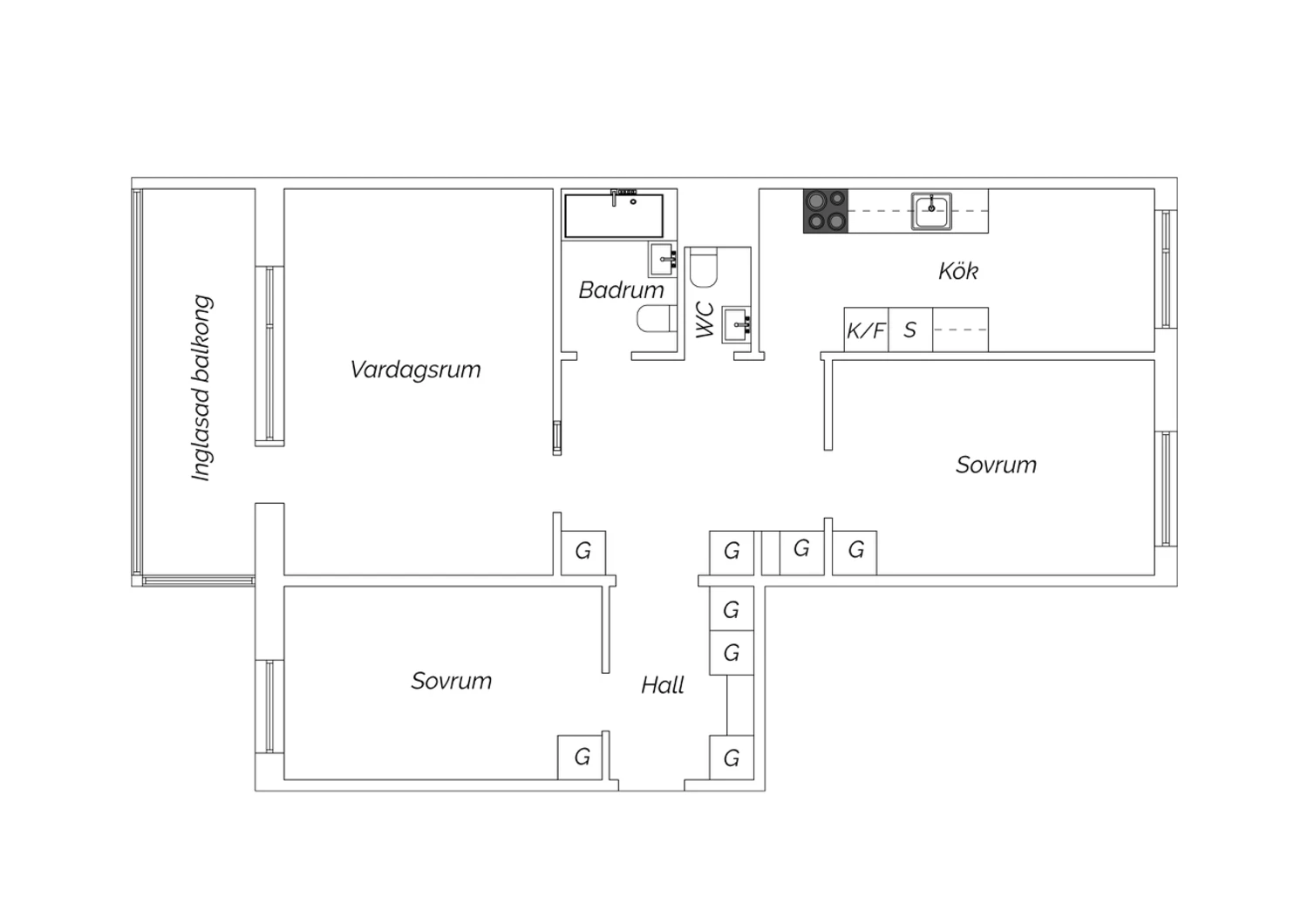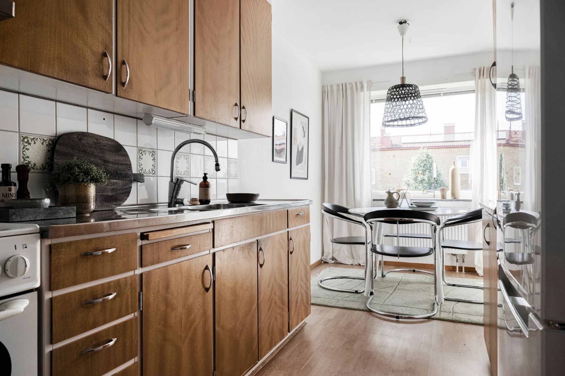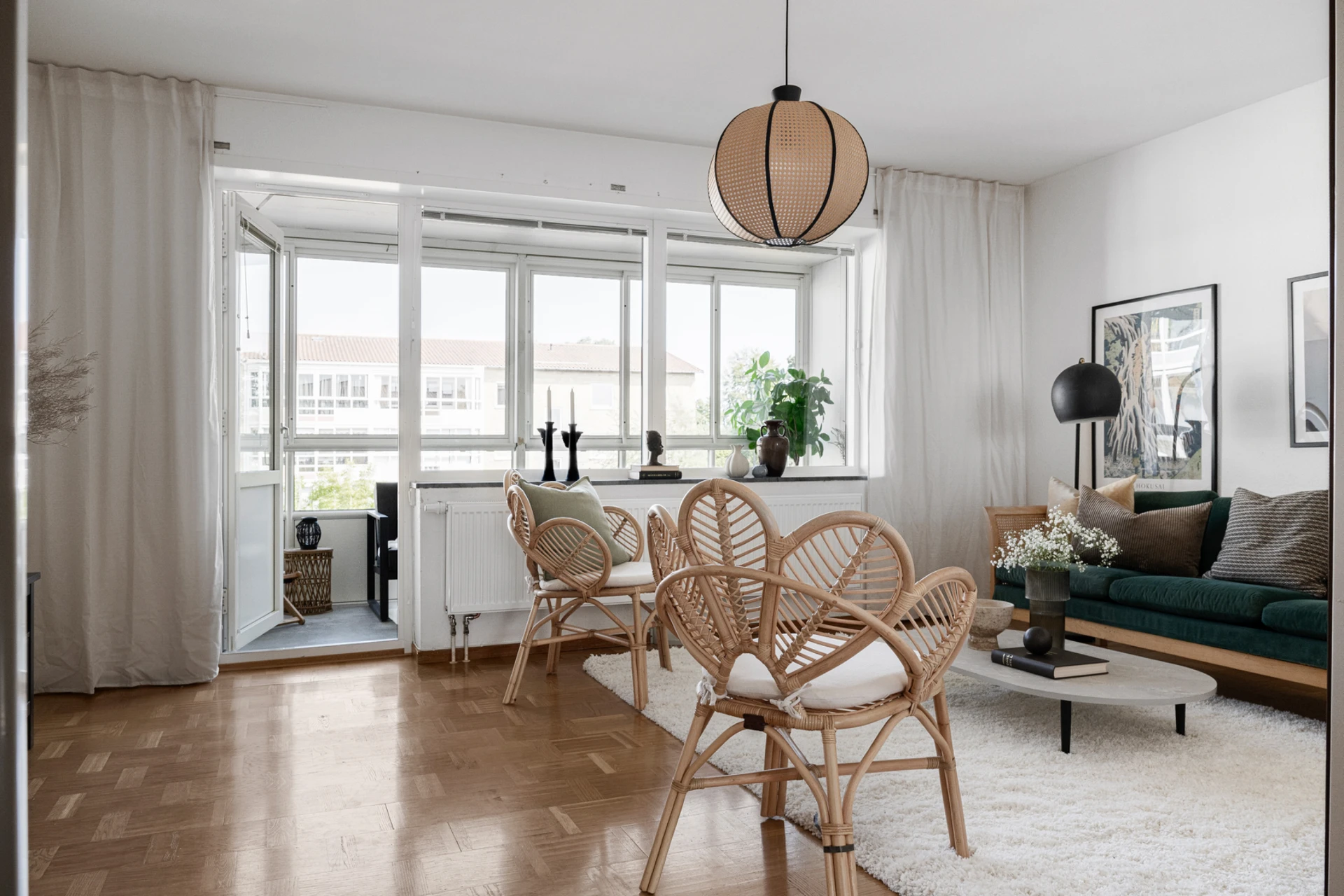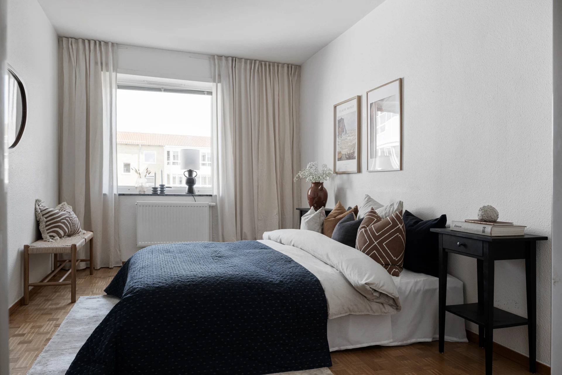 Bostaden har ett charmigt originalkök som bjuder på gott om arbetsyta och förvaring. Här kan du njuta av den tidstypiska känslan som den är eller uppdatera efter egna önskemål. De två sovrummen är väl tilltagna, vardagsrummet har härligt ljusinsläpp och utgång till den stora, inglasade balkongen i österläge där morgonkaffet kan avnjutas året runt. Gott om förvaring gör vardagen enkel, och det faktum att bostaden ligger på våning två av tre ger både insynsskydd och en härlig utsikt över innergården.