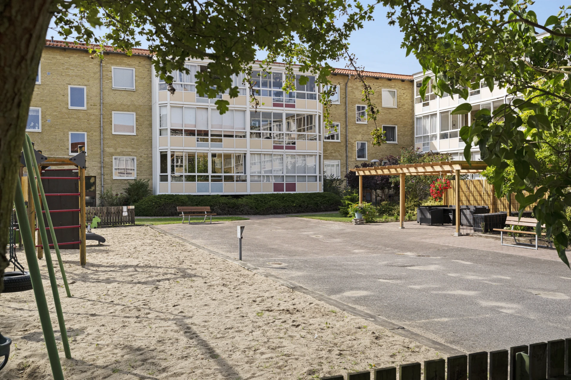 Föreningen har en trevlig grönskande innergård med tillgång till lekplats, grillmöjligheter och en boulebana.