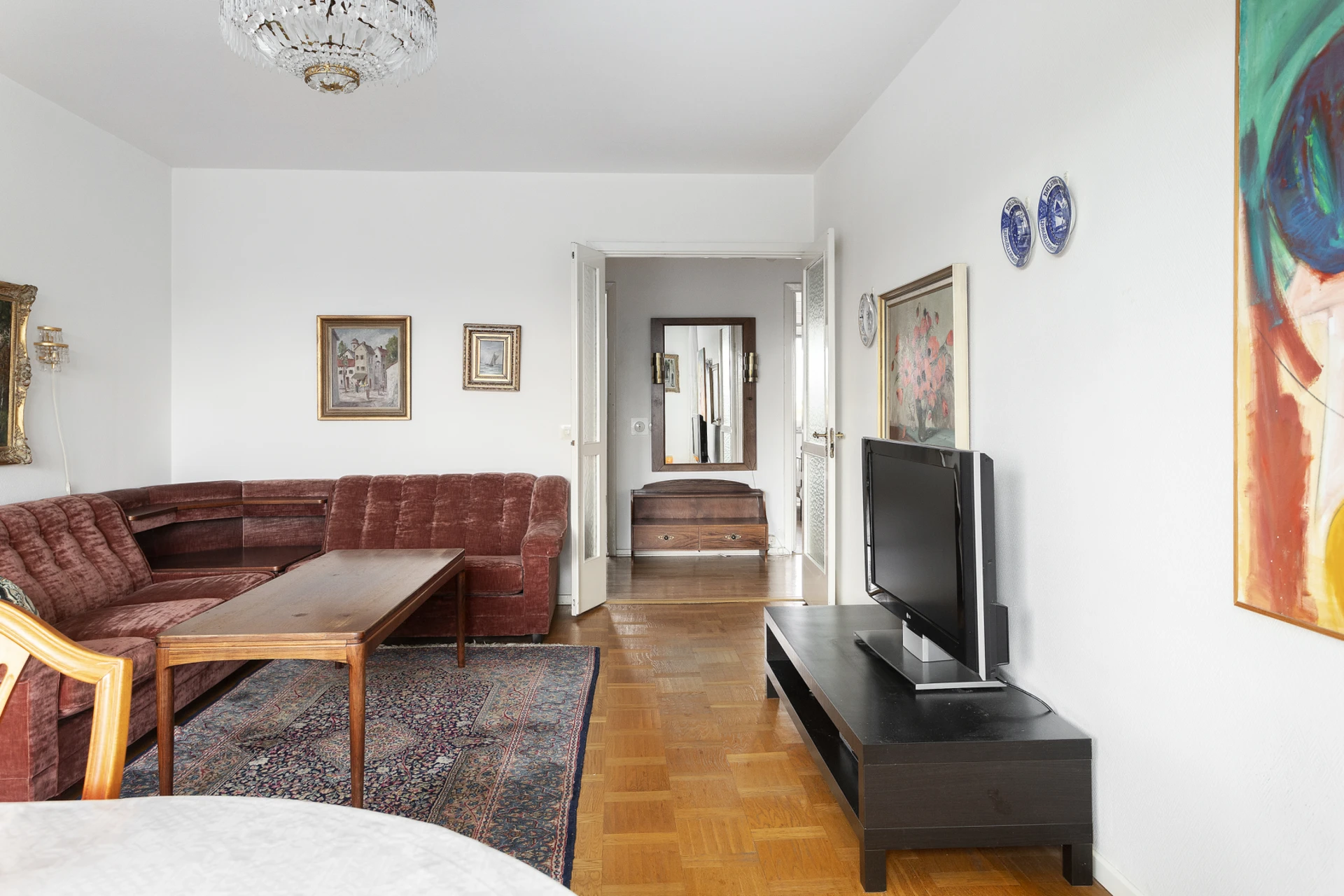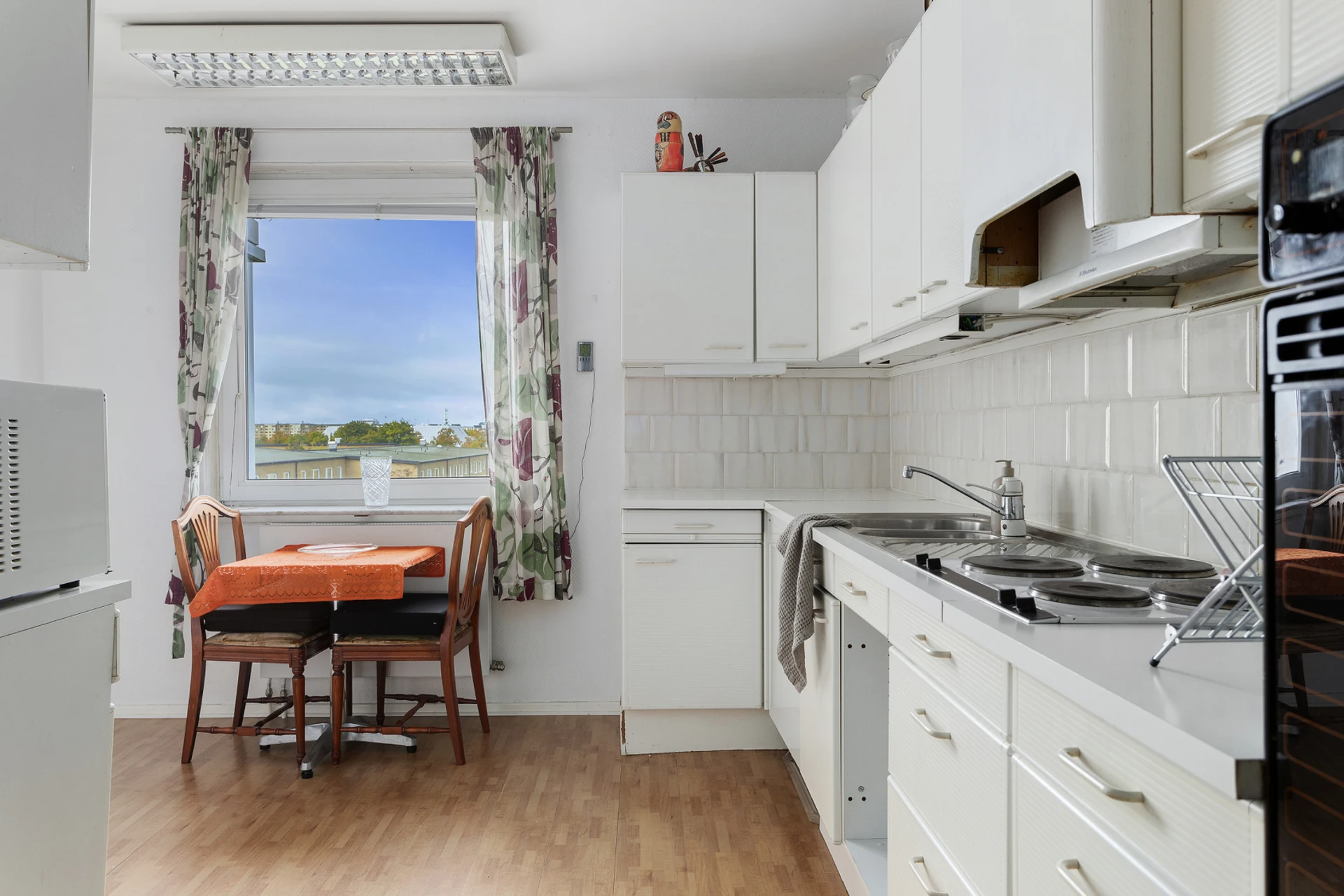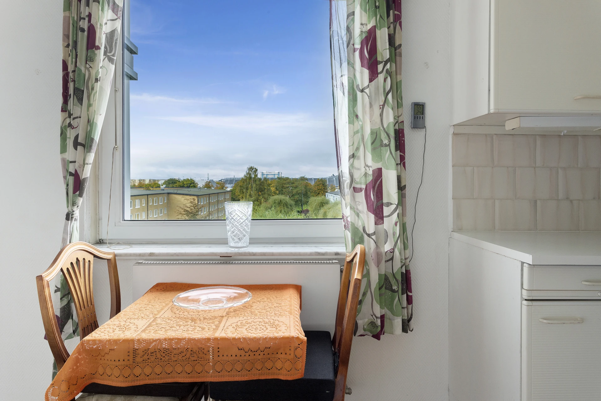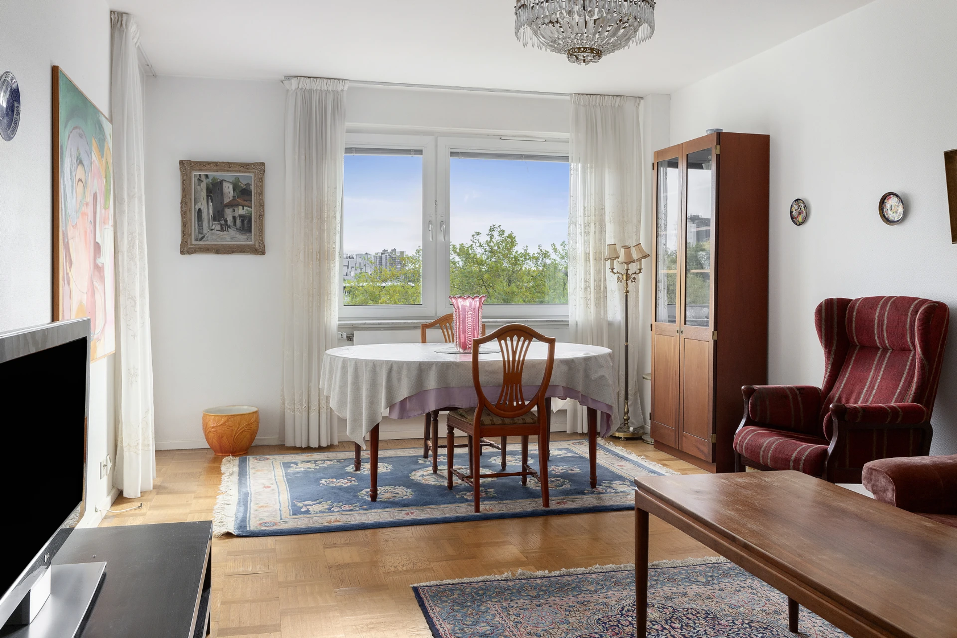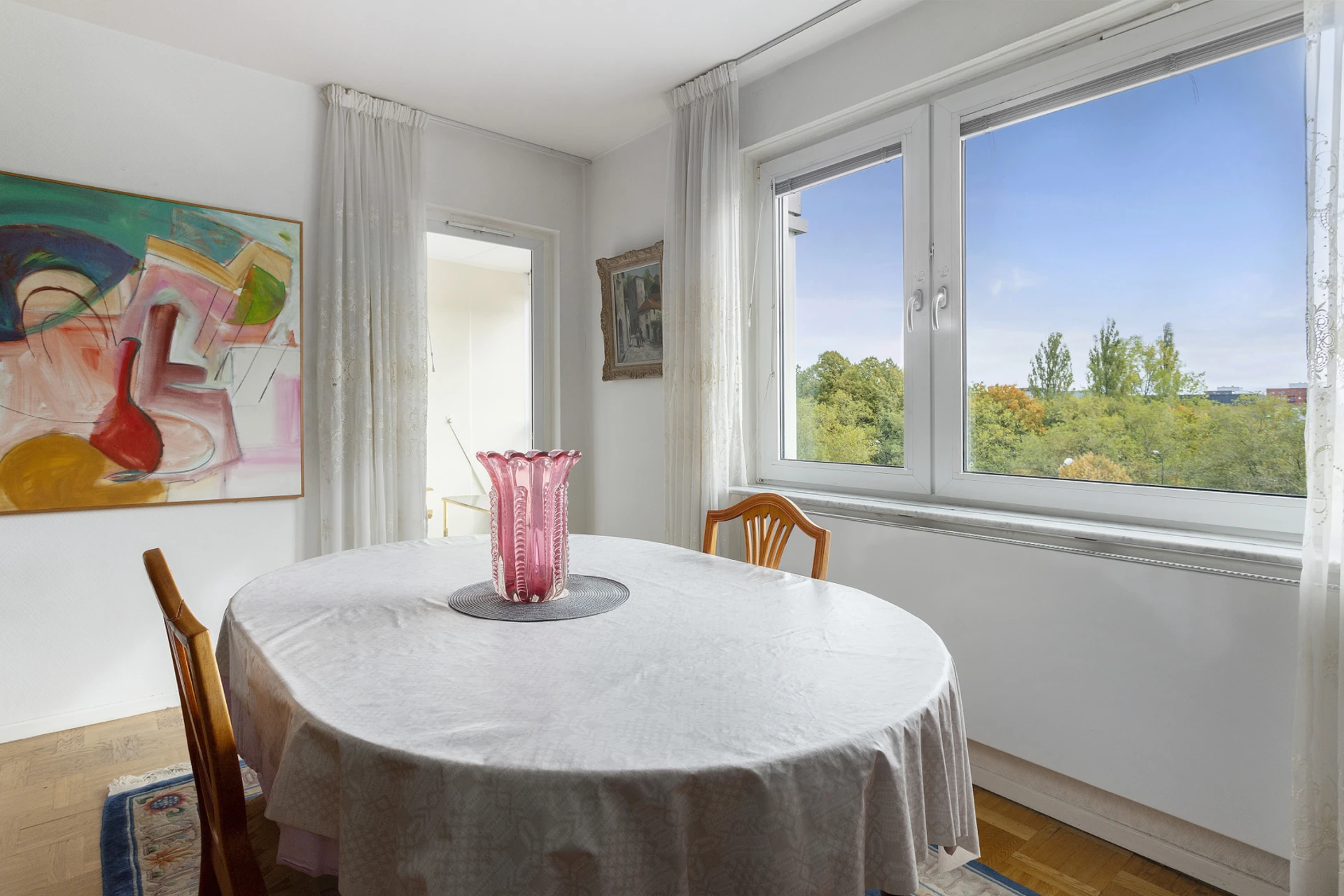 På femte våningen väntar denna ljusa 60-talslägenhet med fantastisk planlösning i genomgående format. Ytorna är både funktionella och tidstypiskt genomtänkta - en påminnelse om 60-talets arkitektur där ljus, luft och gedigna material stod i fokus. Här finns originaldetaljer bevarade, såsom parkettgolv, och en grundstruktur som erbjuder stora möjligheter för den som vill skapa sitt drömhem. Med varsam renovering kan denna bostad förvandlas till något alldeles extra samtidigt som den genuina charmen får leva vidare. Här flödar ljuset in från öster till väster och man får genomgående ett sällsynt vackert ljusspel som ger bostaden en härlig känsla av rymd och harmoni. Från vardagsrummet nås den inglasade balkongen i österläge, en naturlig förlängning av hemmet där man kan njuta av den luftiga vyn utan insyn.