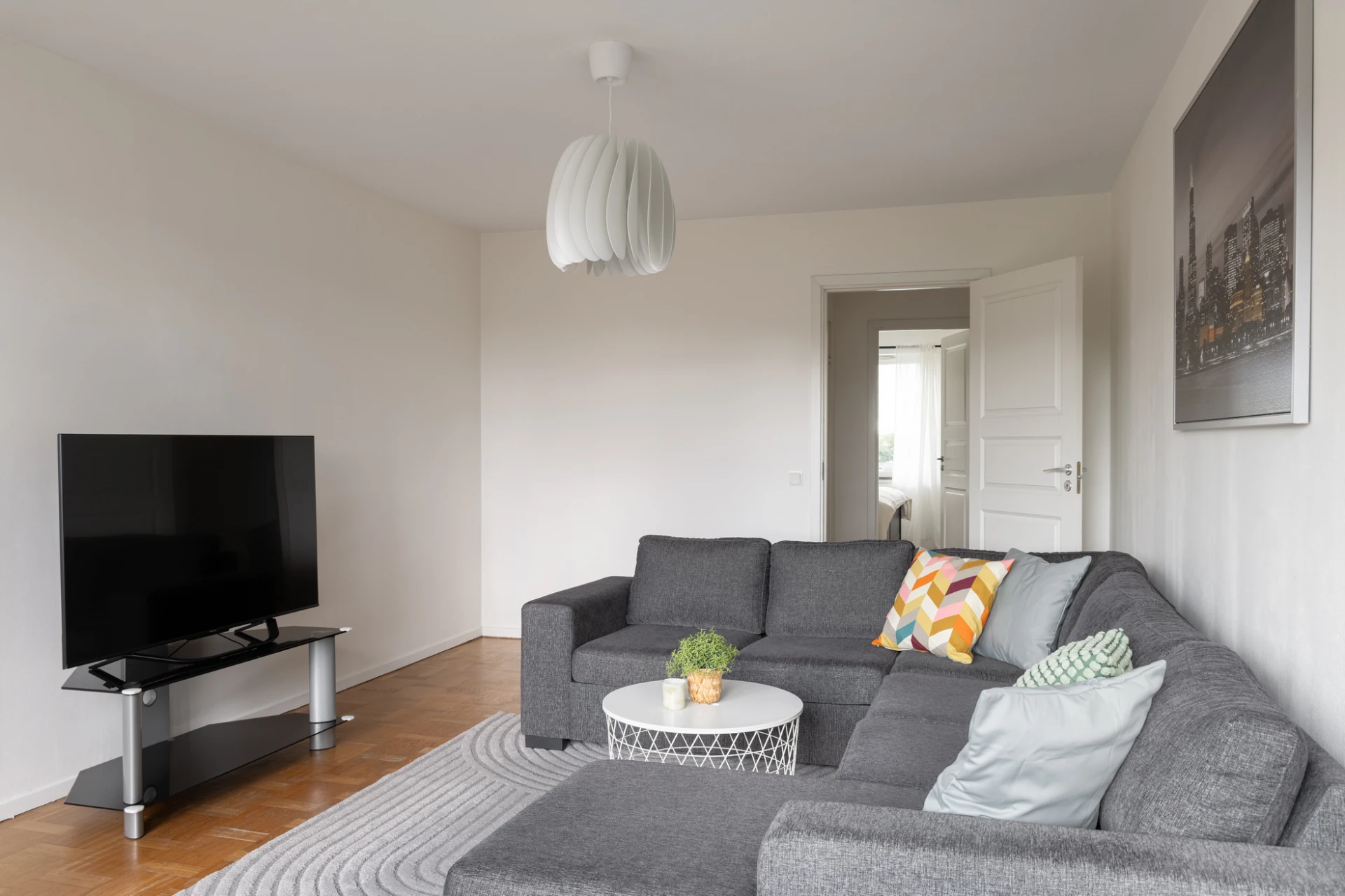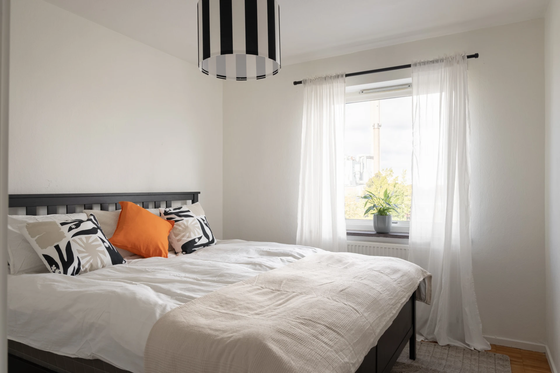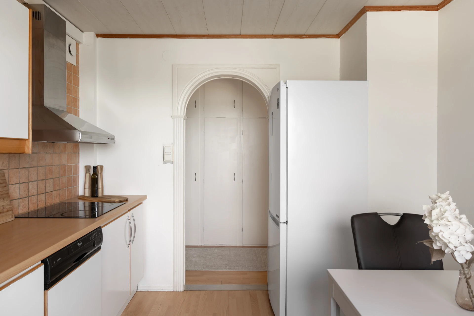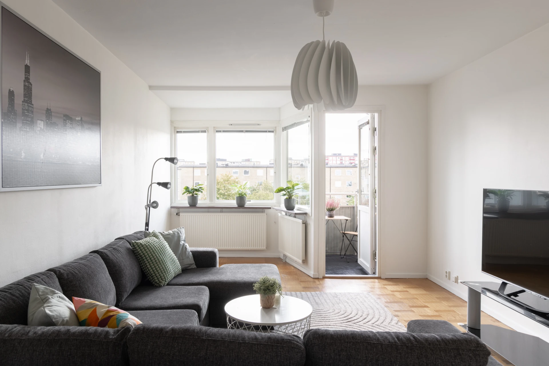 Högst upp i huset väntar denna trivsamma tvåa med en härligt luftig vy över omgivningarna! Här möts du av en välplanerad bostad med genomgående planlösning och nymålade ytskikt från 2025 som skapar en fräsch och inbjudande känsla. Vardagsrummet utmärks av de charmiga fönstren i vinkel som låter ljuset flöda in och ger rummet en luftig karaktär. Härifrån nås även balkongen i soligt sydostläge, en underbar plats att njuta av soluppgången, dagens första kaffekopp eller avkopplande stunder mot den lugna gården. I det rymliga köket kan kvällsmiddagarna avnjutas medan solen sänker sig över horisonten. Bostadens planlösning är genomtänkt in i minsta detalj vilket gör att varje kvadratmeter nyttjas på bästa sätt och förvaringen är väl omhändertagen med praktiska förvaringslösningar i hallen som gör det enkelt att hålla ordning. Utanför porten väntar föreningens grönskande och helt inhägnade gård och på gångavstånd finns Mobilia köpcentrum med all tänkbar shopping och service. Varmt välkommen hem!