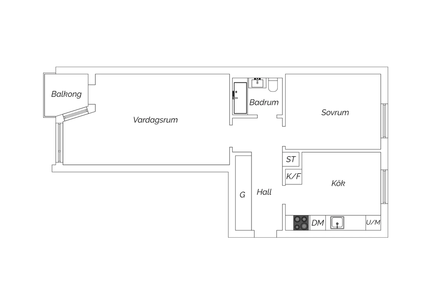 Storlek: 2 rum och kök, 56,5 kvm boarea