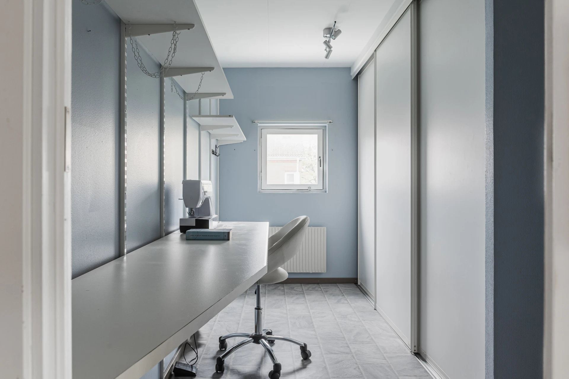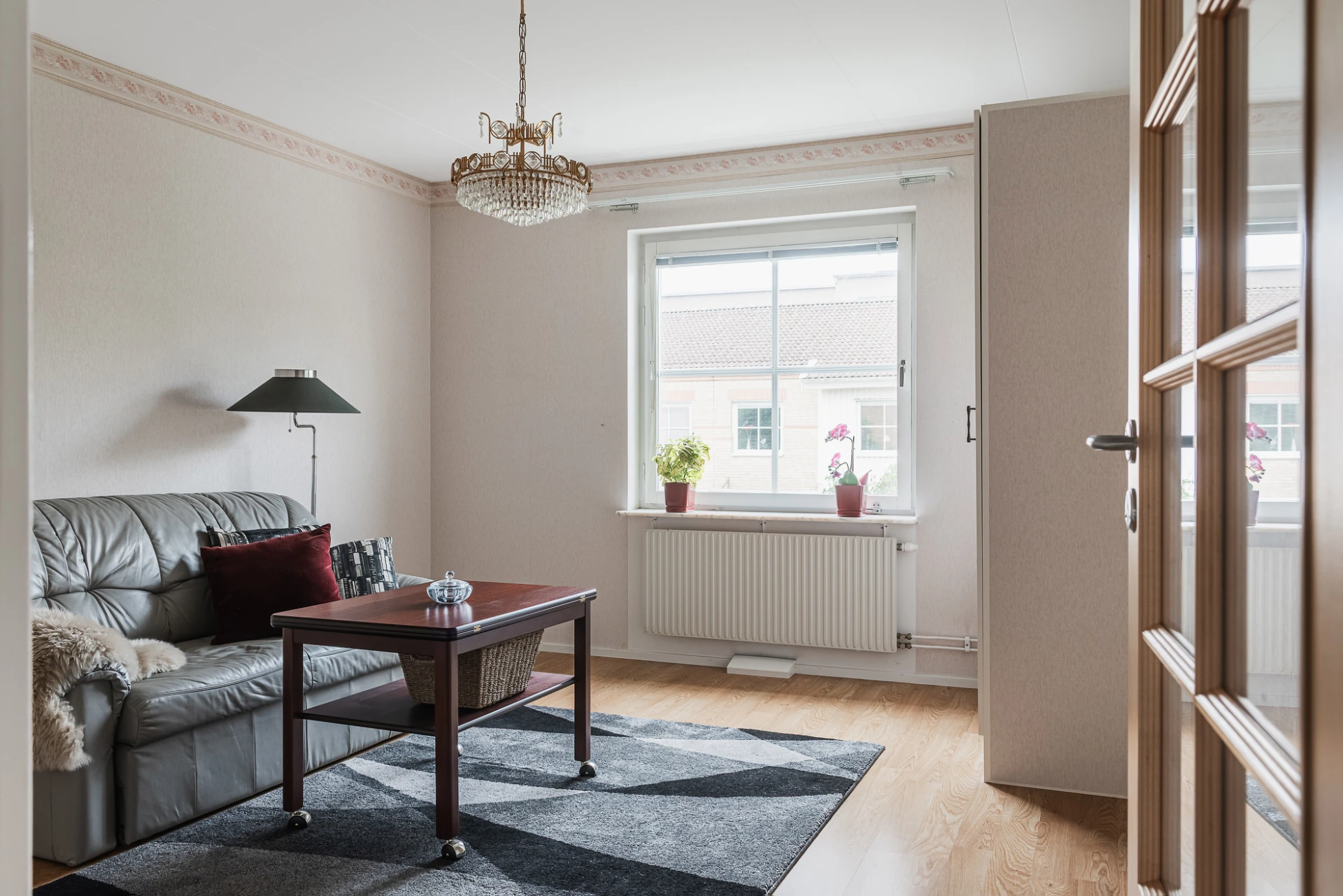 Enligt utdrag ur lägenhetsförteckningen är lägenheten registrerad som en 4 ROK. Säljaren har använt halvan som ett hobbyutrymme.