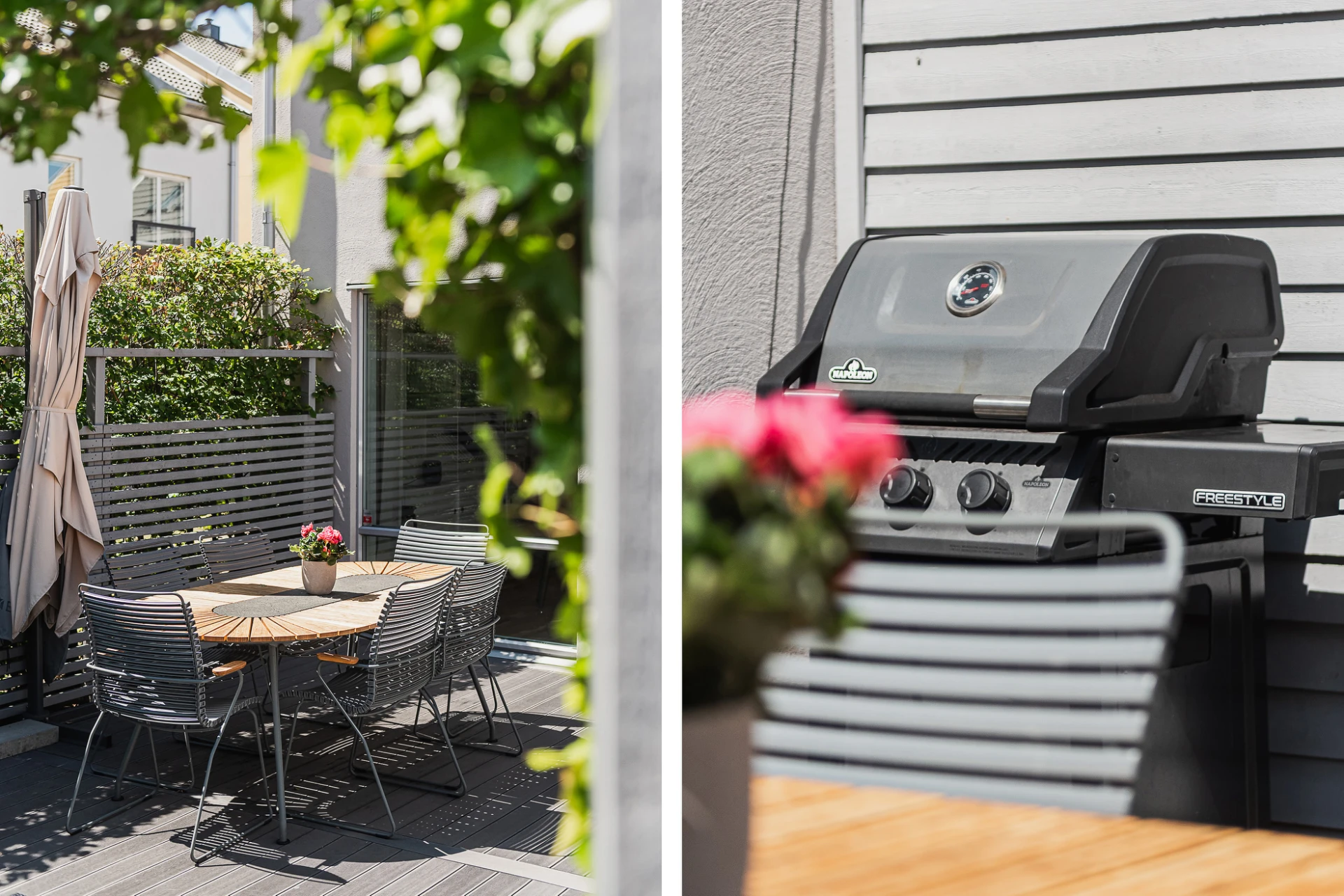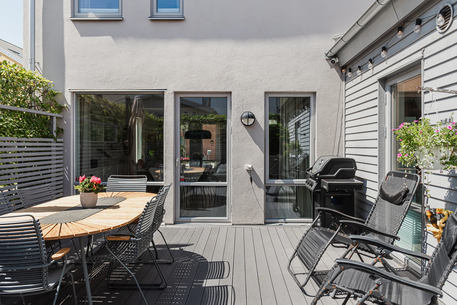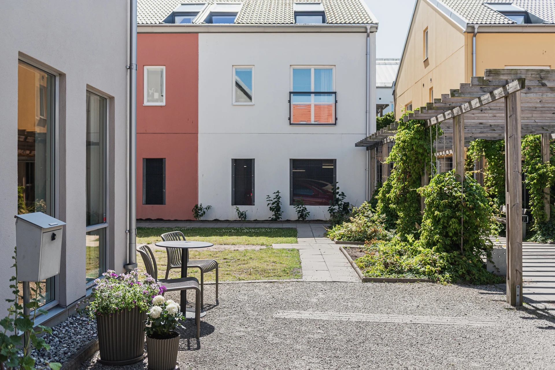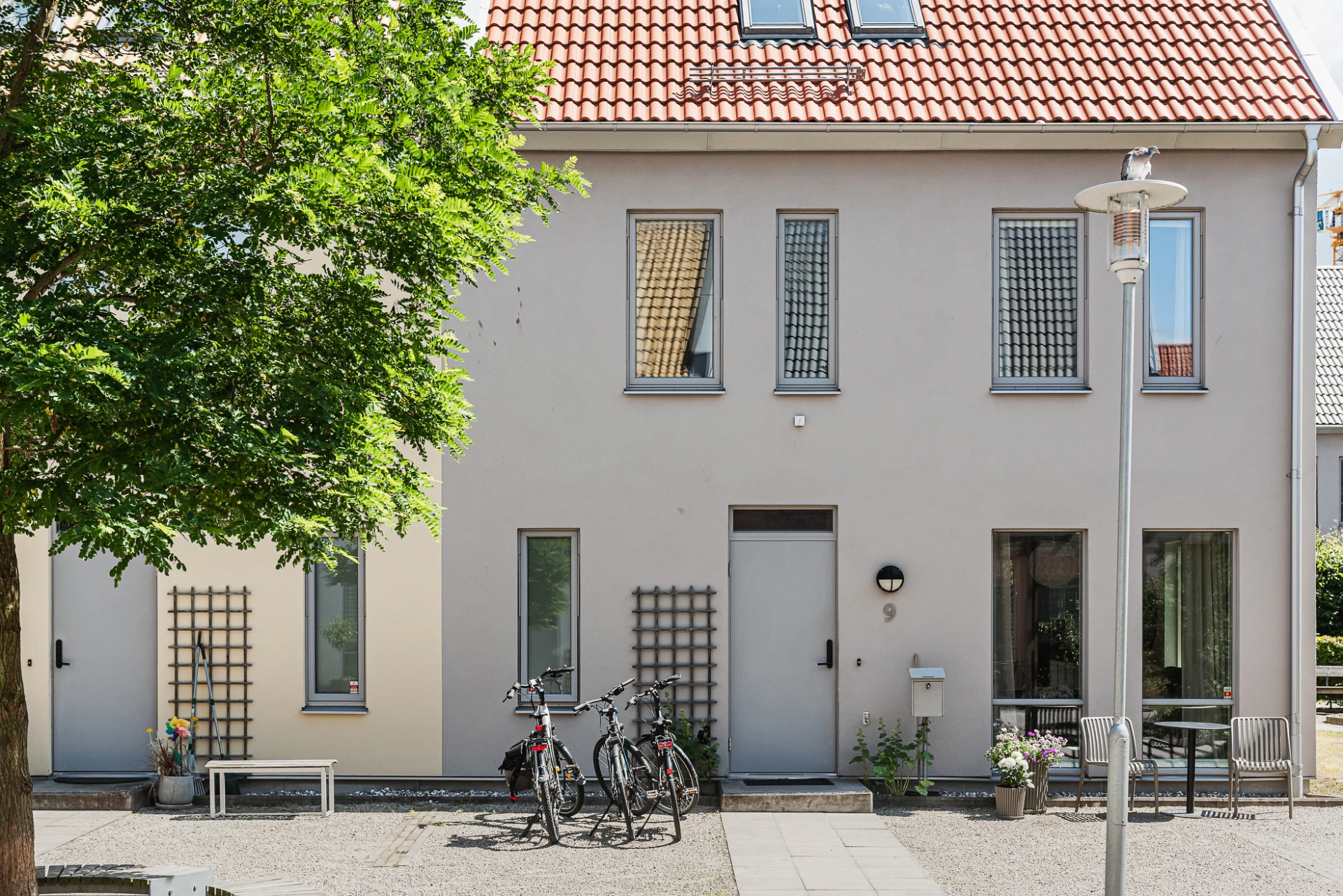 Nuvarande ägare disponerar ett förråd som finns under trappan på första våningen samt ett förråd om ca 5 kvm på uteplatsen.