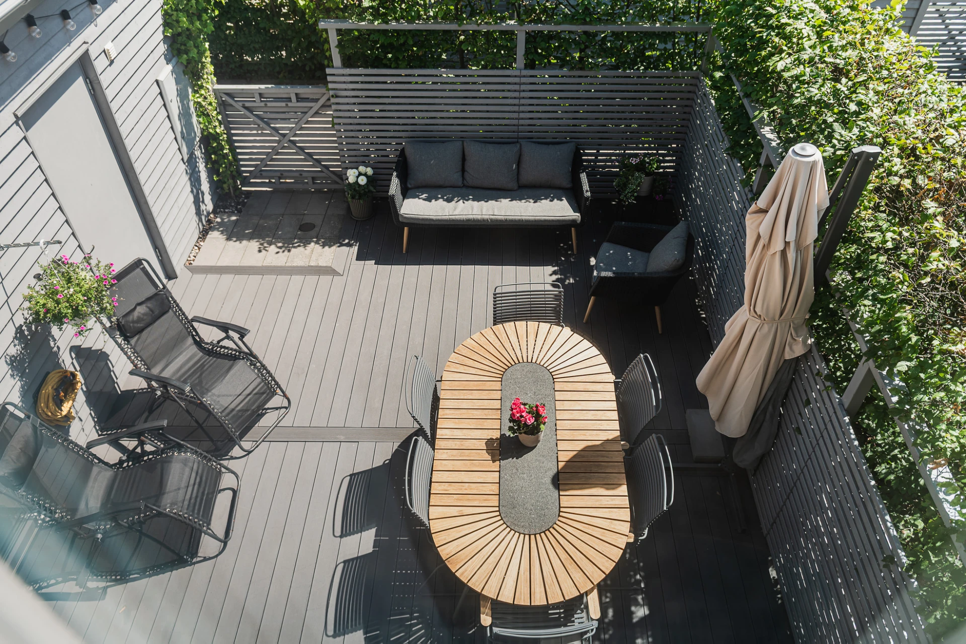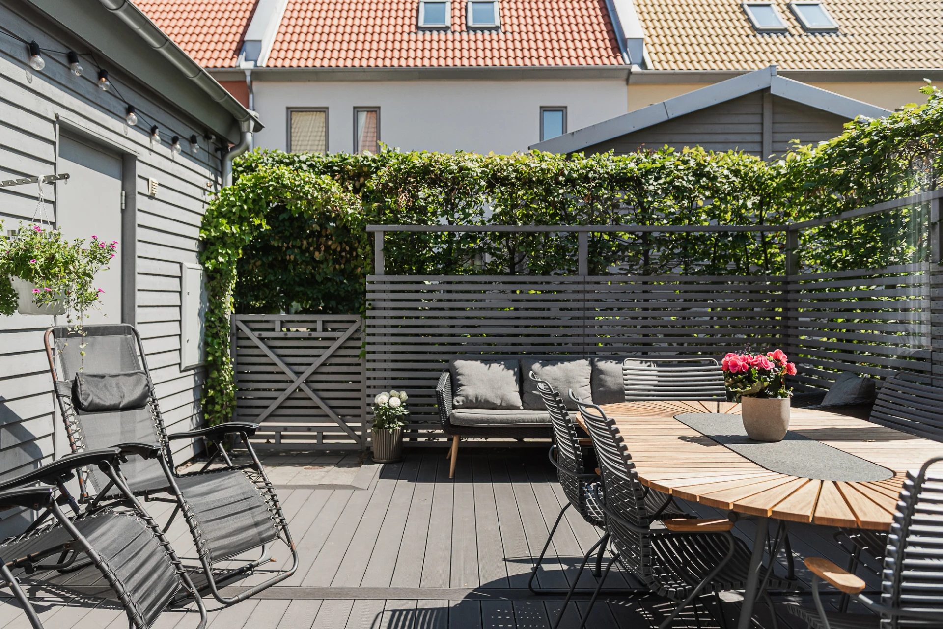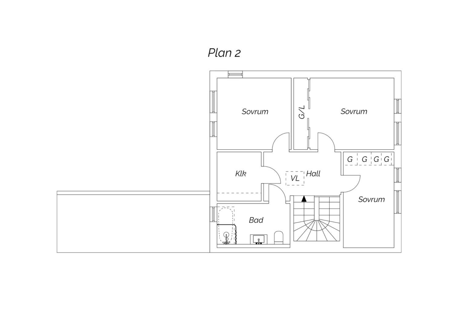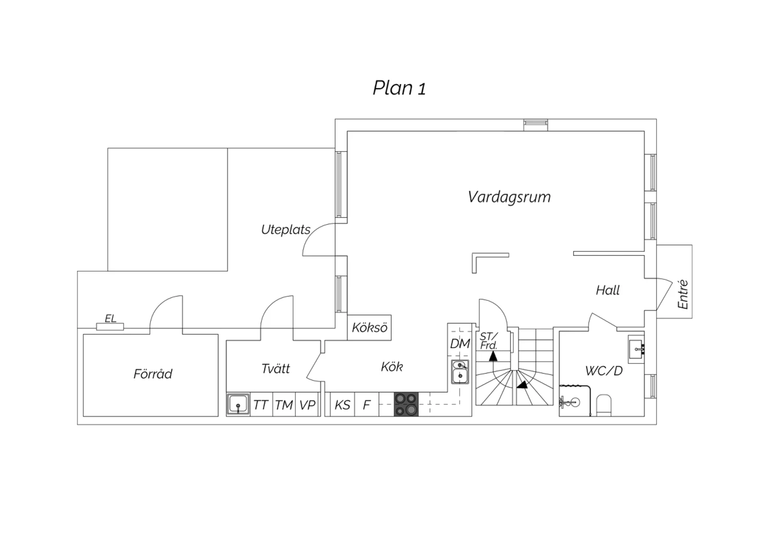 Nuvarande ägare disponerar ett förråd som finns under trappan på första våningen samt ett förråd om ca 5 kvm på uteplatsen.