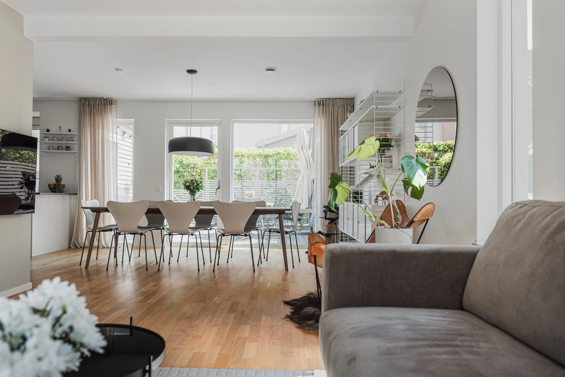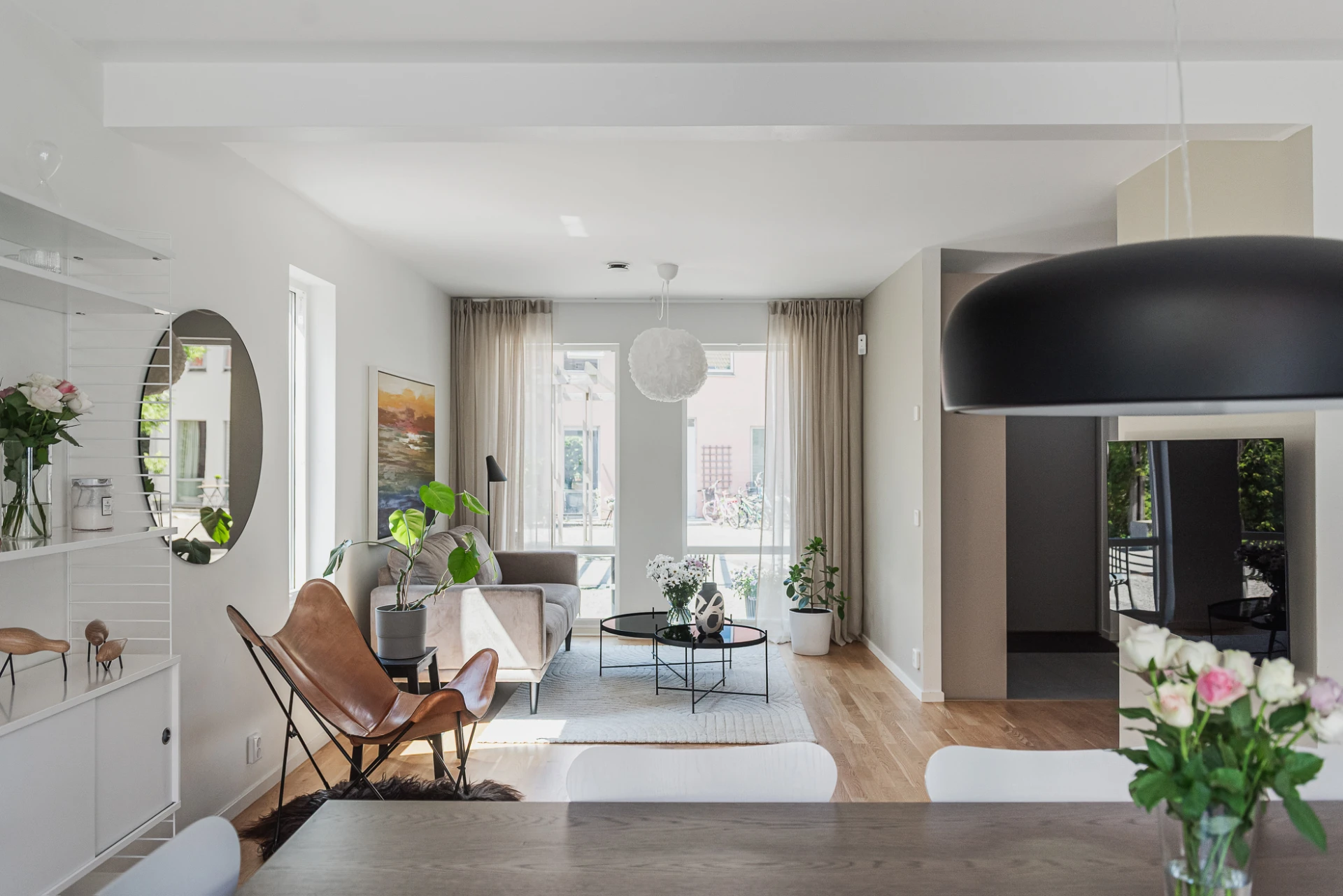 Bostaden är registrerad som 114 kvm och 4 rum och kök enligt föreningen. Disponeras som 5 rum och kök och cirka 148 kvm i dagsläget.