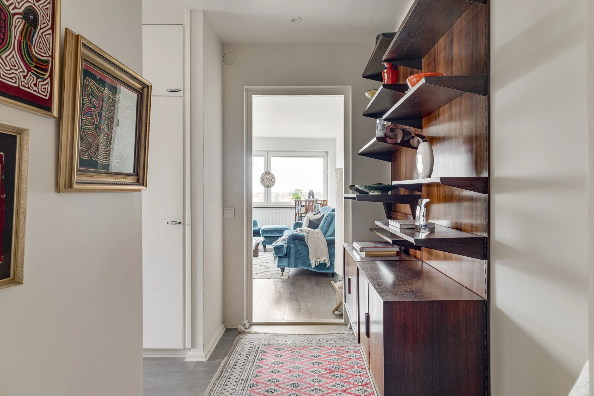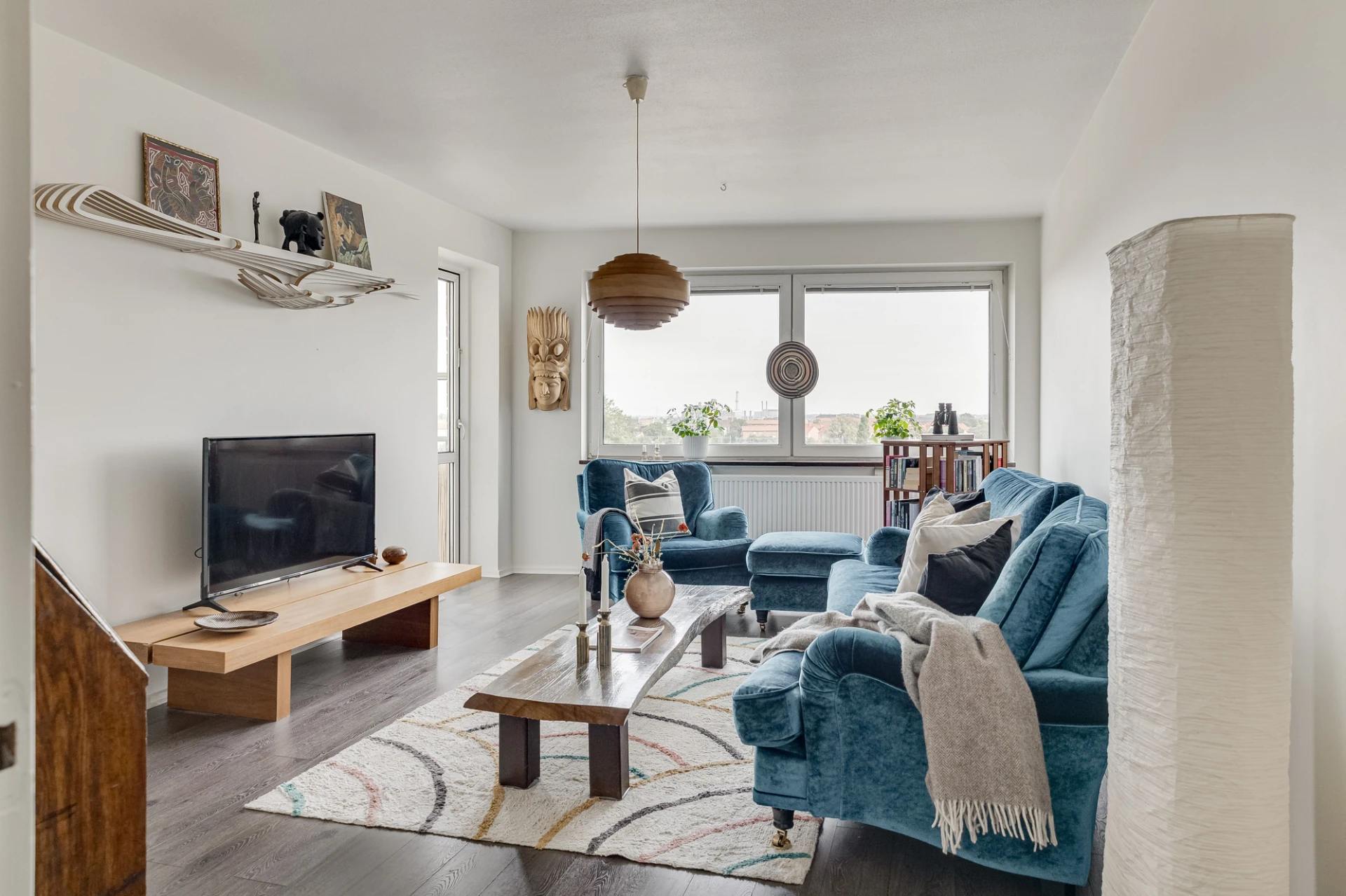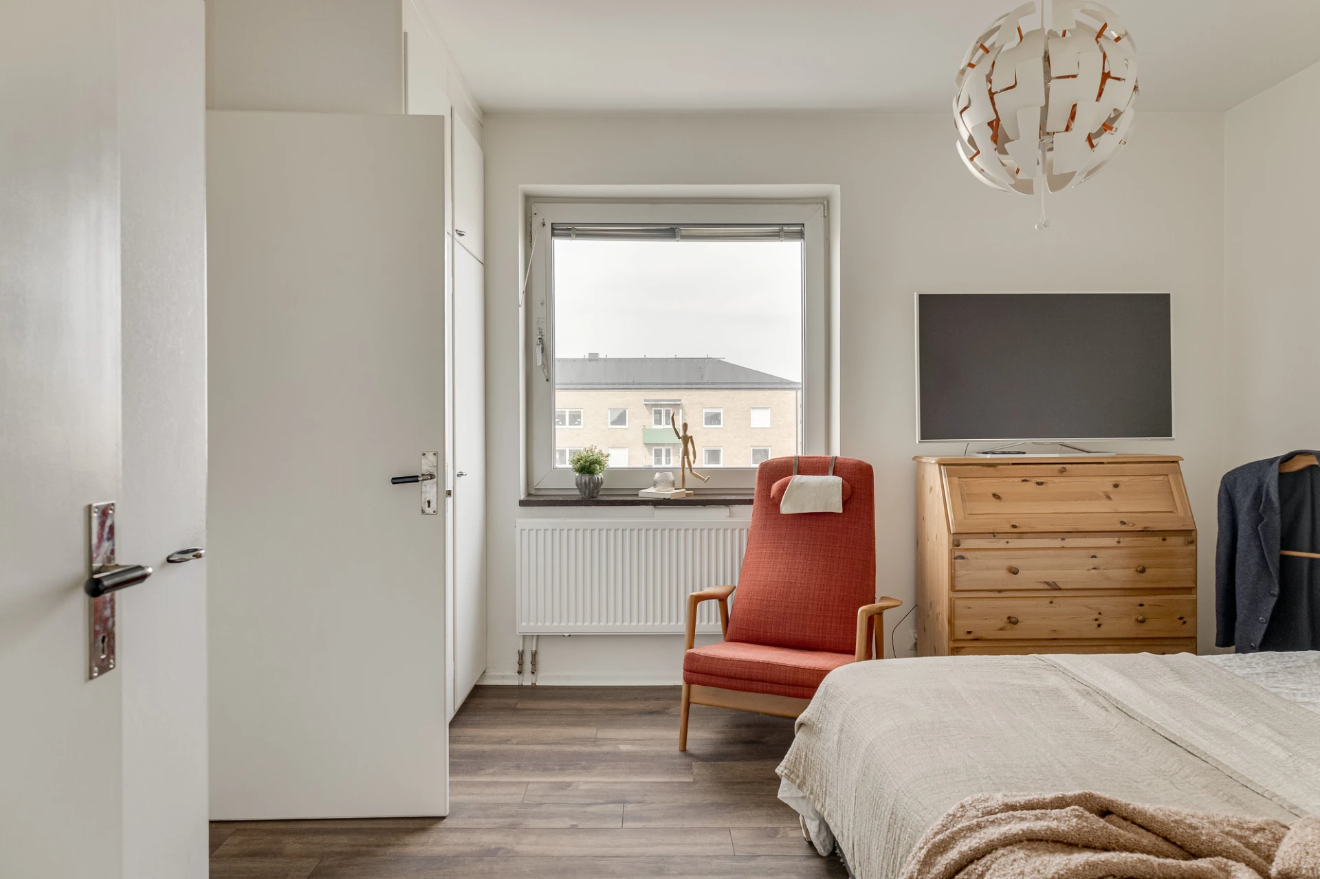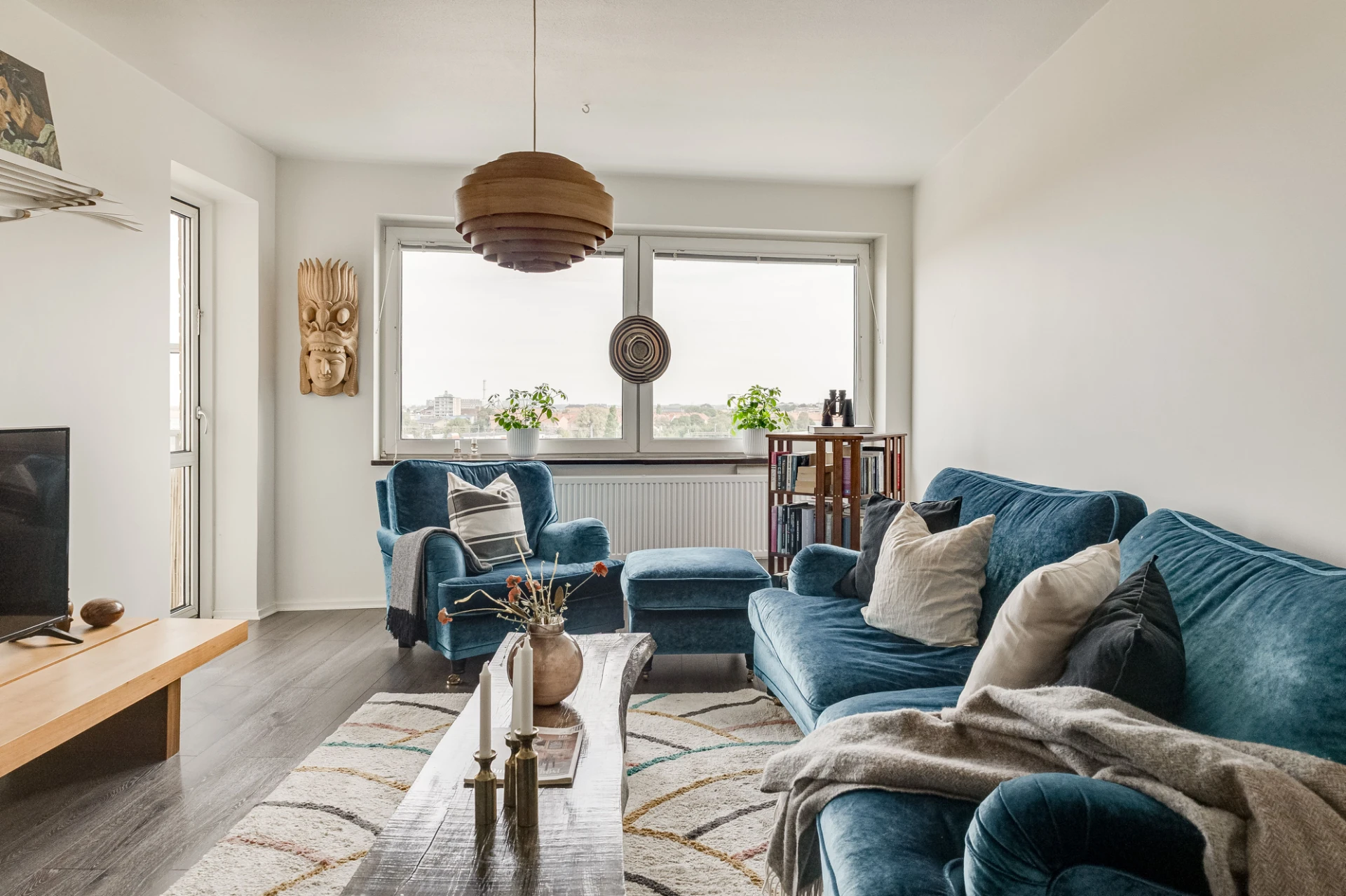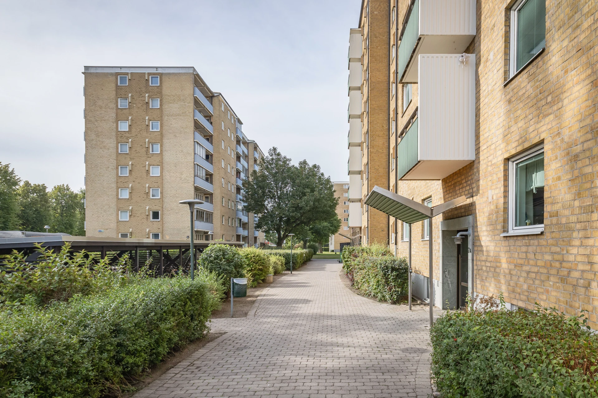 På våning 8 och med ett eftertraktat hörnläge samt en underbar utsikt väntar ett hem som förenar komfort med känsla. Här bjuds du på en ljuvlig vy som sträcker sig långt över omgivningarna och kväll efter kväll kan du njuta av magiska solnedgångar direkt från balkongen. Den rundgående planlösningen gör att bostaden känns både rymlig och välkomnande, här samsas ett generöst vardagsrum med ett stort kök som erbjuder plats för både matlagning och gemensamma middagar. Köket är dessutom renoverat med omsorg och smakfulla detaljer där det marockanska kaklet blir en vacker accent. Utöver det har vi ett rofyllt sovrum, ett helkaklat badrum som är förberett för tvättmaskin och generösa förvaringsmöjligheter som tack vare sina platsbyggda lösningar både är praktiska och snygga.