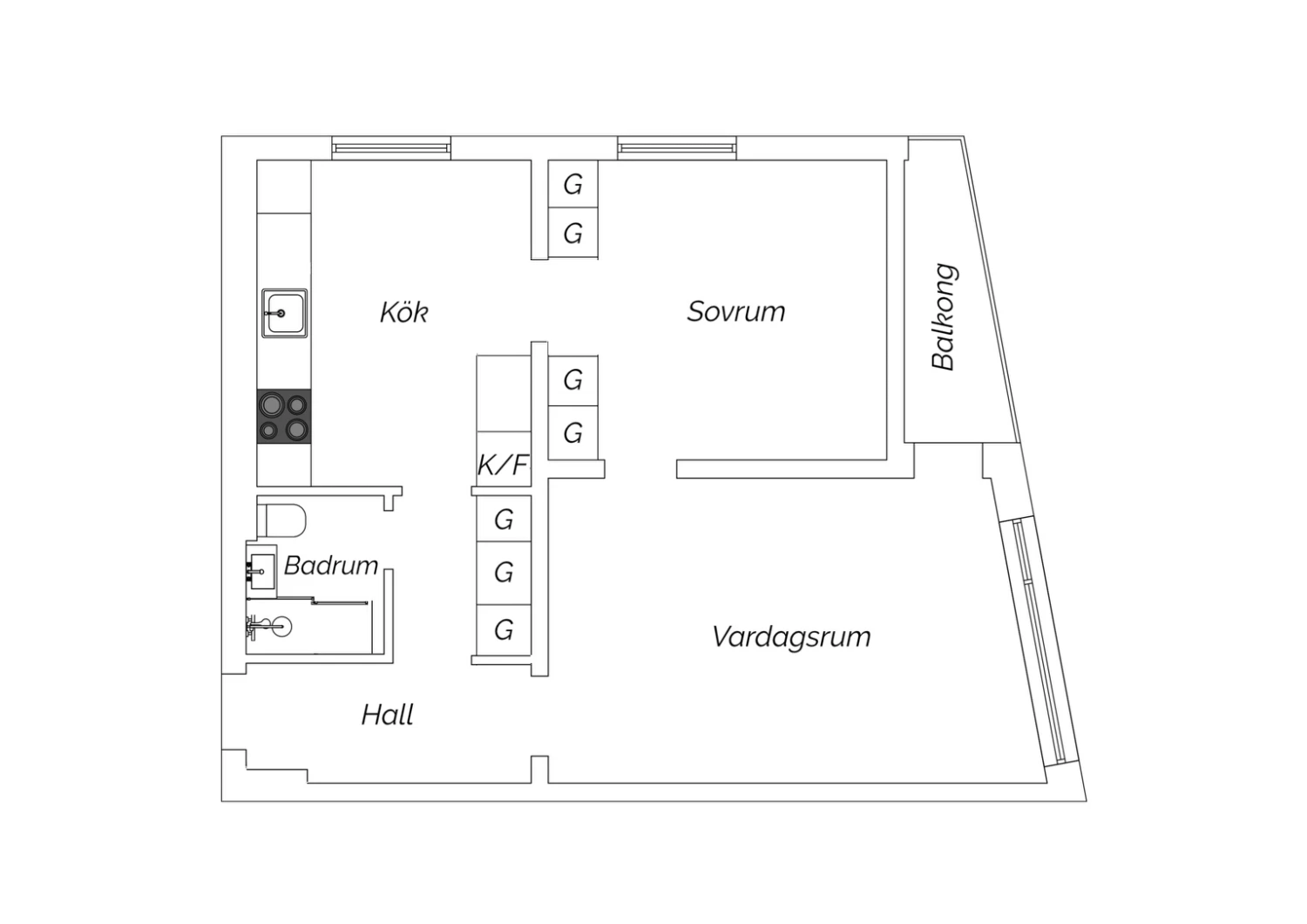Storlek: 2 rum och kök, 59,5 kvm boarea