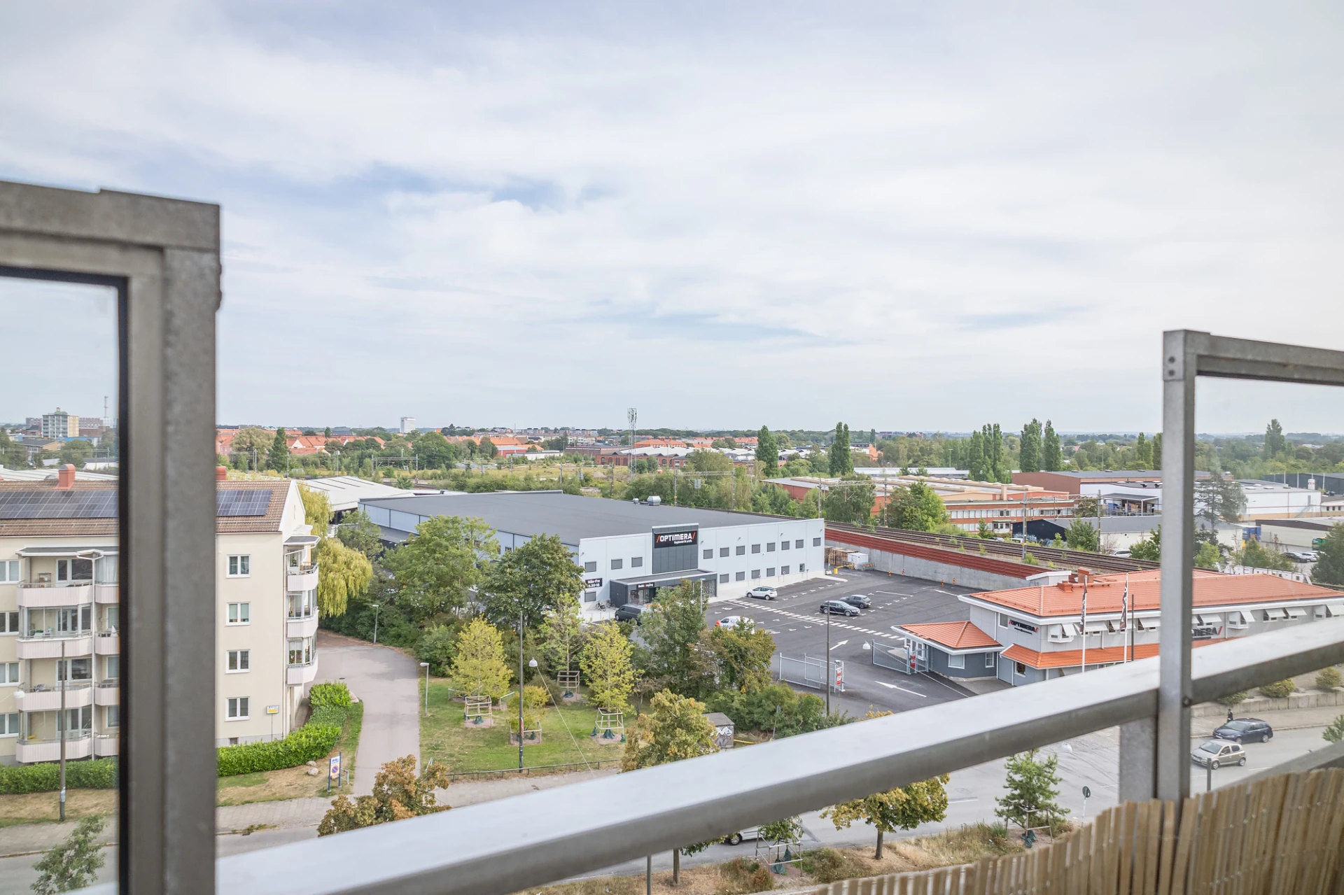 Fin hörntvåa med balkong & milsvid vy högst upp i huset