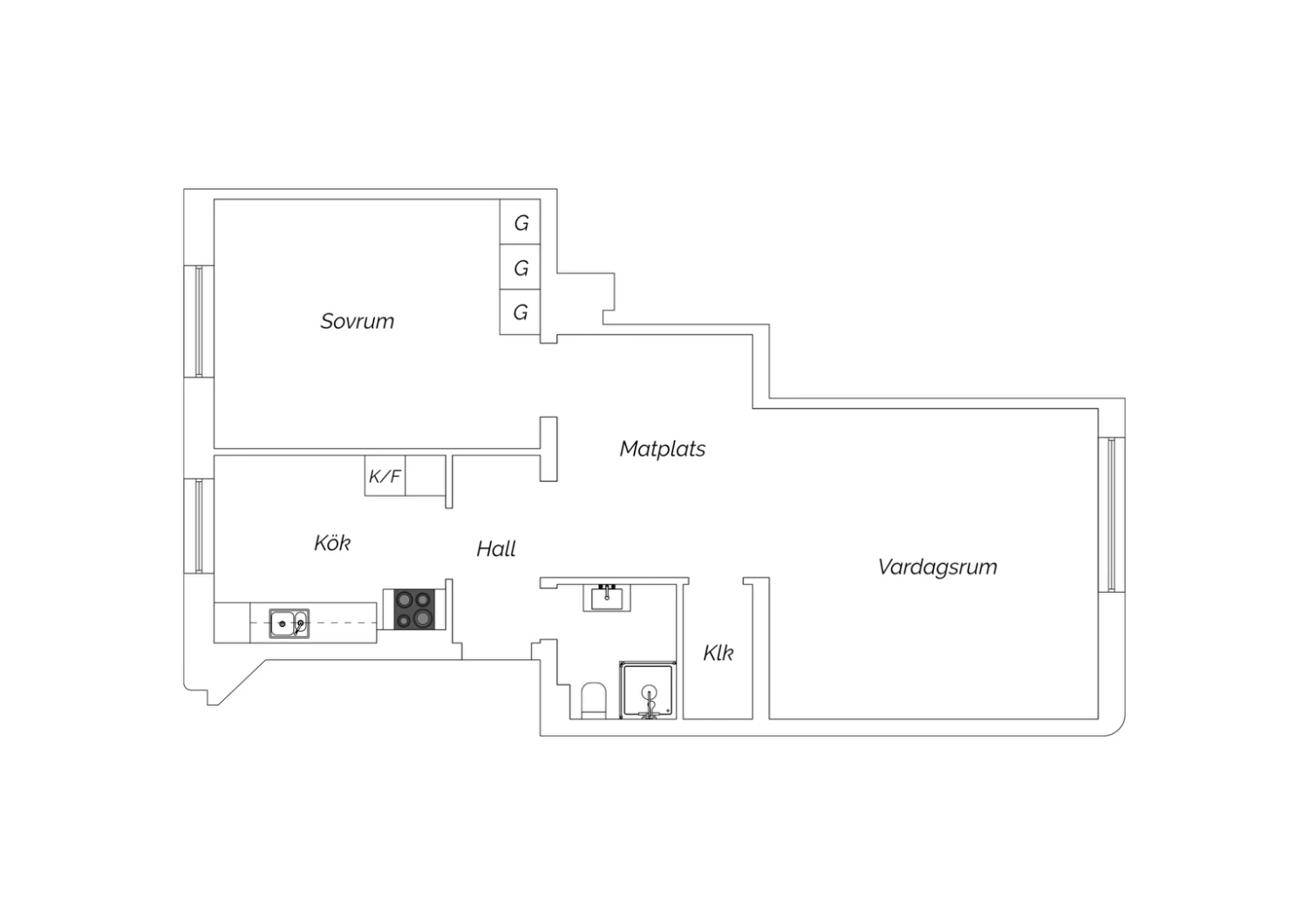 2 rum och kök