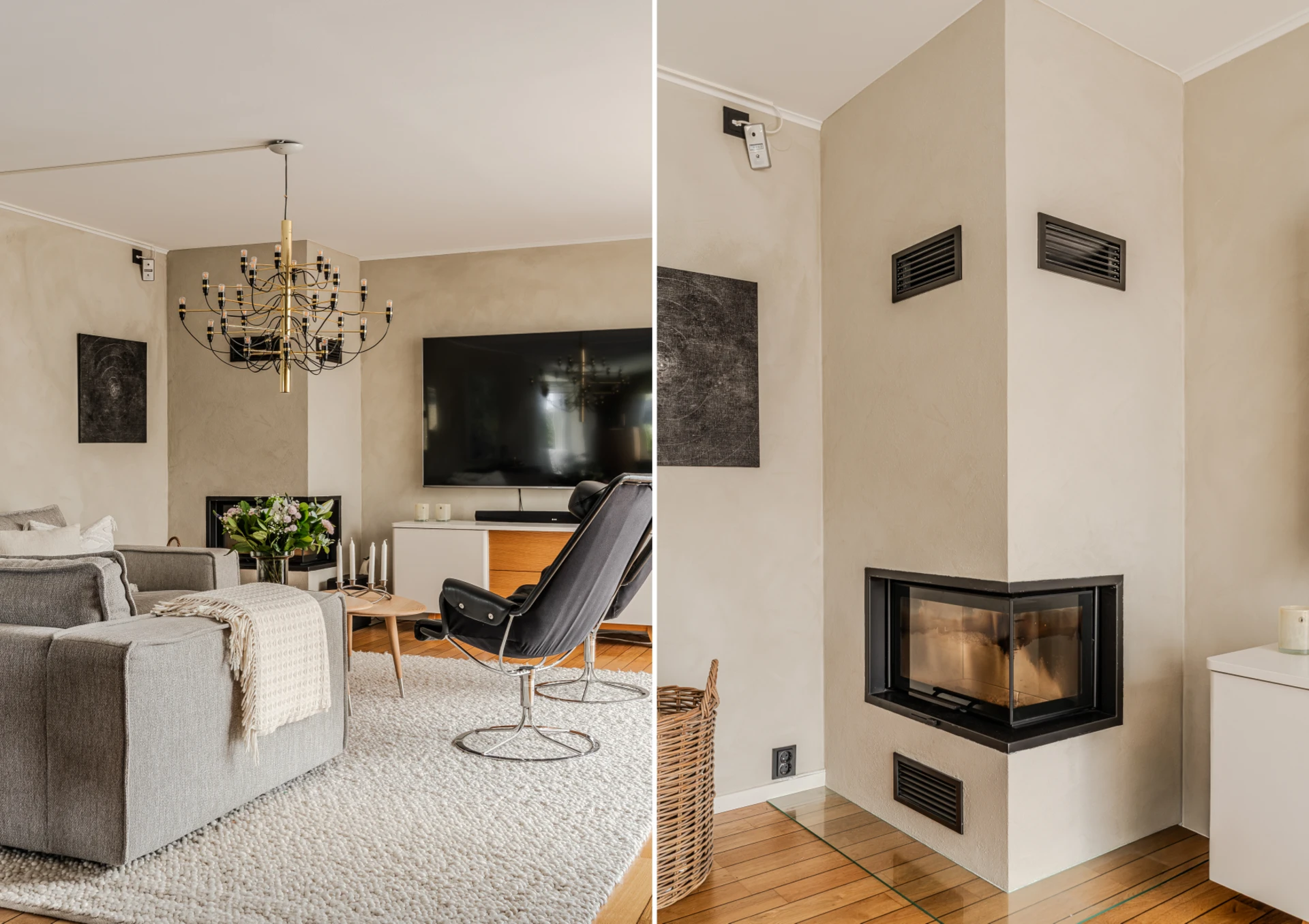 2017: Kamin installerades i vardagsrummet och nytt golv lades.