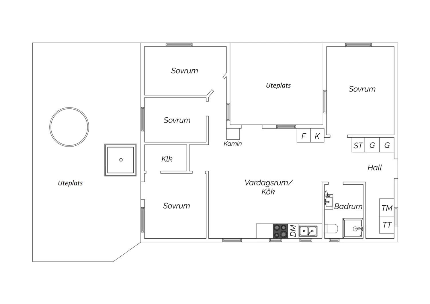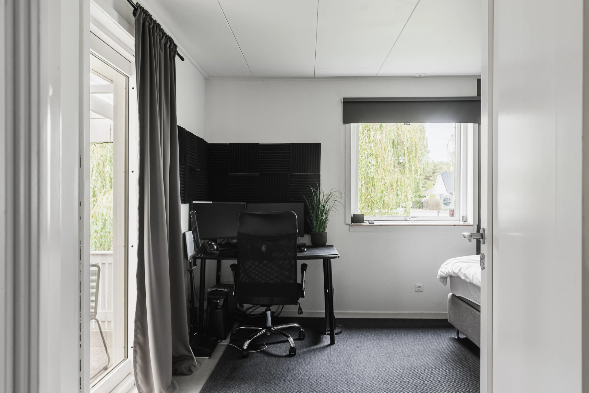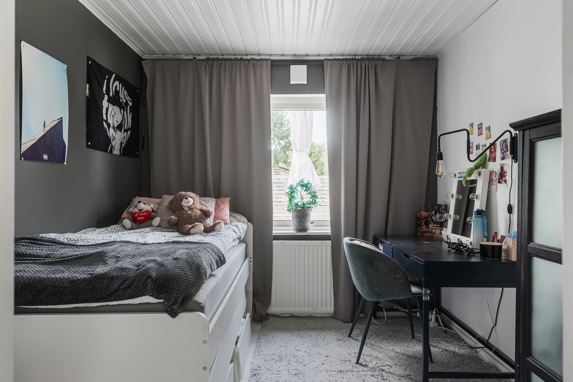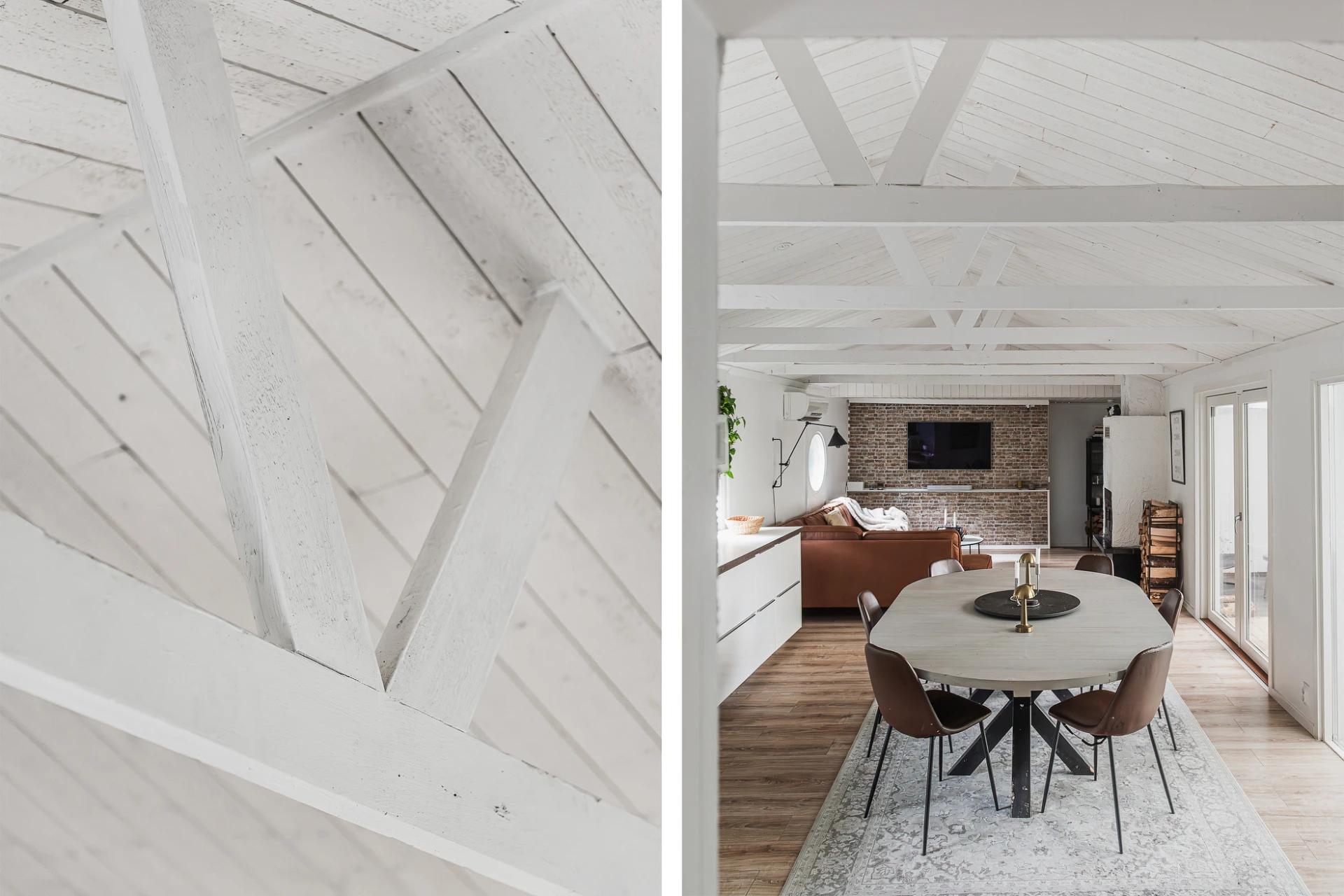 Huset erbjuder fyra väl tilltagna sovrum, gott om smarta förvaringslösningar och generösa fönsterpartier som låter ljuset flöda fritt genom rummen. I vardagsrummet möts du av en inbjudande eldstad som sprider värme och skapar extra trivsel under årets kallare dagar. De vackra synliga takbjälkarna tillsammans med den öppna planlösningen mellan kök och vardagsrum ger en härlig rymd och en varm atmosfär, en naturlig samlingsplats för både familj och vänner.