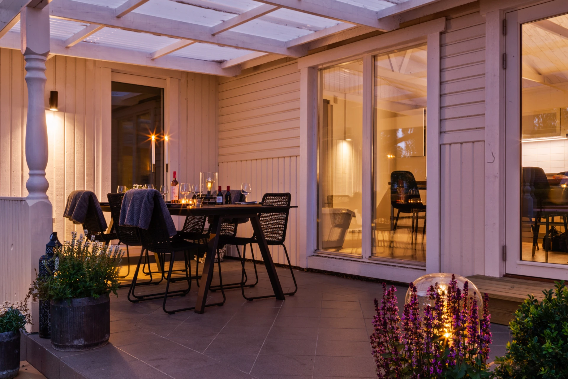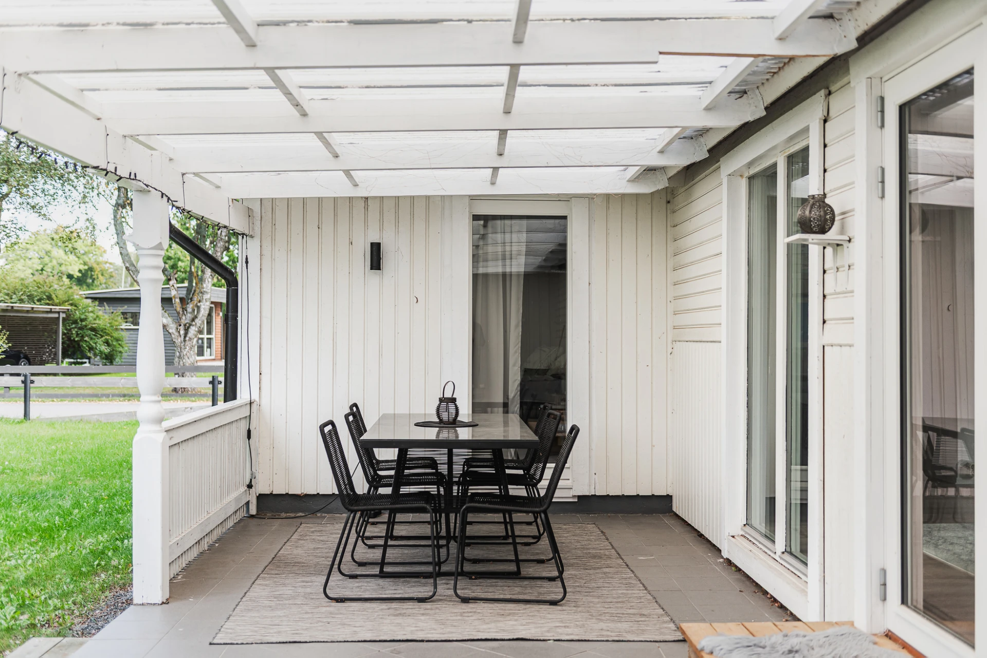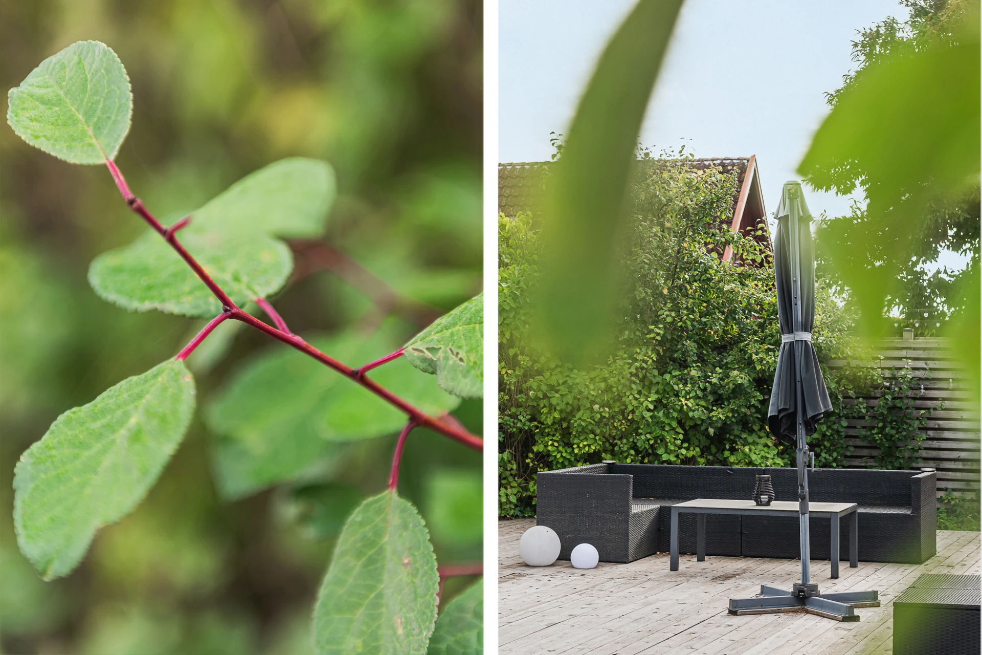 Trädgården är en liten oas som bjuder in till avkoppling och umgänge. Här finns ett stort trädäck, altan, spabad och en mindre pool som gör sommardagarna till något alldeles extra. Perfekt för både lugna stunder med familjen som för festliga tillställningar.