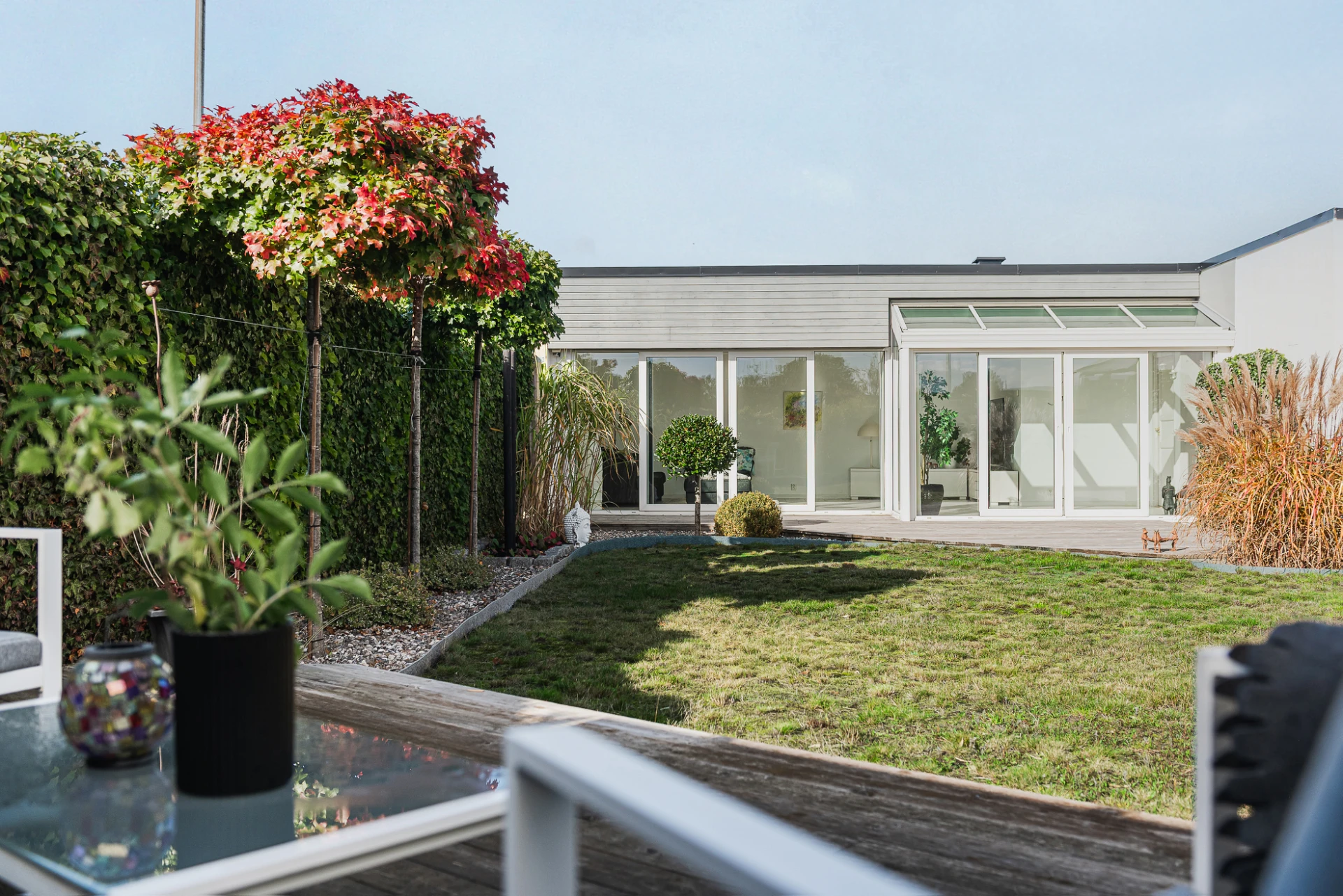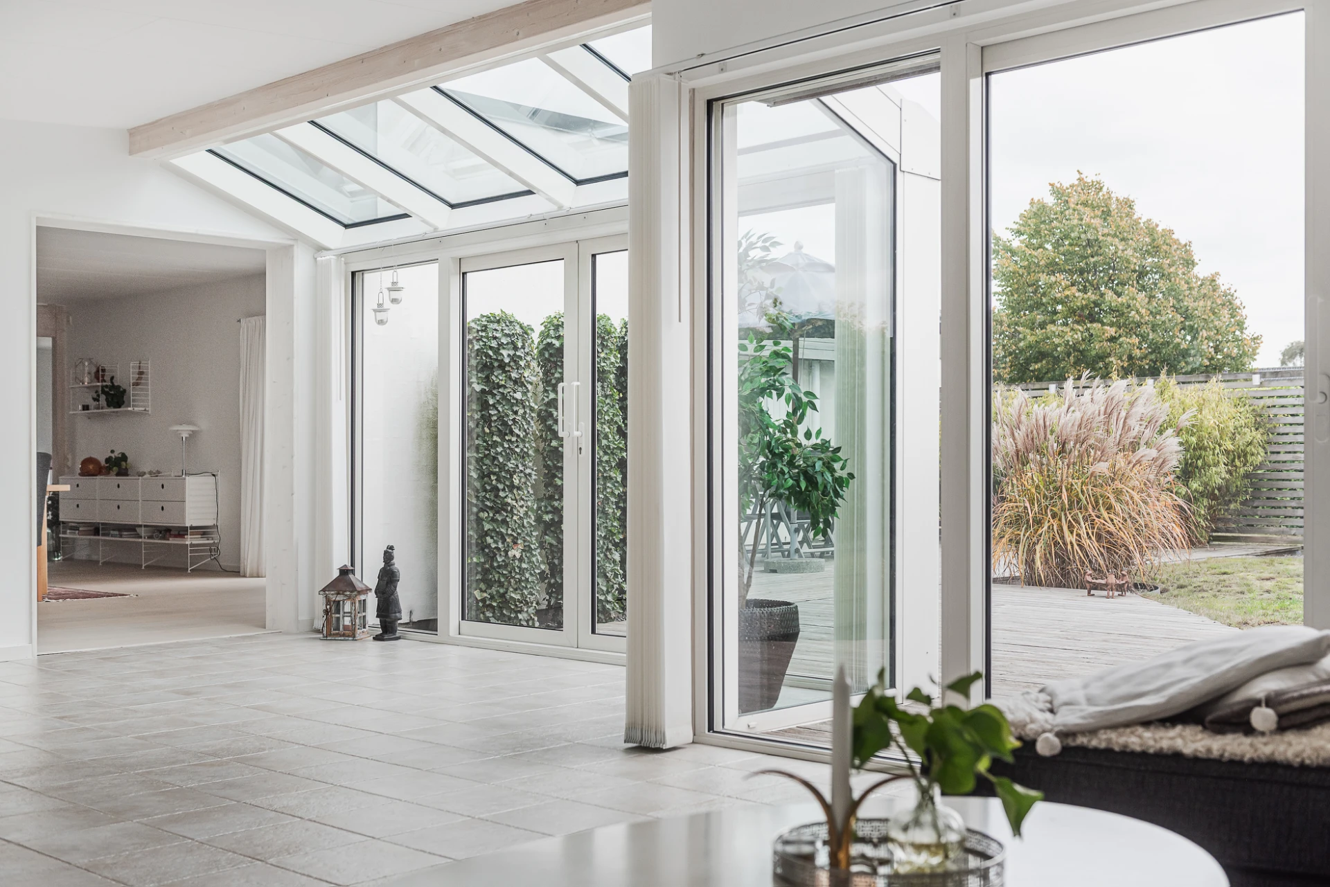 2009: Nytt kök från Nord Design installerades. Tillbyggnad uppfördes med fönster och skjutdörrar från Schüco.