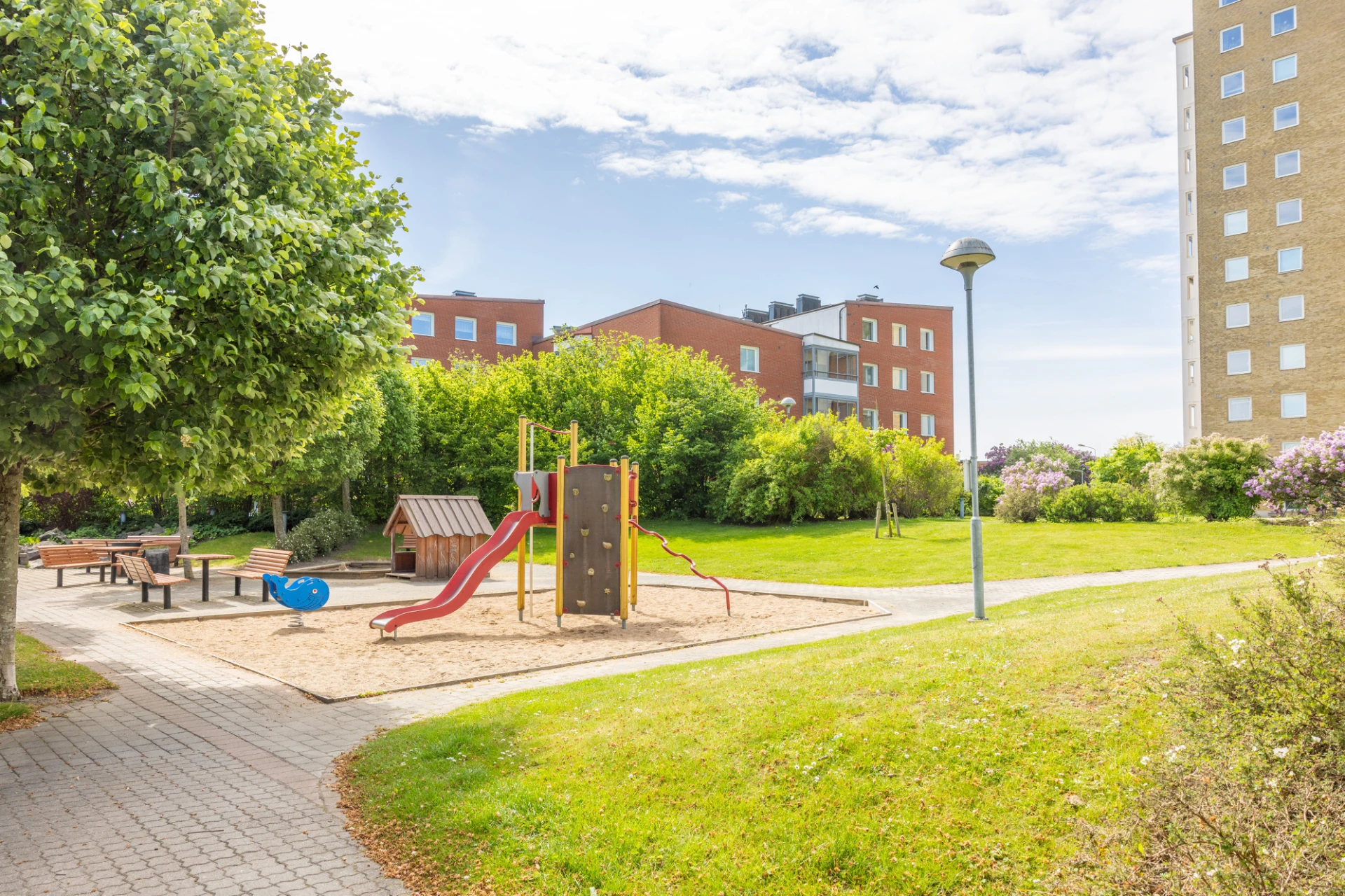 2019 renoverades innergården med bland annat nytt miljöhus, nya gräsytor och upprensning i rabatter.