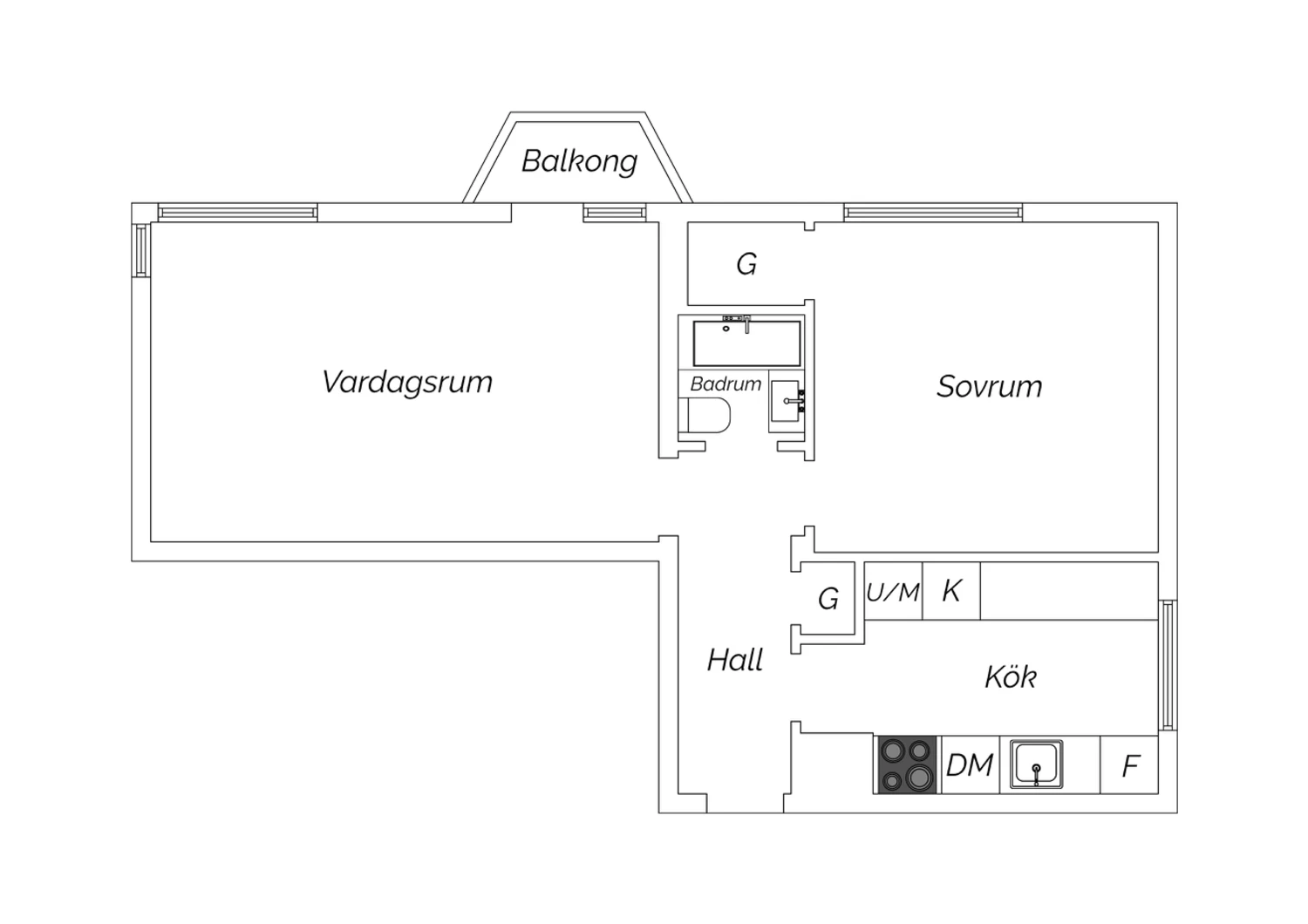 Storlek: 2 rum och kök, 56 kvm boarea