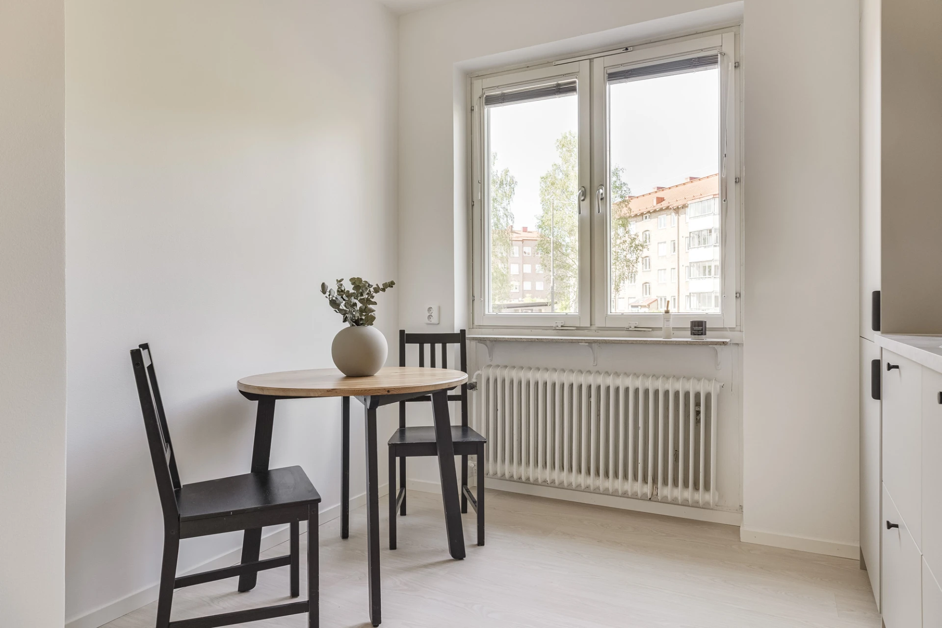 Välkommen till denna ljusa och väldisponerade trea - ett nyrenoverat hem med genomtänkta materialval och stilren känsla. Här möts du av en modern bostad där ytskikt, golv, kök och badrum är nya. Köket är rymligt och trivsamt med gott om plats för matbord, perfekt för både vardagsliv och sociala middagar. Alla vitvaror är nya från IKEA och omfattas av fem års garanti.