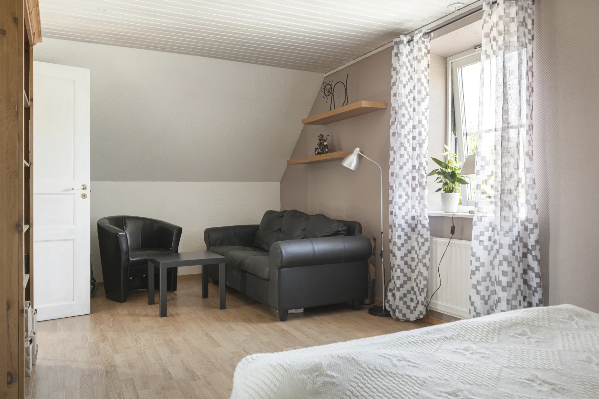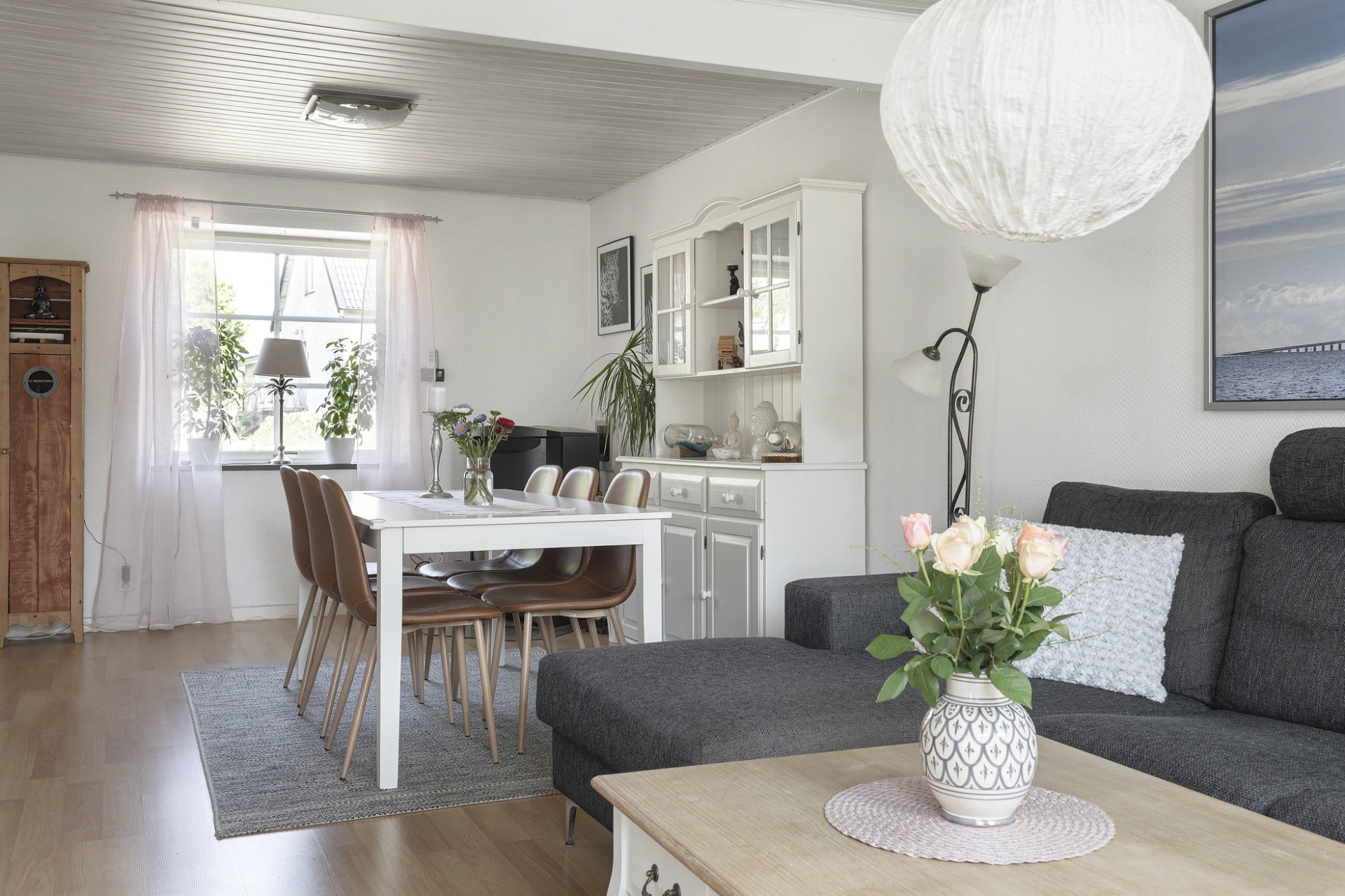 Vackert och tidstypsikt välbyggt stenhus från 1935 beläget på hörntomt med fri sikt mot omgivande fält och öppet landskap. Bostaden är stor med många sovrum, fem om du så vill. Under de senaste åren har man renoverat både kök och badrum, båda i tidlösa och smakfulla kulörer. Trevliga sällskapsytor med väl tilltaget allrum med genomgående ljusinsläpp, här skulle en kamin göra sig till rätta. På entréplan finns också två gavelrum vilka är perfekta som kontor eller sovrum. En trappa upp bjuder bostaden på tre sovrum i bra storlek, ett stort allrum och badrum med dusch. På källarplan finns gott om utrymme för förvaring och hobby.