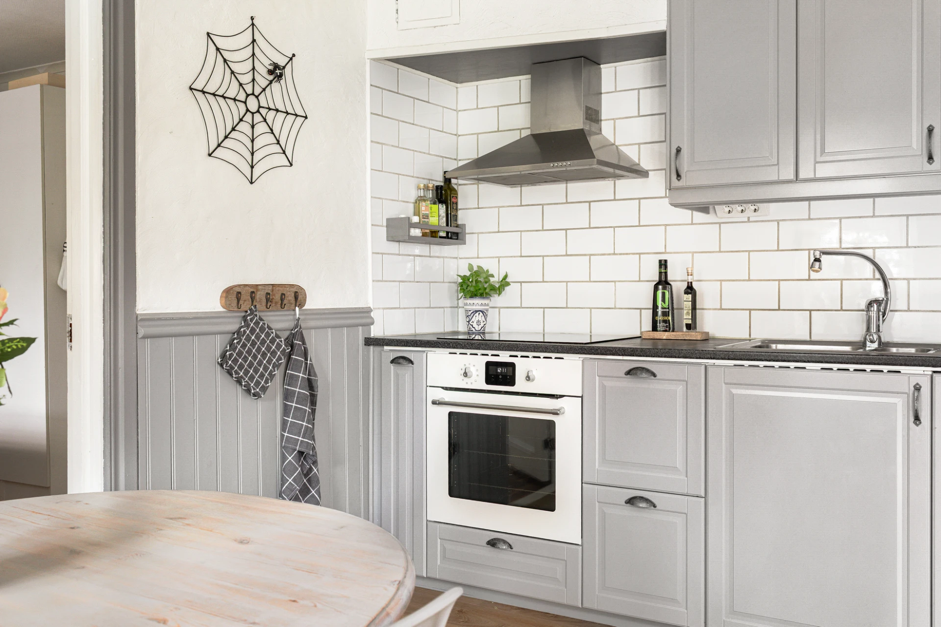 Smakfullt renoverat 2017. Maskinell utrustning består av induktionshäll, ugn, spisfläkt, diskmaskin, kombinerad kyl & frys. Matplats intill fönster.