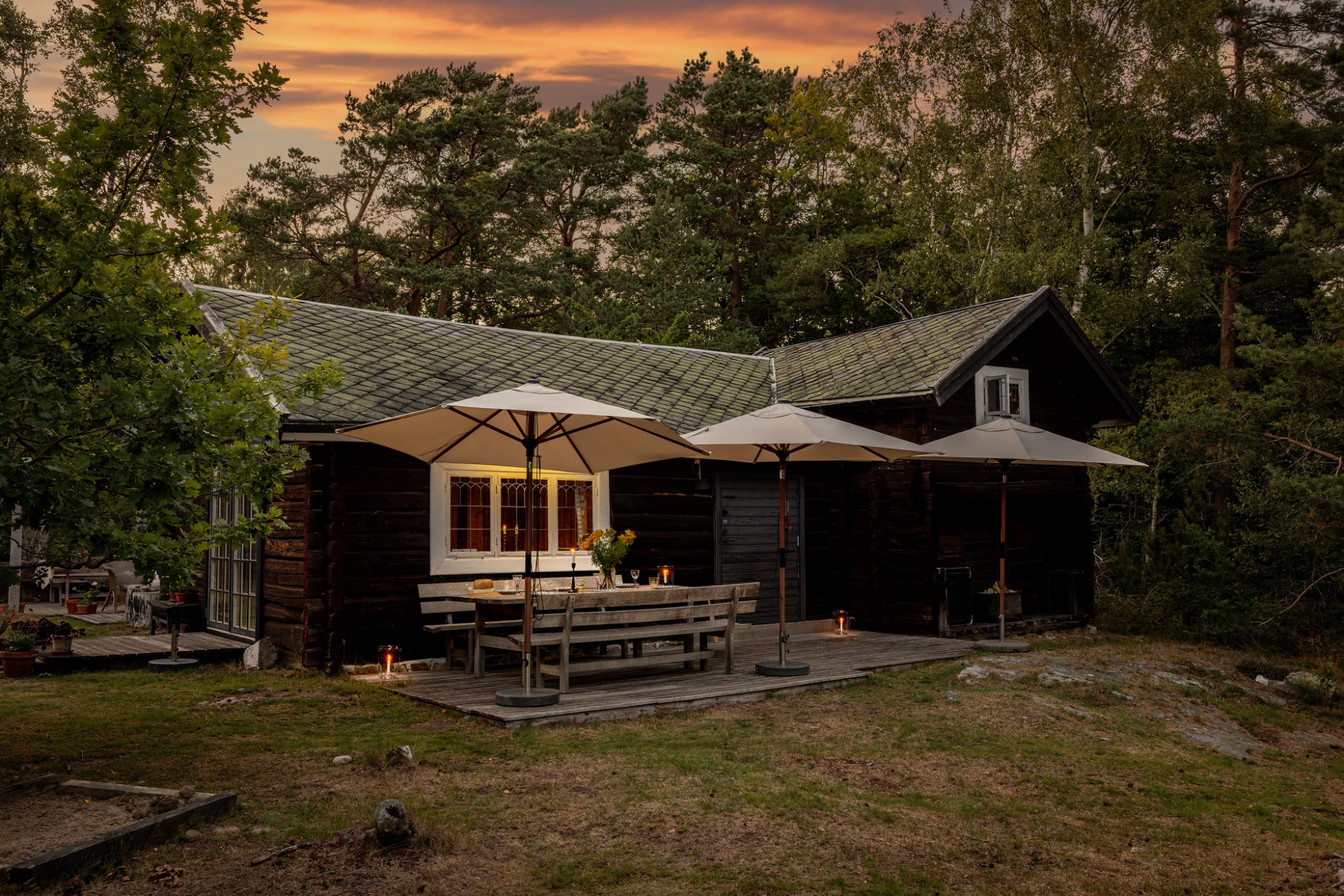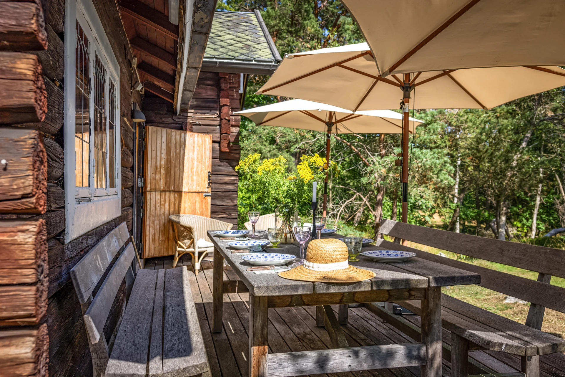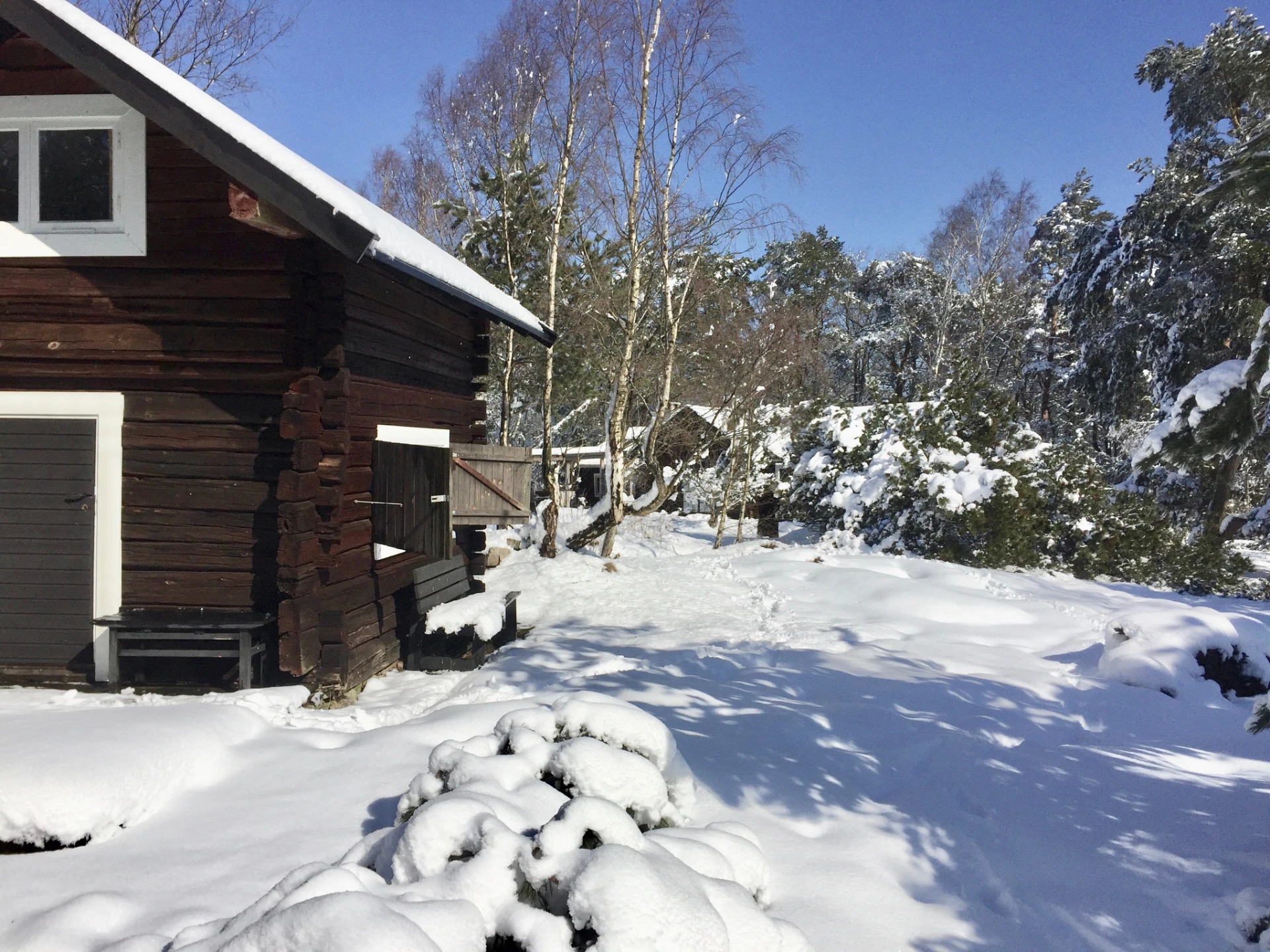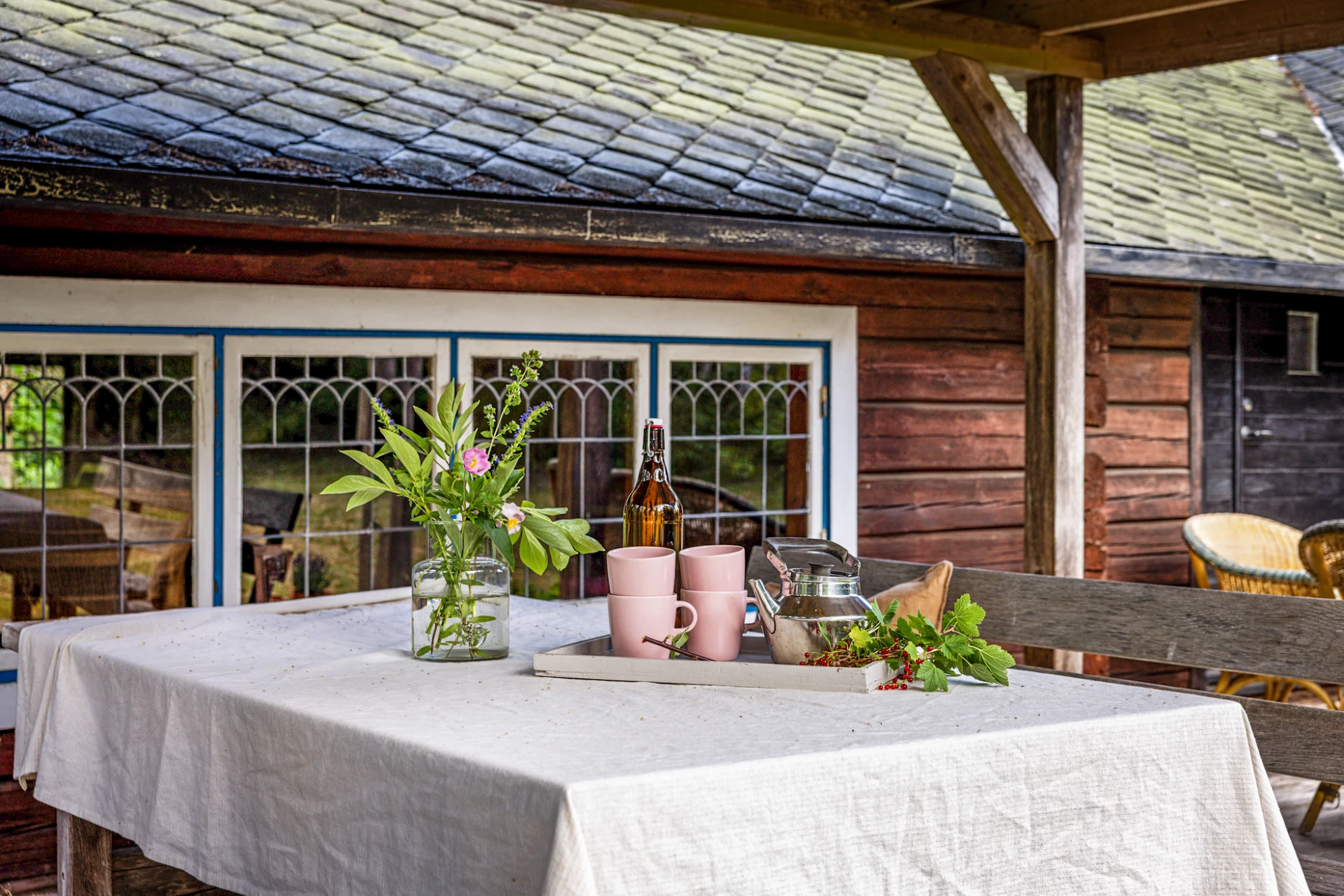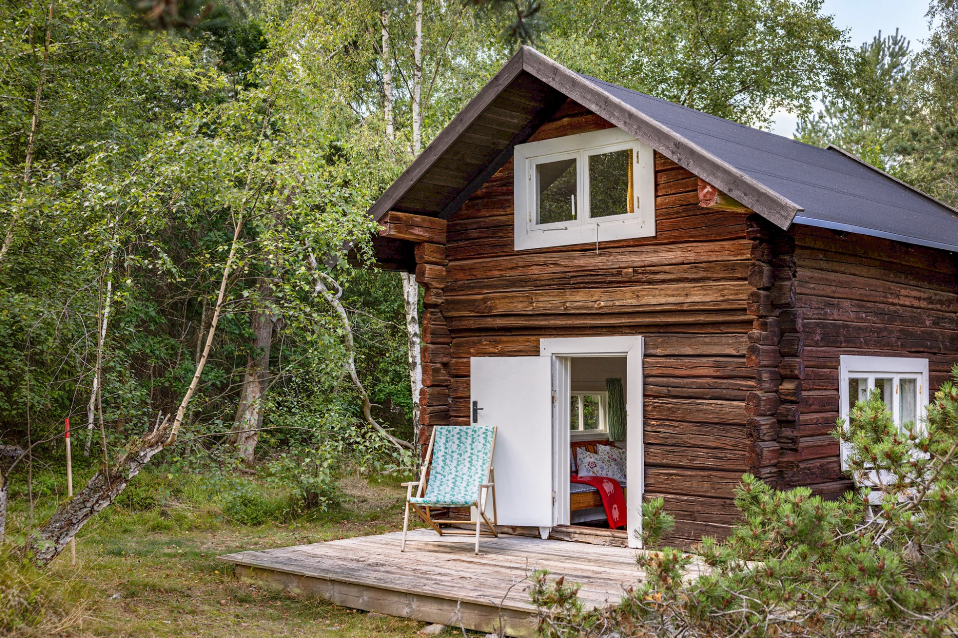 Friliggande härbre i 1,5-plan. En perfekt gäststuga. Solig veranda. Vacker grön kamin. Mysigt sovloft.