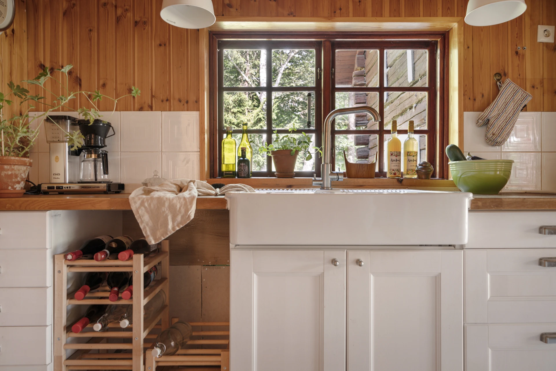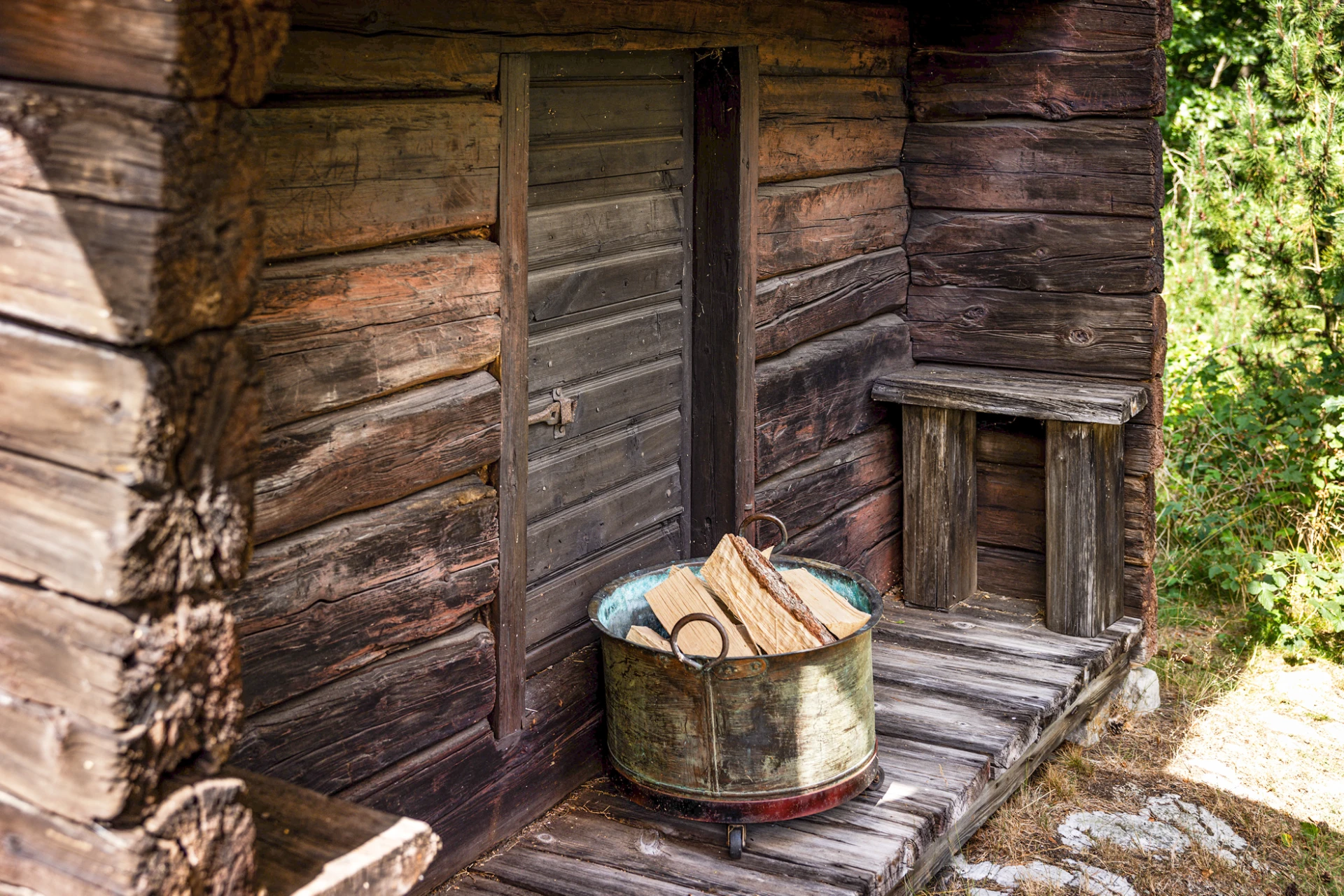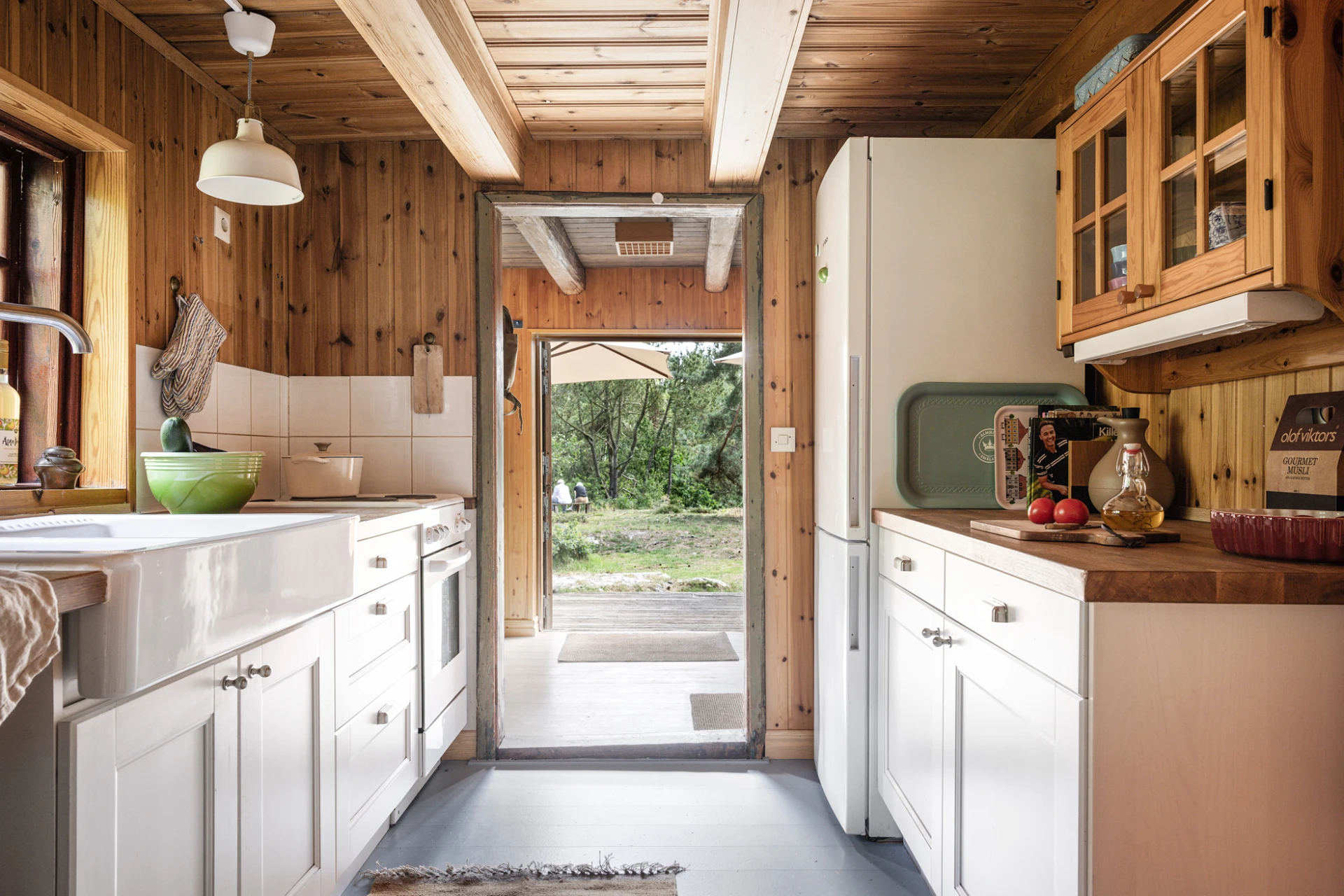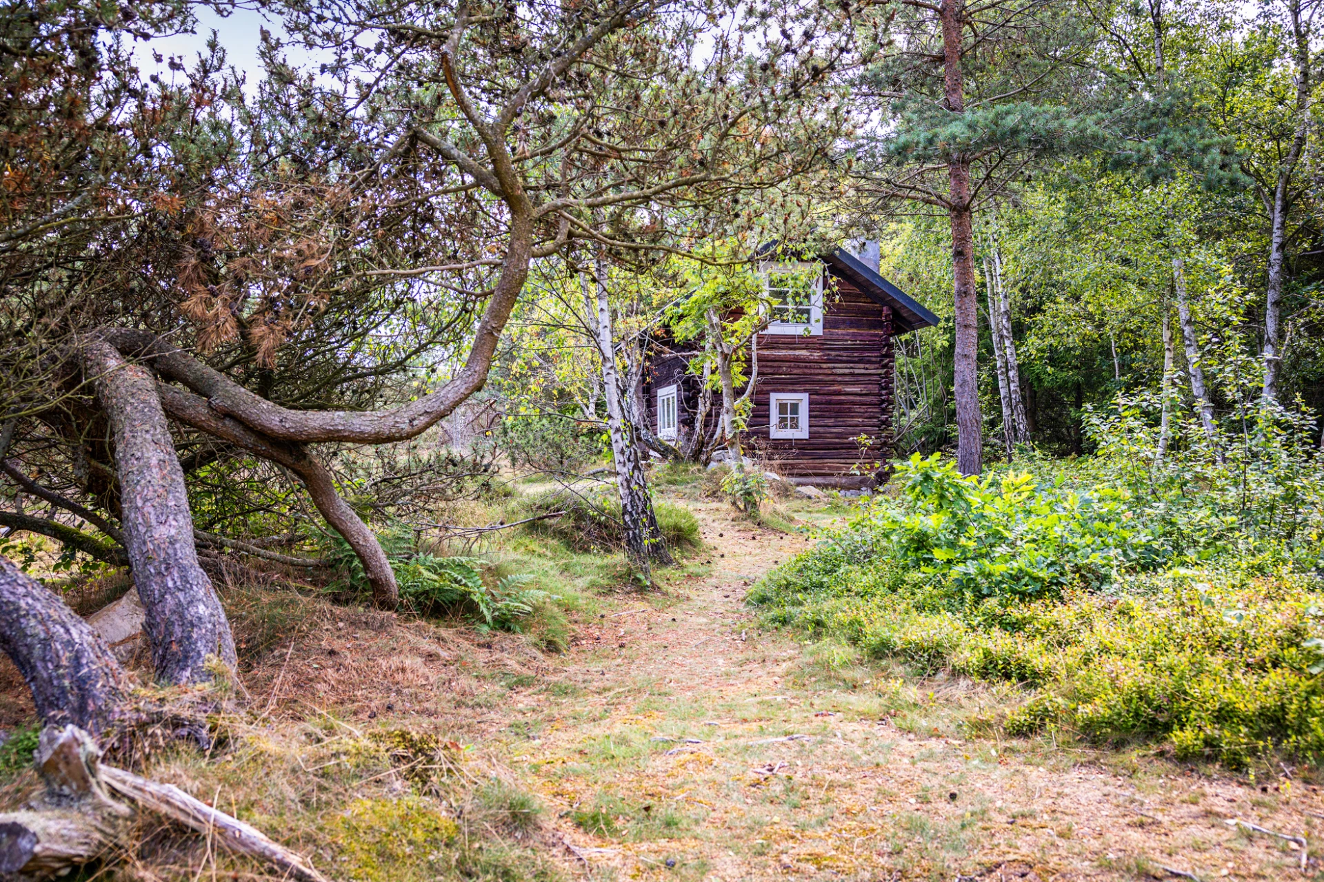 Friliggande härbre i 1,5-plan. En perfekt gäststuga. Solig veranda. Vacker grön kamin. Mysigt sovloft.