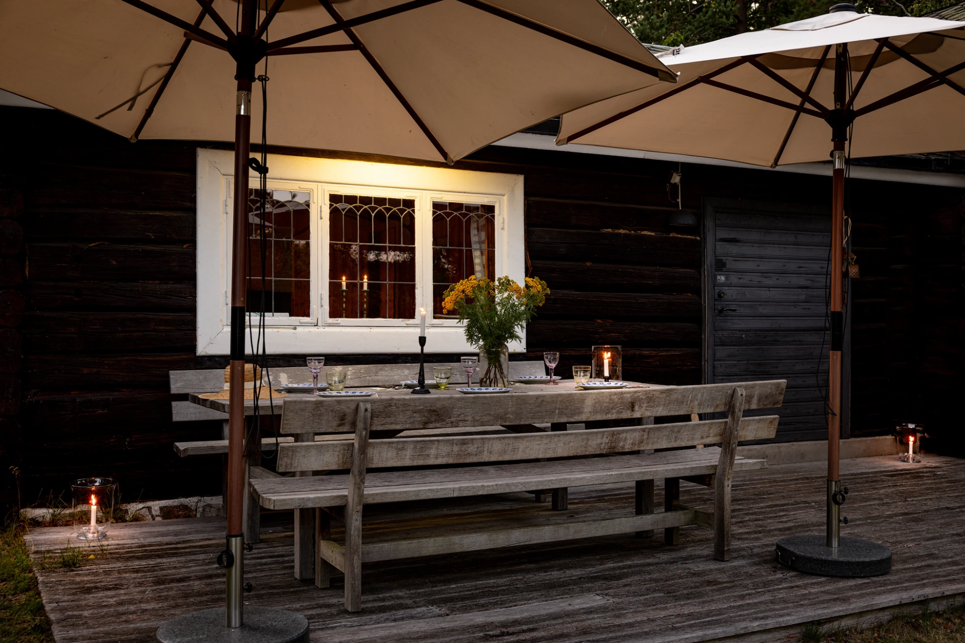 Specialtillverkade utemöbler för båda däcken av snickare på orten i massiv ek.