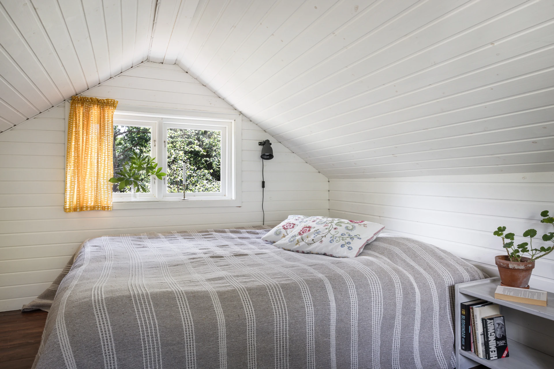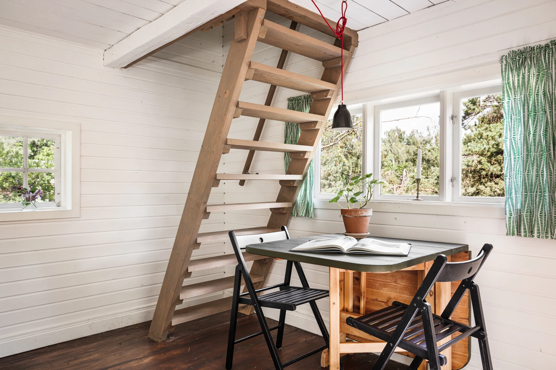 En liten trappa upp. Härligt gavelrum med fantastisk utsikt över naturreservatet.