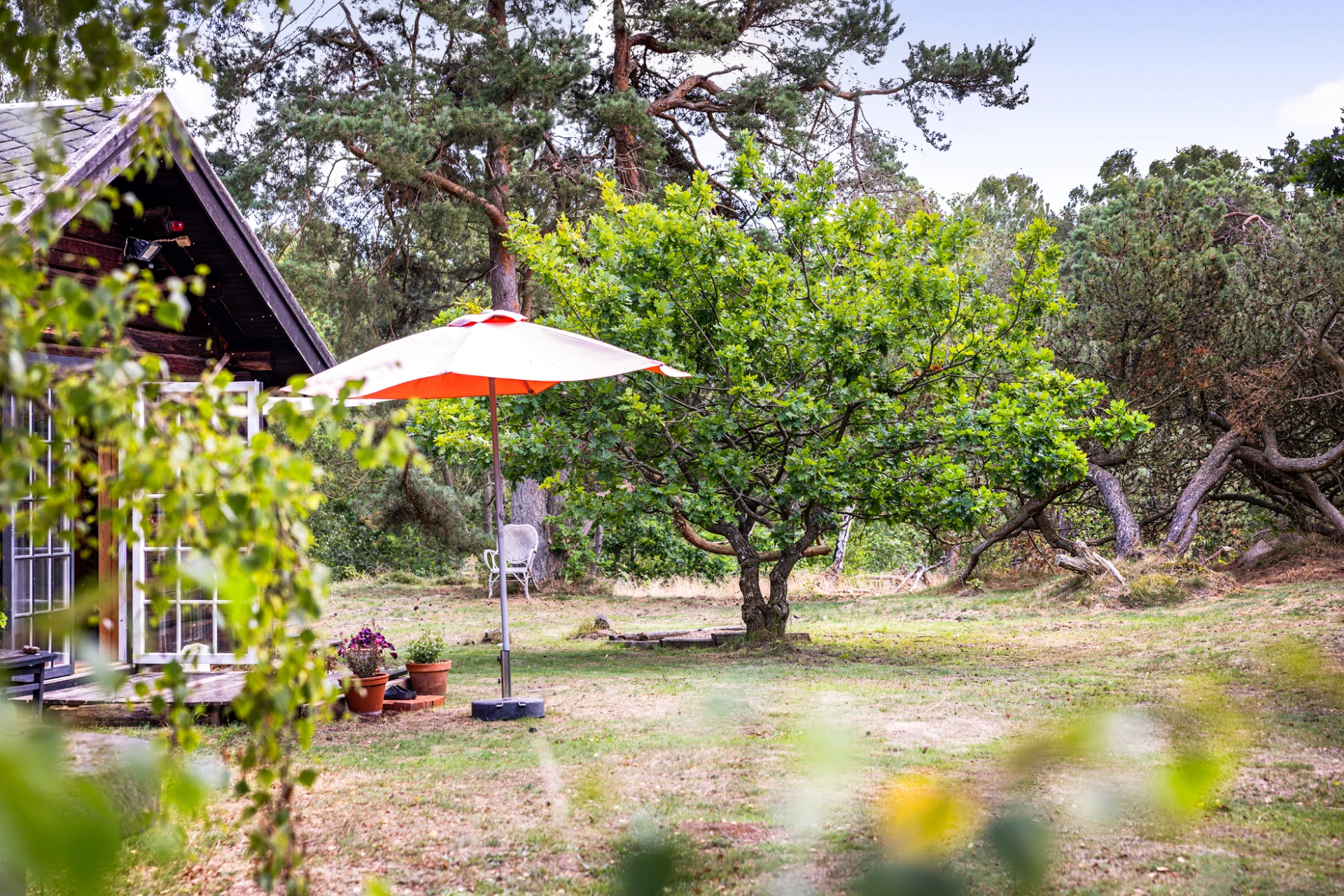 Två separata byggnader, sammansatta med loftgång som välkomnar vid tomtens början. Här inryms idag platsbyggda sängar och en torrtoalett. Byggnaderna är i behov av renovering. En framtida gästbostad? Generationsboende? Möjligheterna är många!
