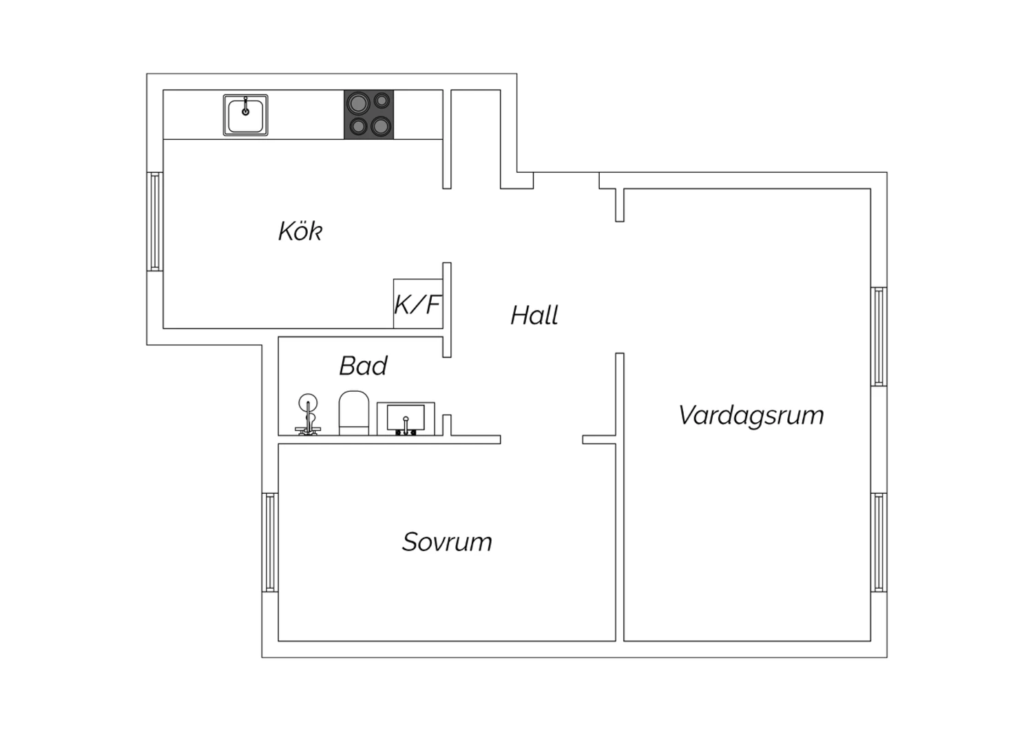 Charmig tvåa med tidstypisk detaljer i attraktiva Kv Östergård!