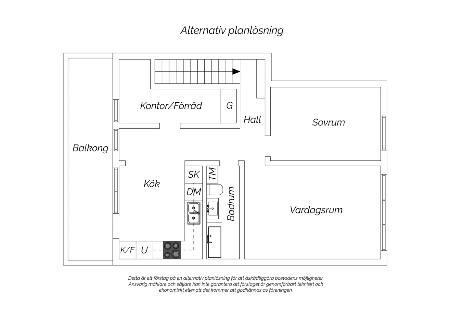Skiljeväggarna i vardagsrum och sovrum är enkelt platsbyggda och kan enkelt tas ner utan att göra skada på golv och väggar. Nuvarande ägare erbjuder sig gärna att återställa detta innan inflytt om nuvarande planlösning ej önskas. Varmt välkomna på visning!