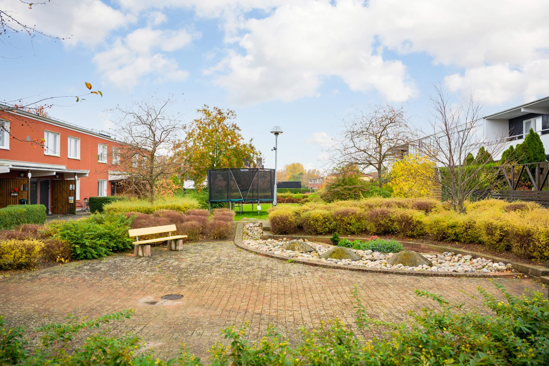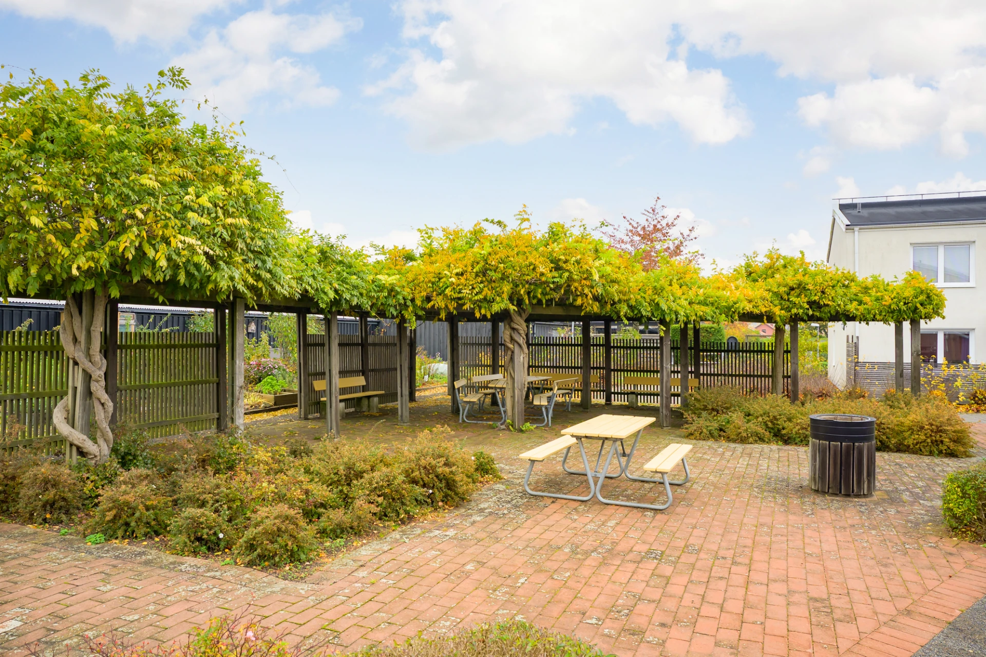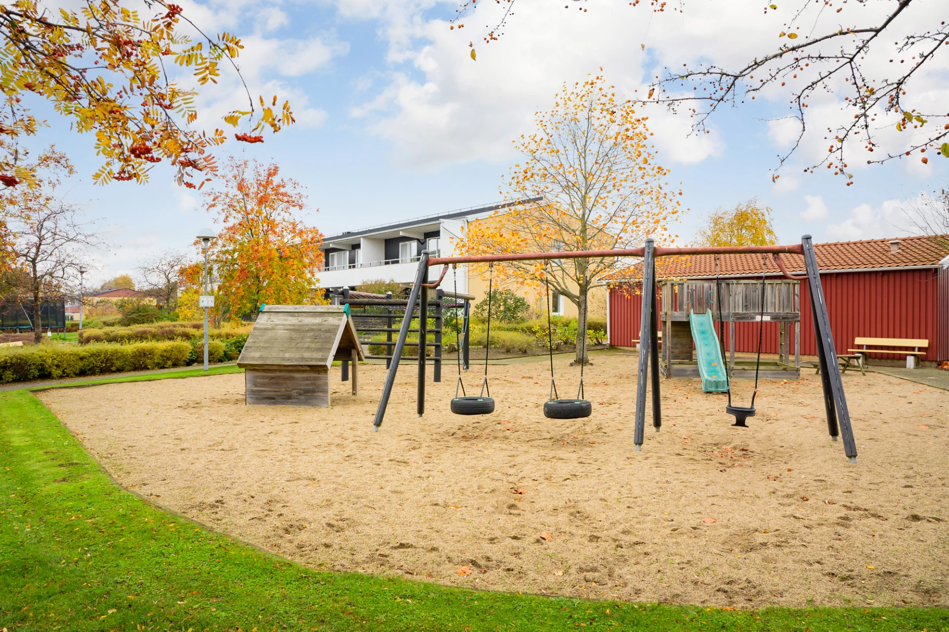 Föreningen har en mysig innergård med pergola, lekplats och boulebana.