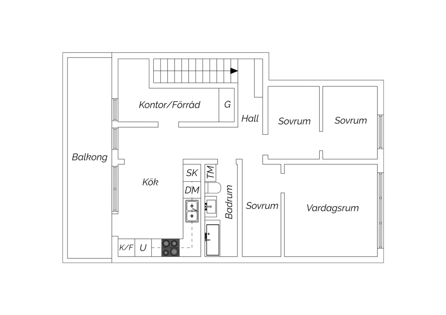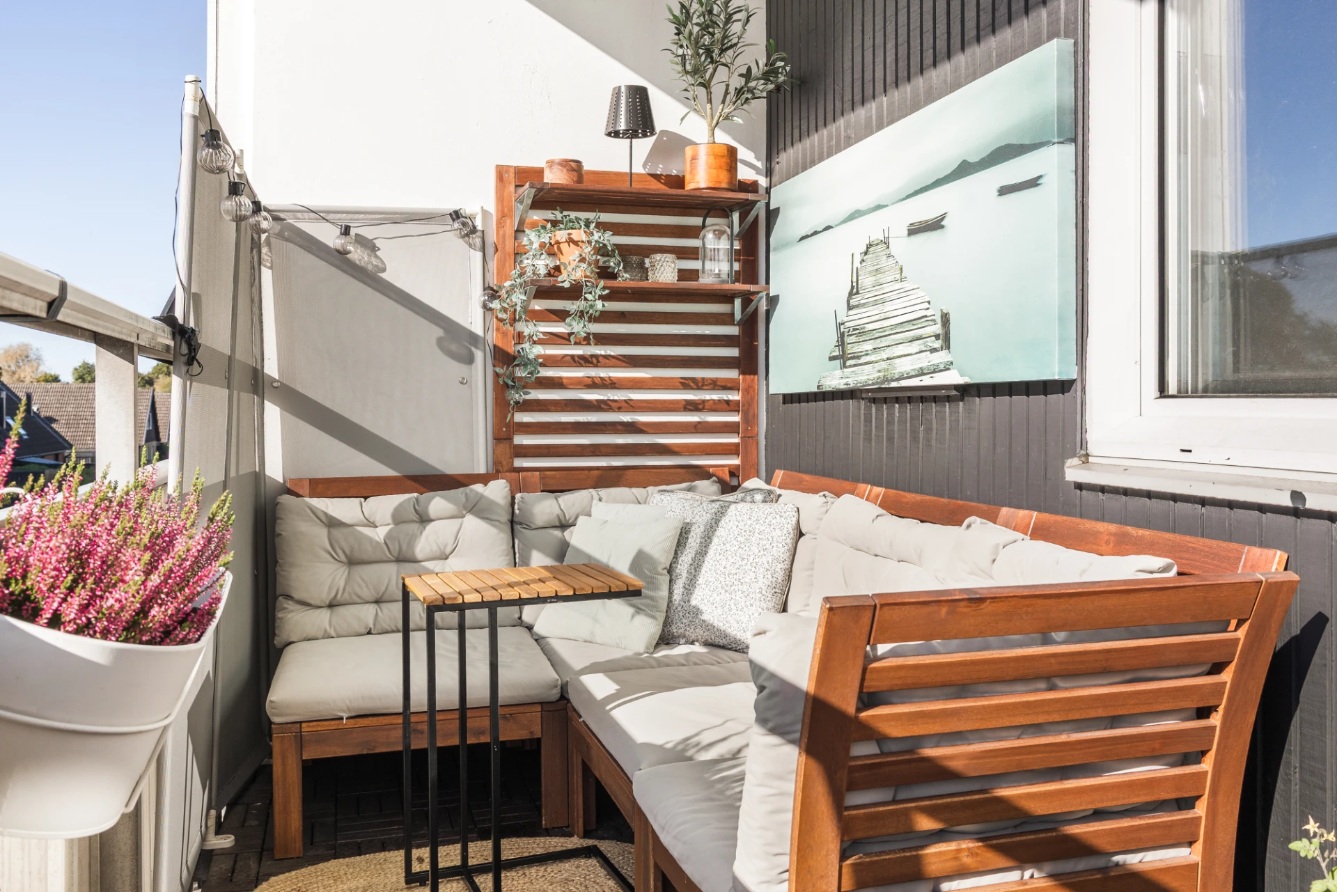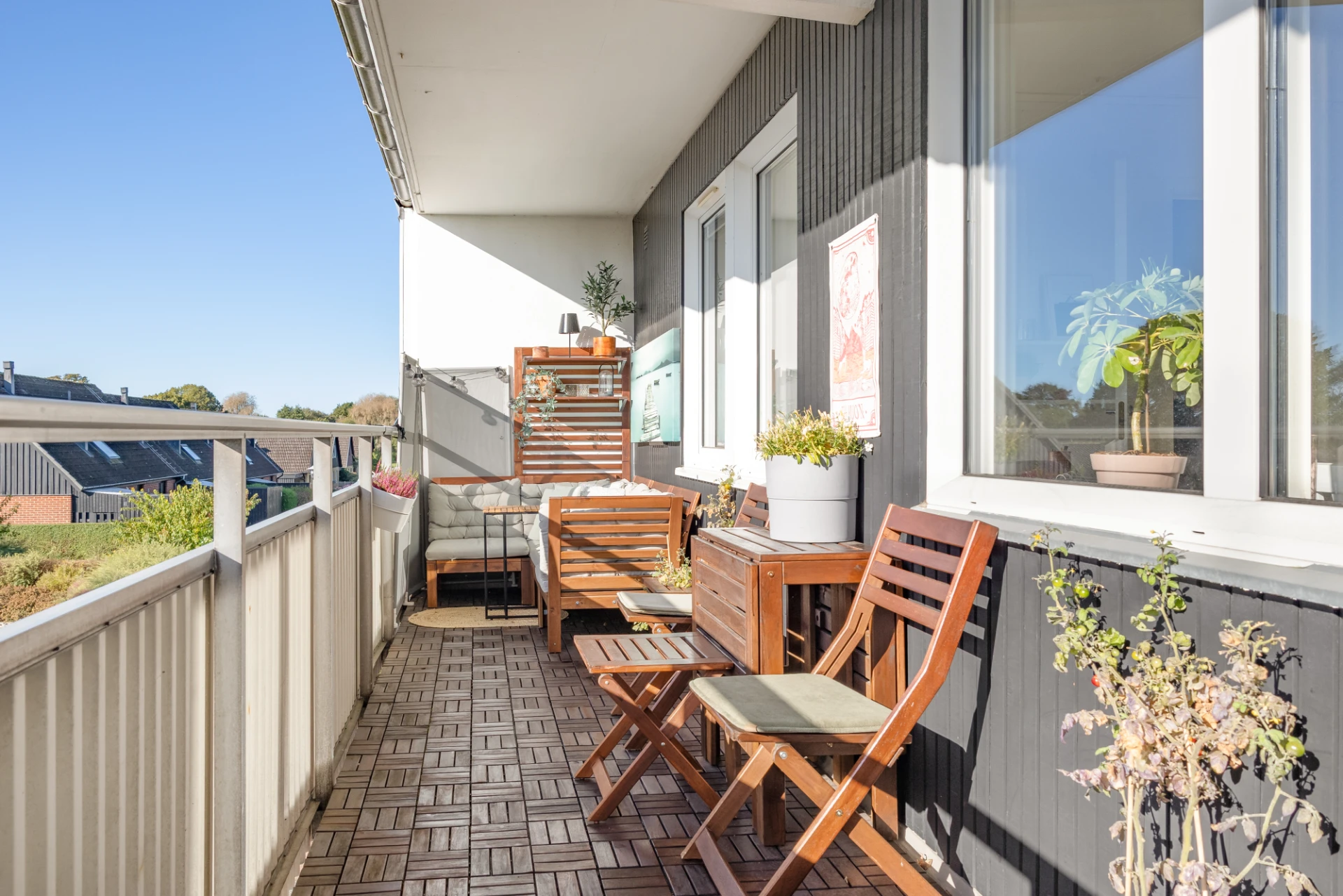 Från köket nås den gårdsvända balkongen i söderläge.